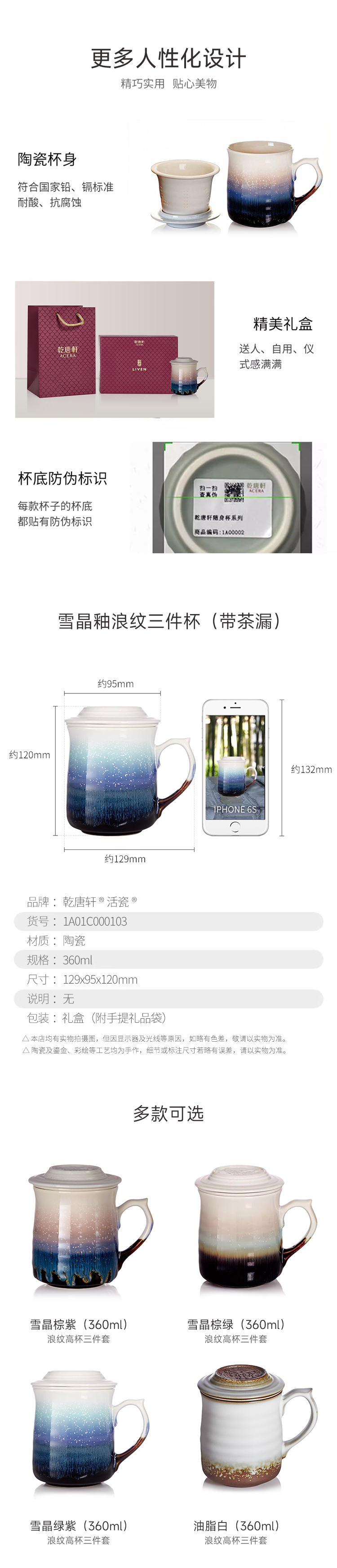 浪纹陶瓷三件杯(含茶漏) 360ml