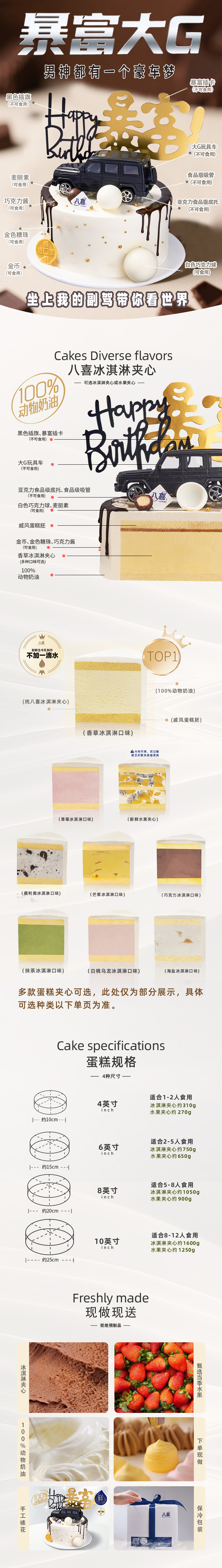 【暴富大G】男士冰淇淋/水果生日蛋糕