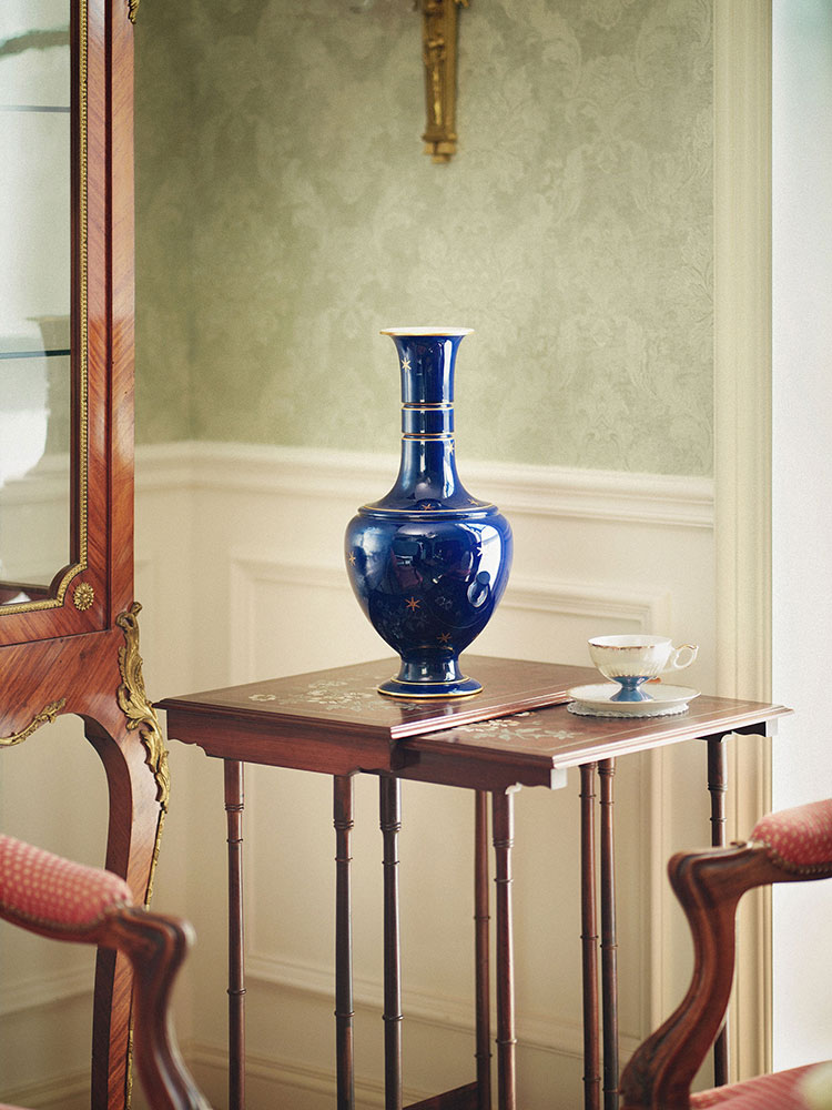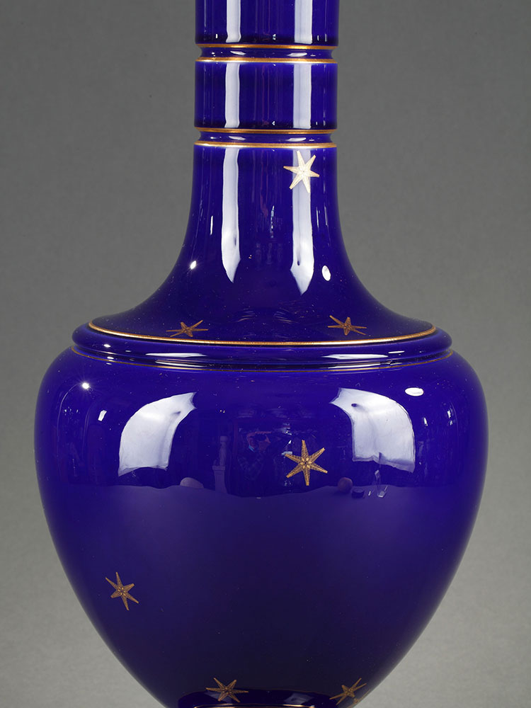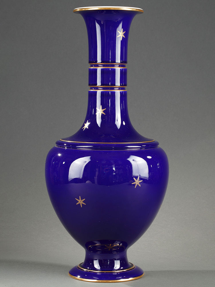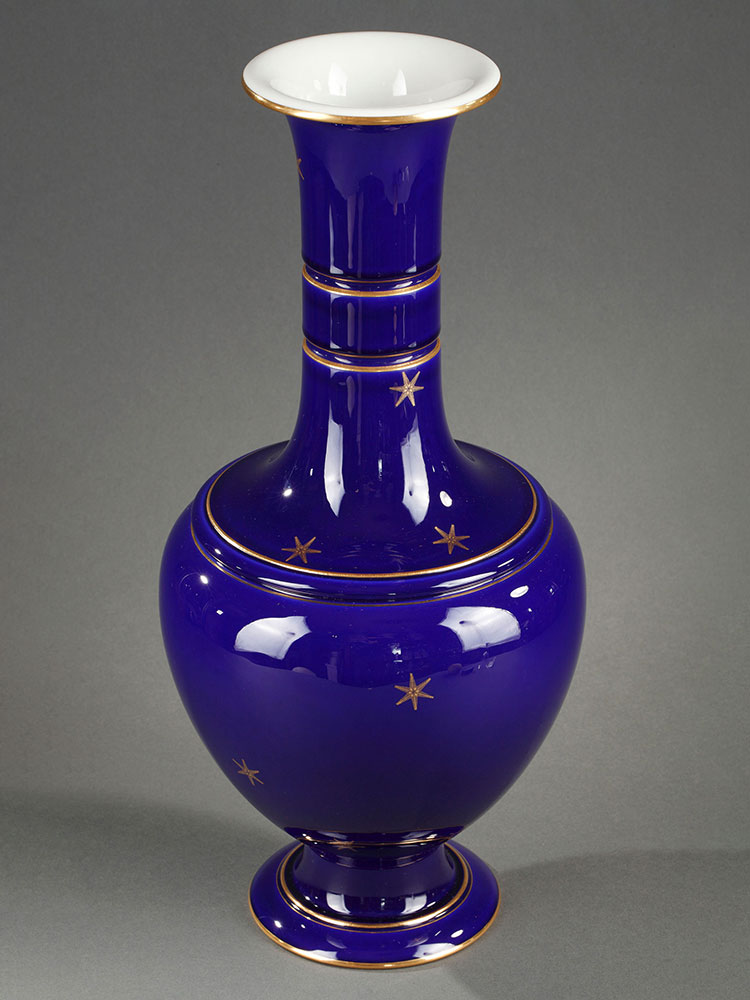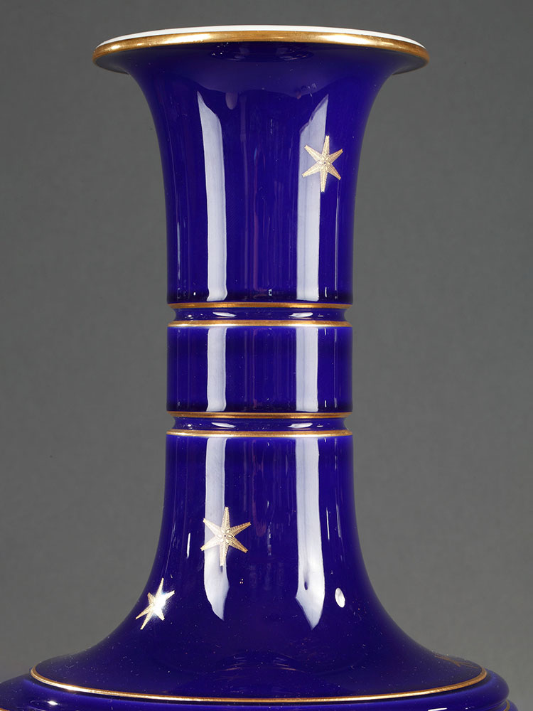 1895年法国官窑塞弗尔出品钴蓝釉描金花瓶
