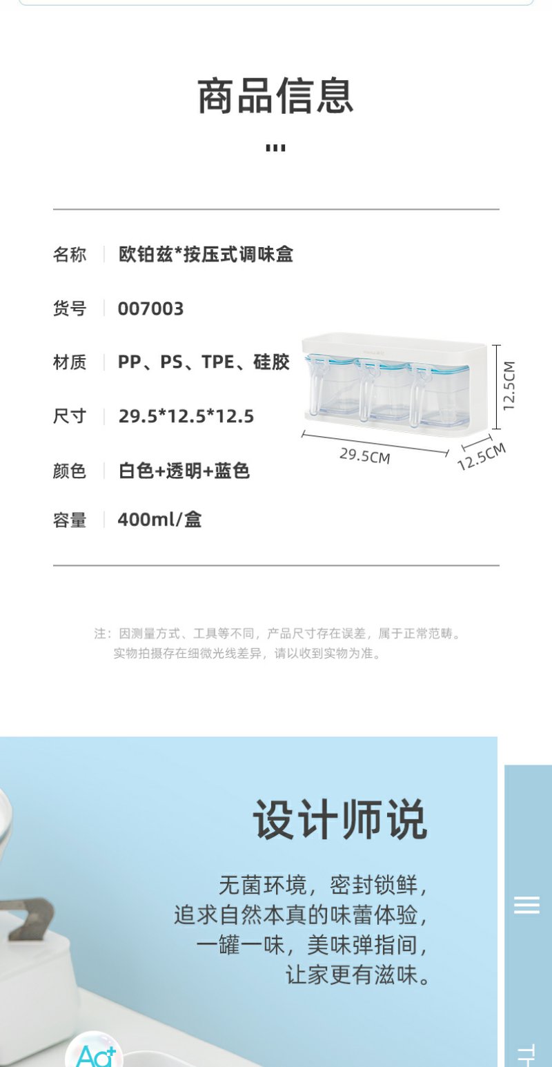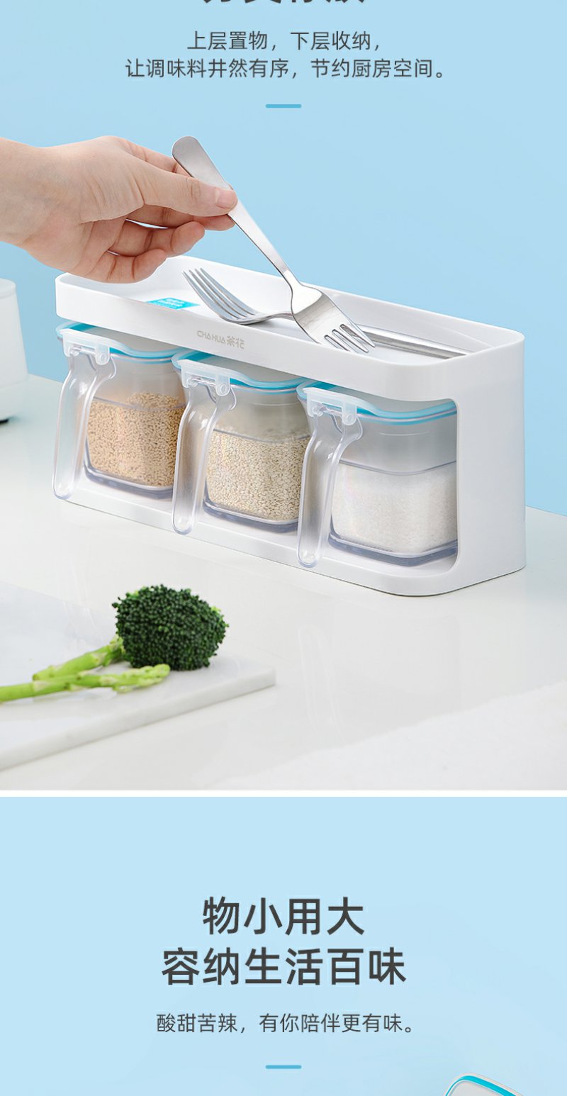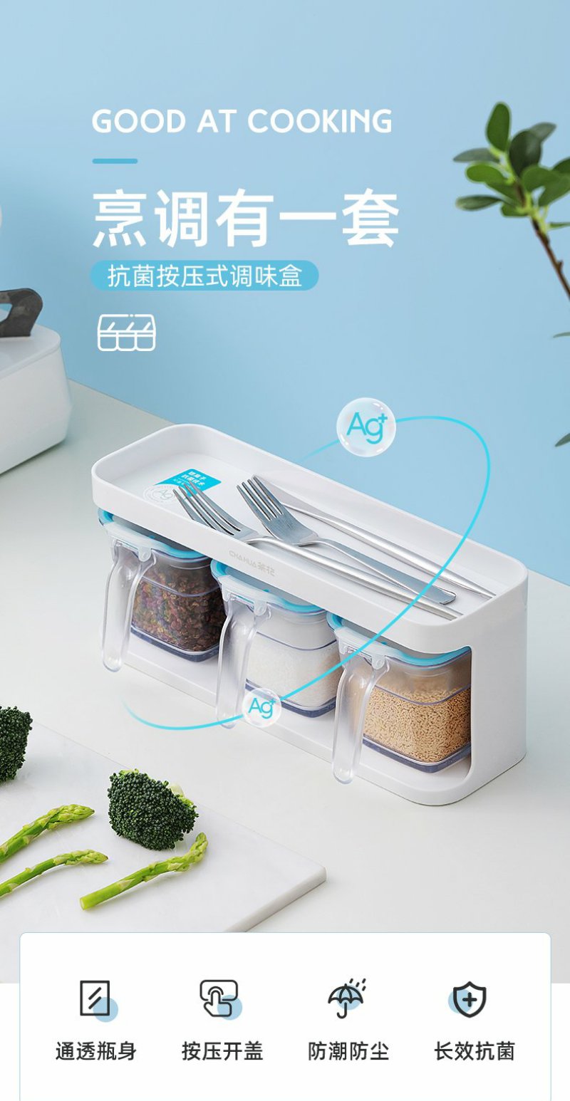 【茶花】欧铂兹抗菌调味盒(1组3个)