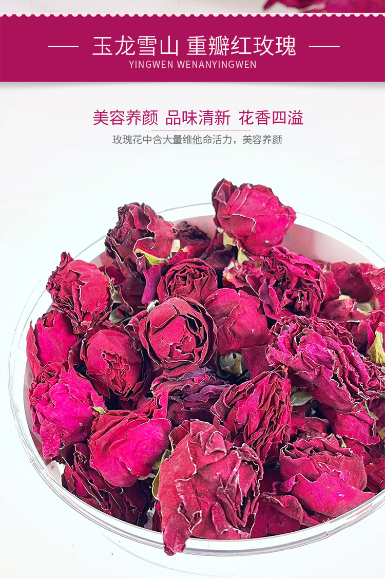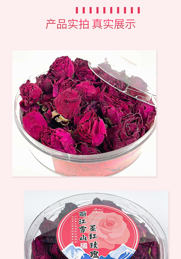 云南丽江墨红玫瑰 浓郁花香芬芳扑鼻 朵形较完整 花色墨红 略卷瓣 遇水绽放 满满花青素