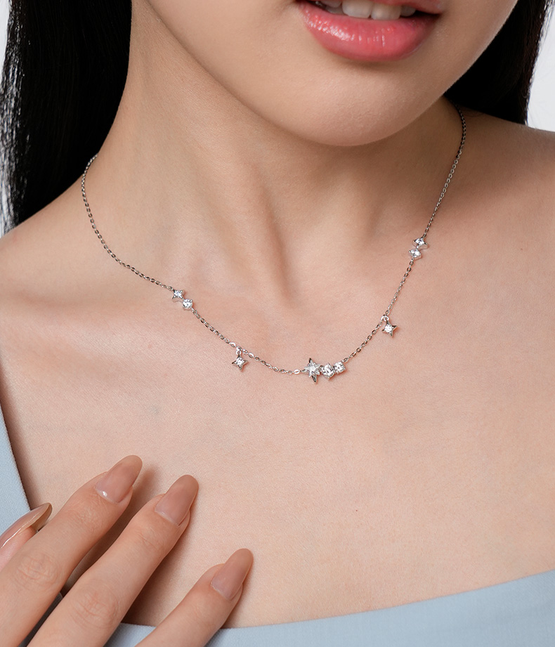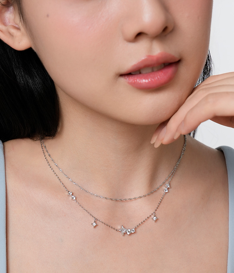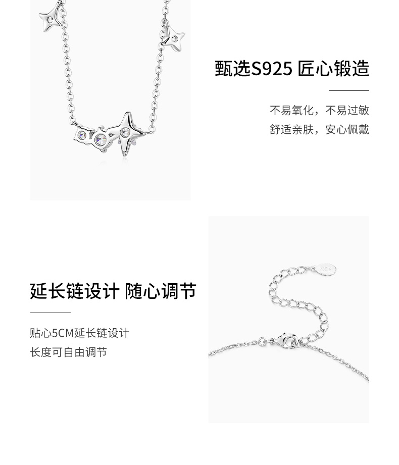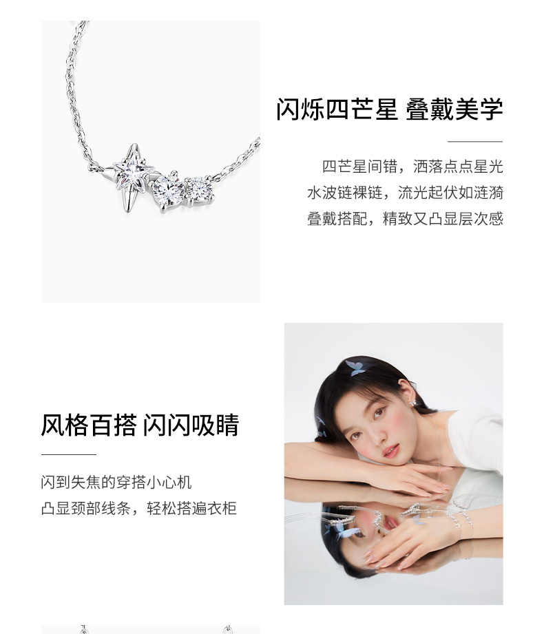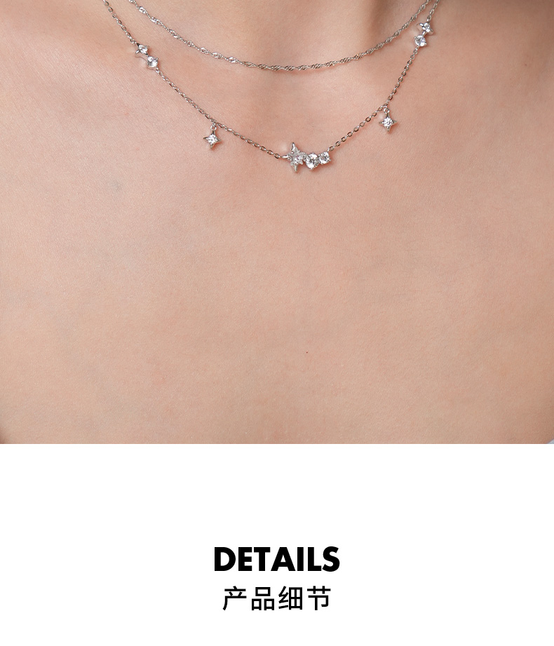 卡蒂罗/KADER 双链/单链可选 星芒物语项链 闪耀四芒星璀璨吸睛满钻设计锁骨链 闪耀银河梦幻星点配饰 925银
