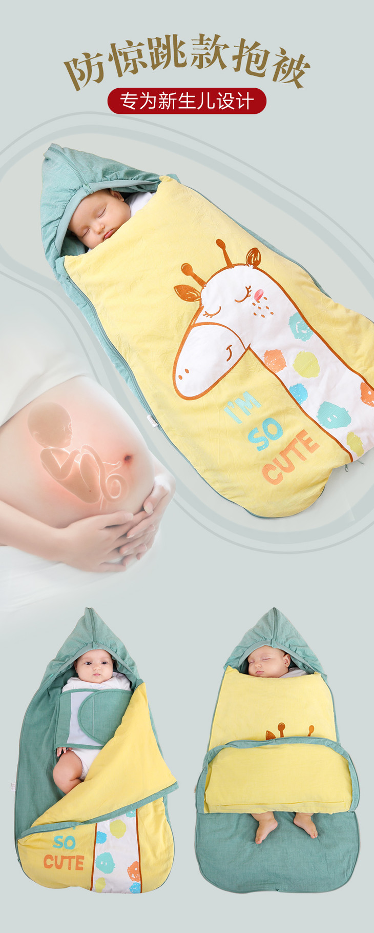 龙之涵防惊跳睡袋婴儿抱被春秋薄款全棉新生儿用品初生宝宝秋冬加厚包被