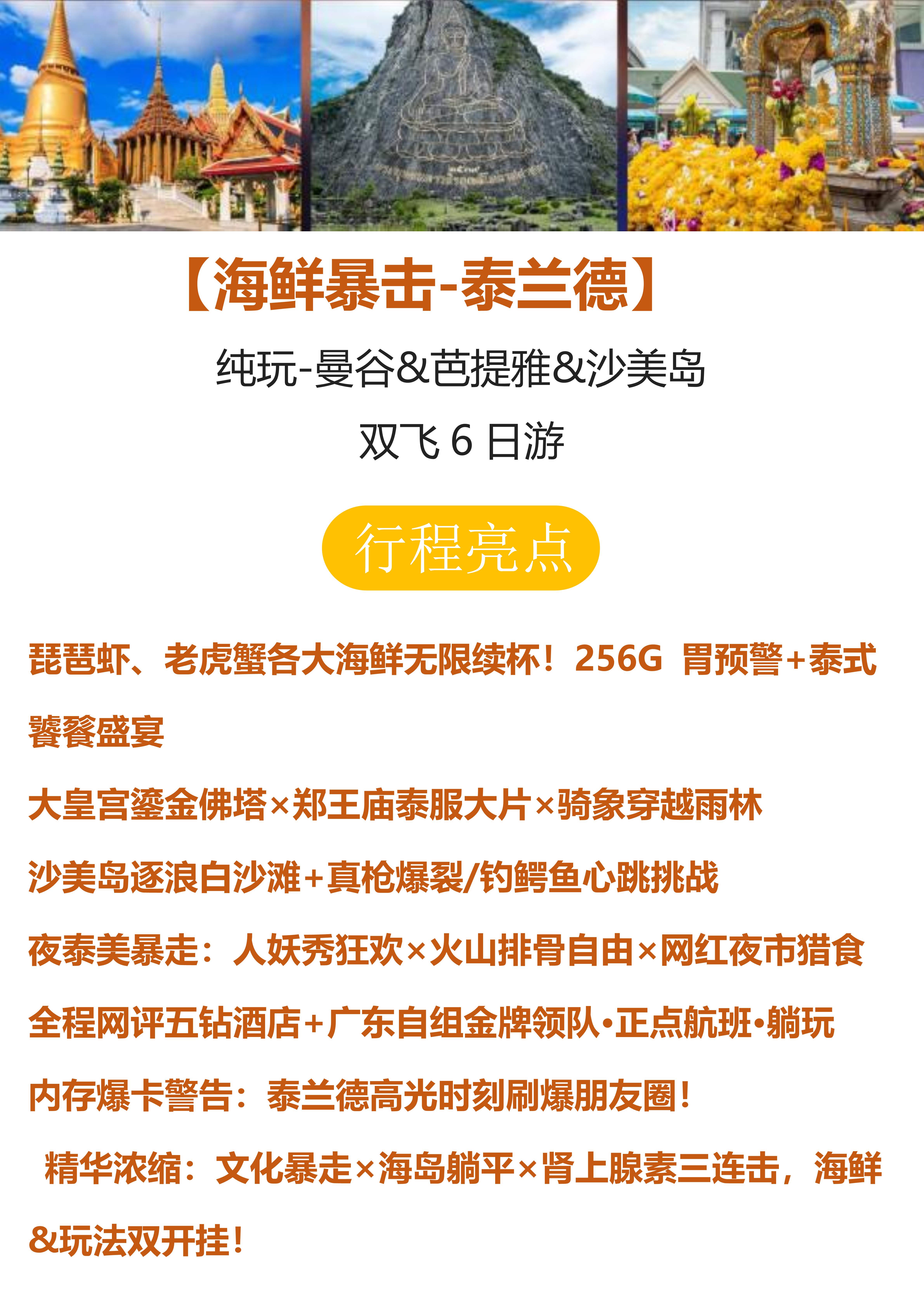 【海鲜暴击-泰兰德】 纯玩-曼谷&芭提雅&沙美岛 双飞6日游