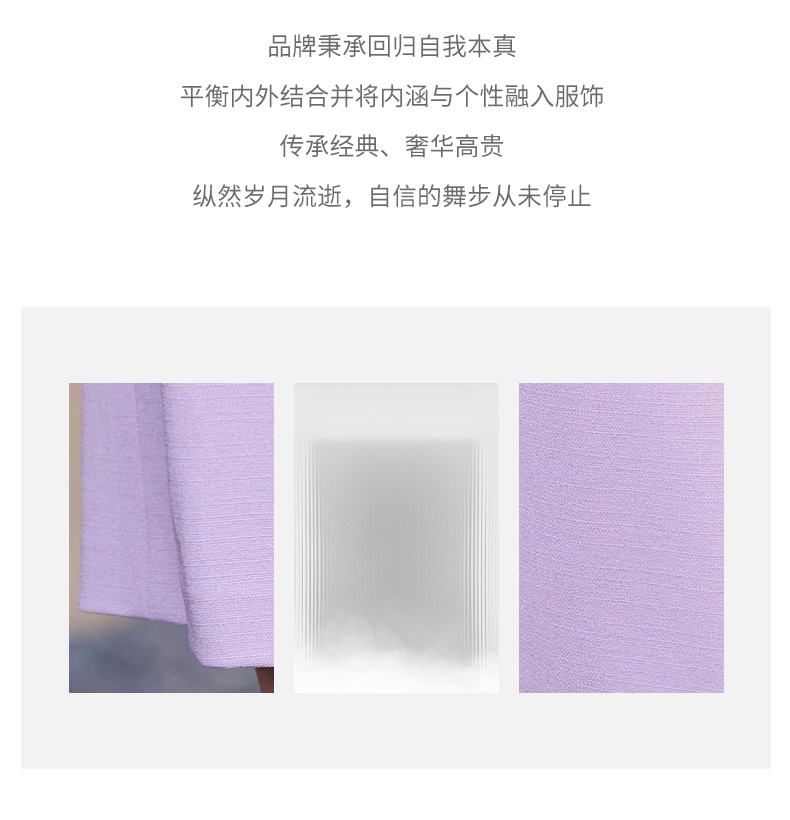 成熟、稳重、高贵典雅、大方得体 融合东方文化的含蓄和法国的浪漫 将创意的艺术性与消费需求相结合 为自信女性塑造高品质场合服装