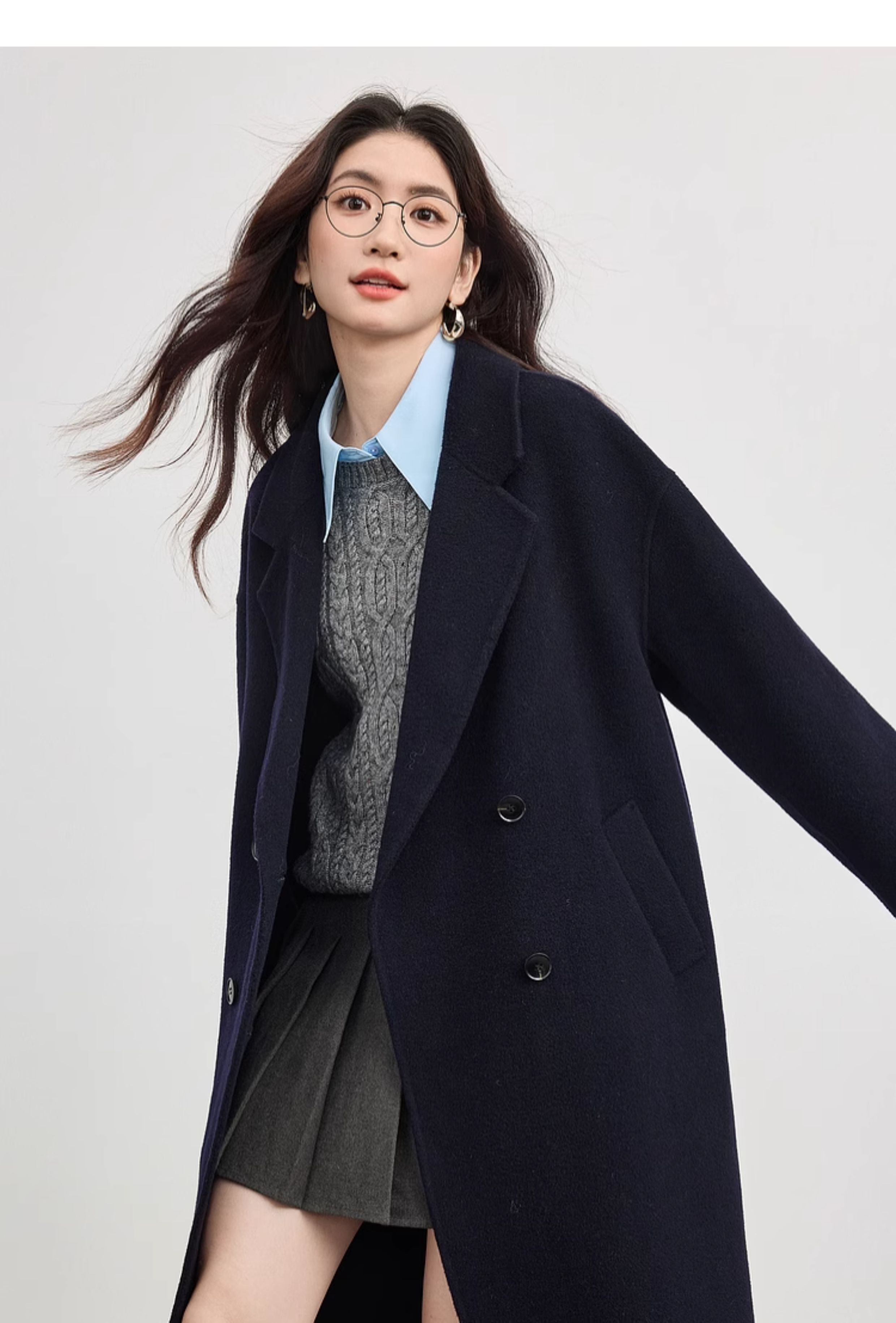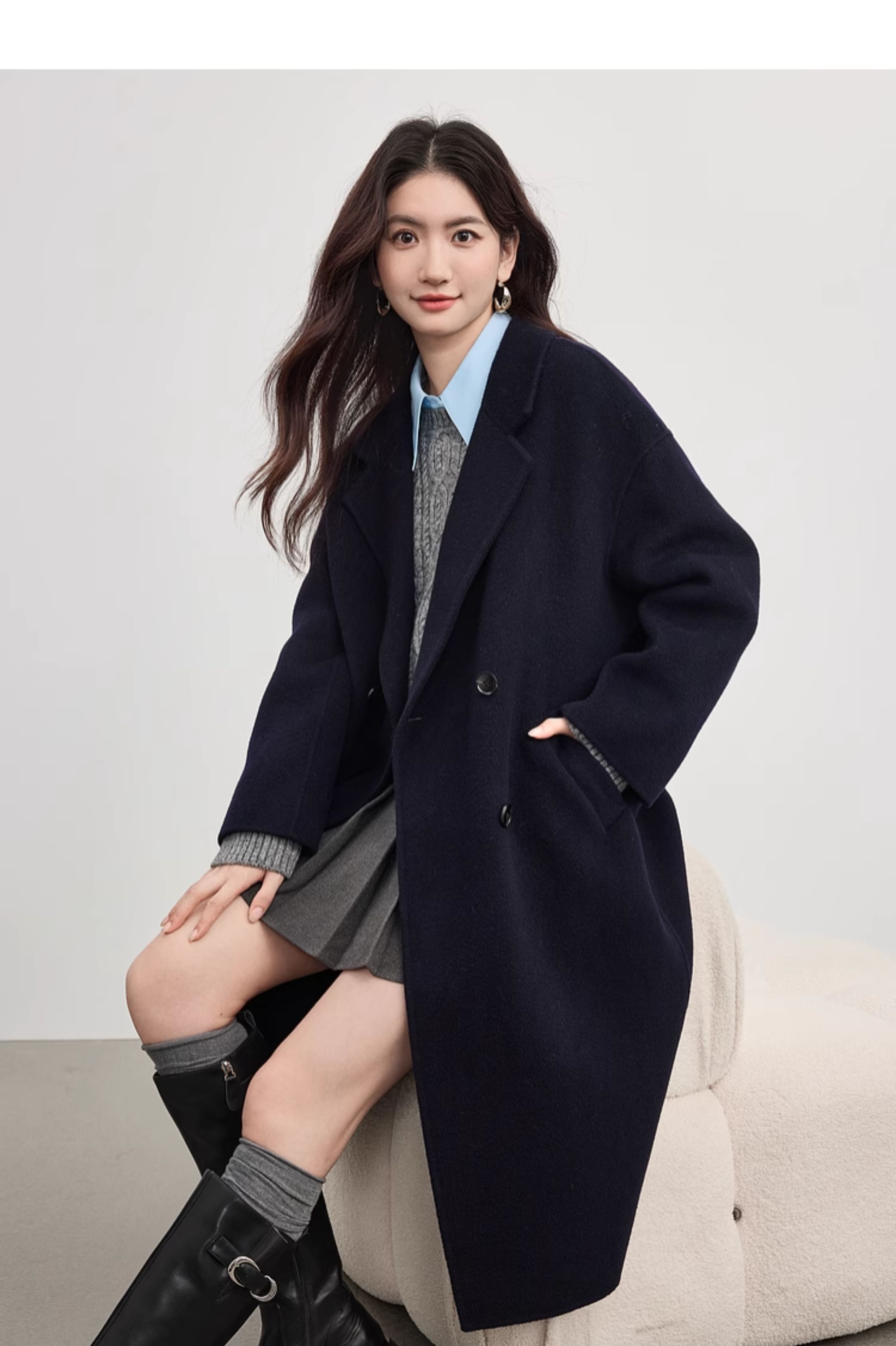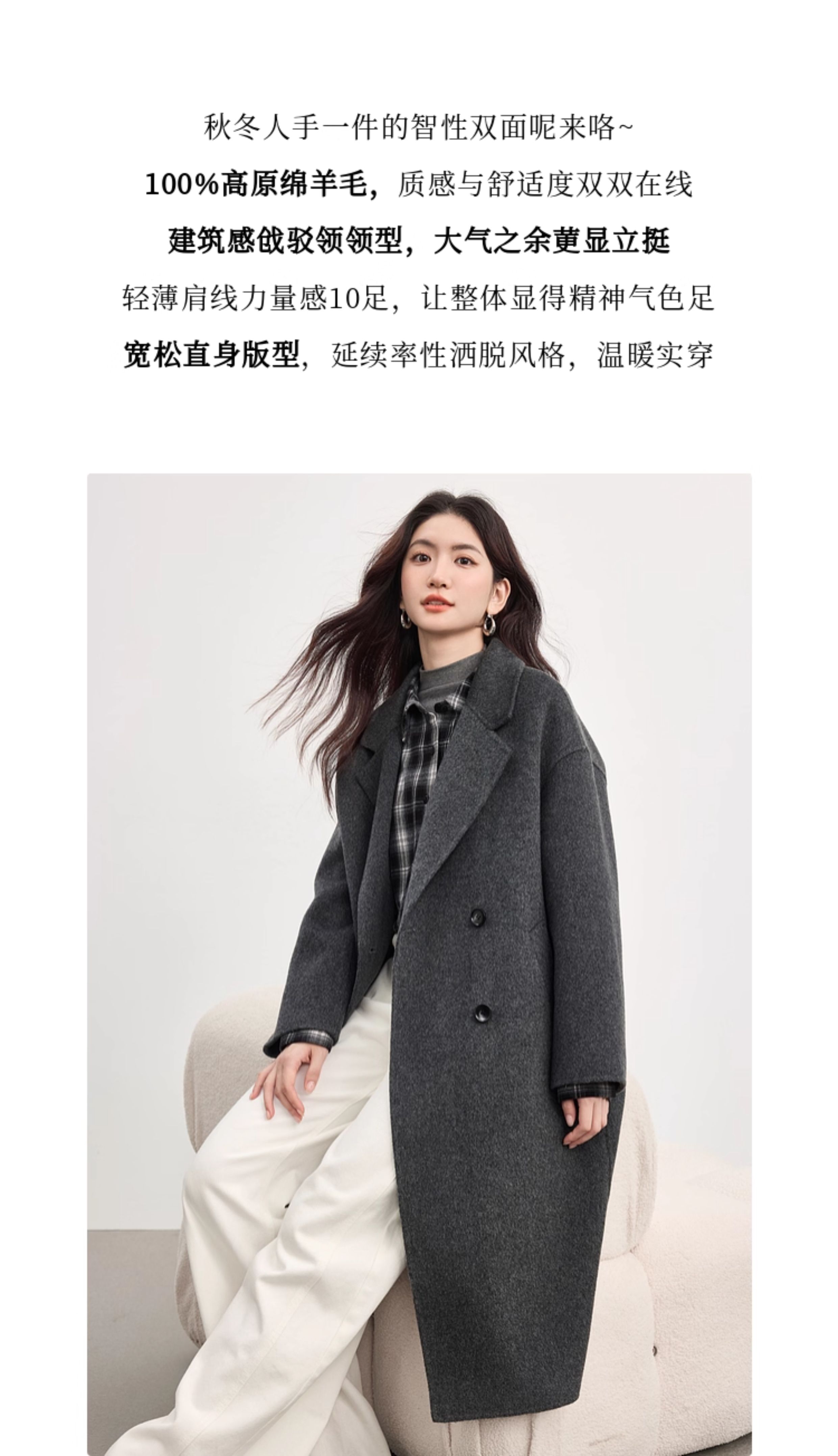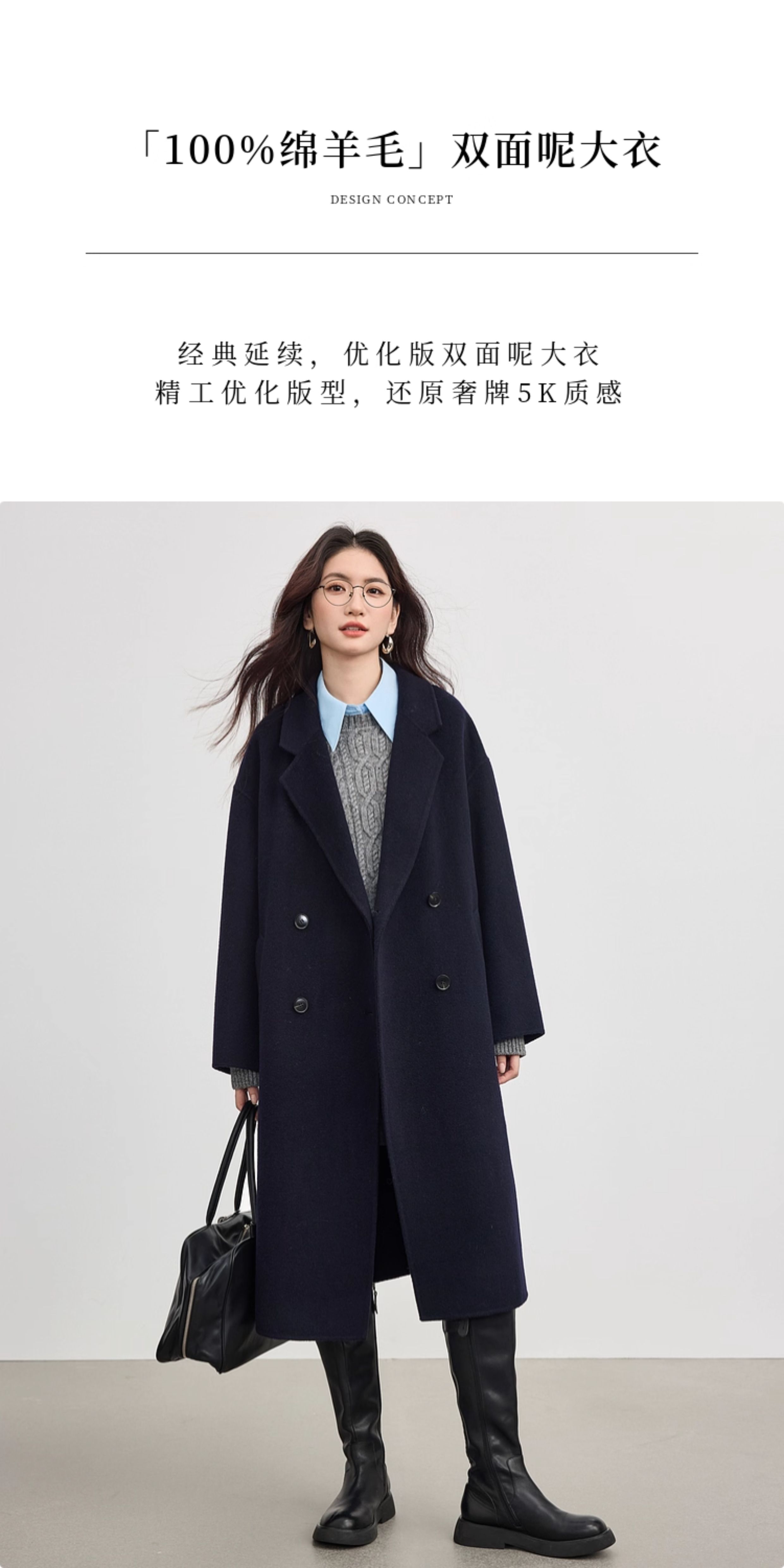 【10/1新品】熙世界【雪域高原100绵羊毛】双面呢大衣女秋冬高级长款毛呢外套
