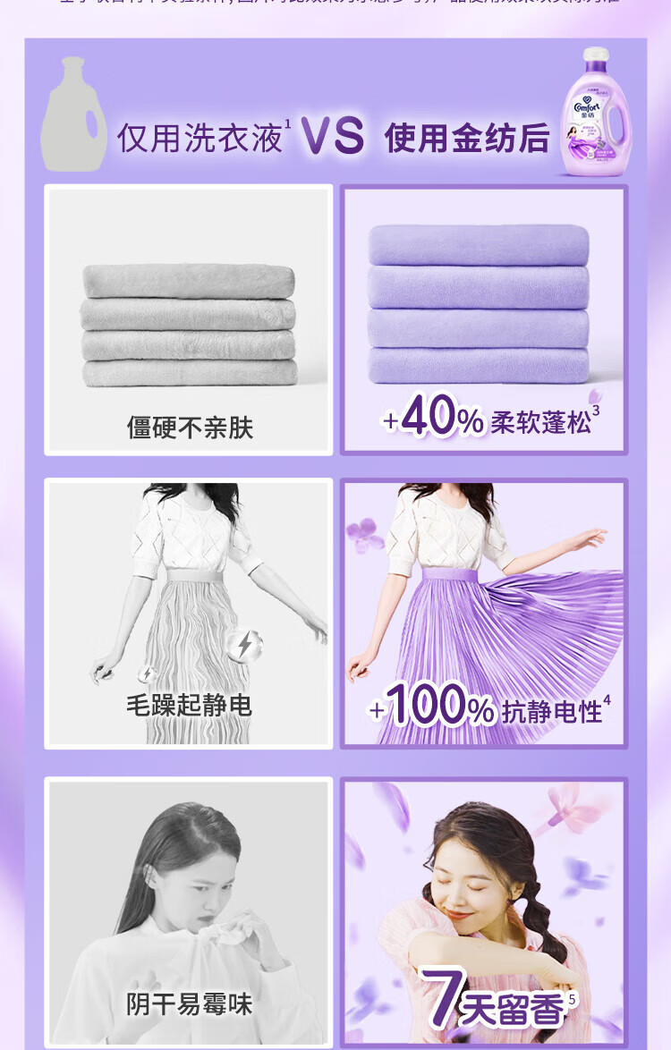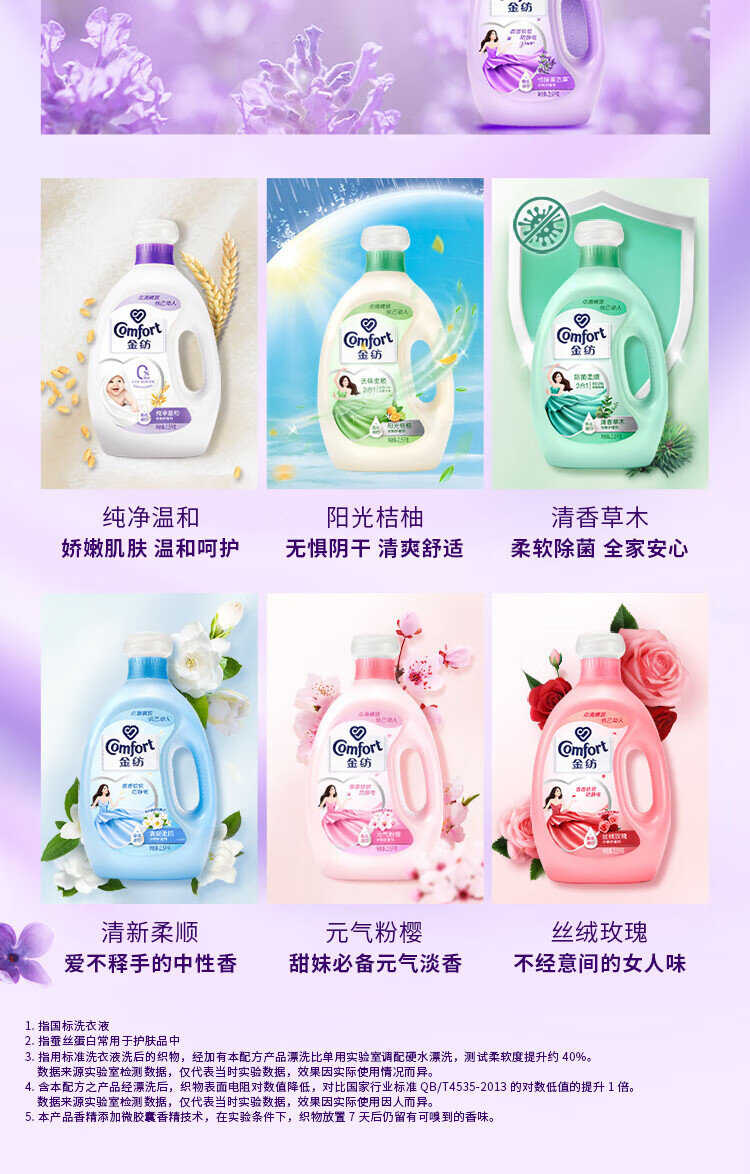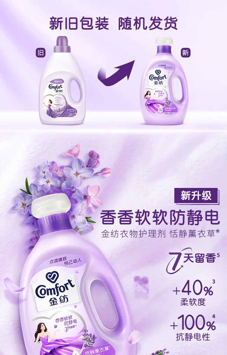 金纺衣物柔顺剂香软防静电持久留香恬静薰衣草2.5KG