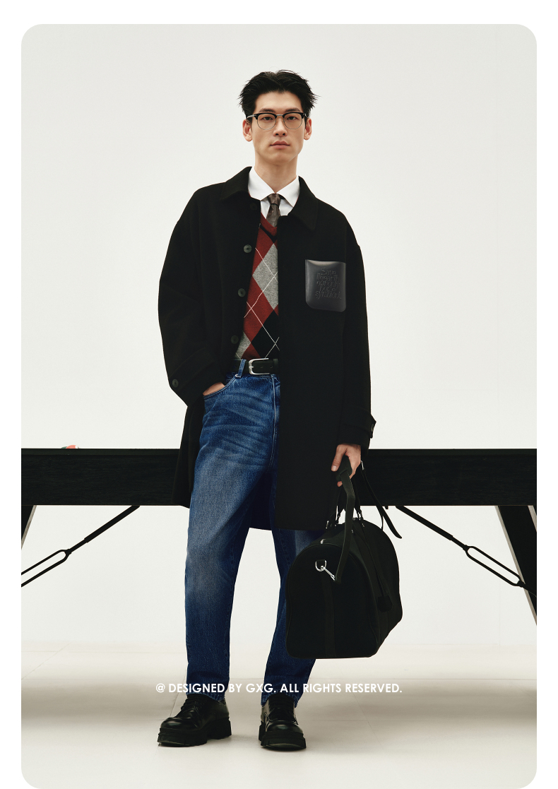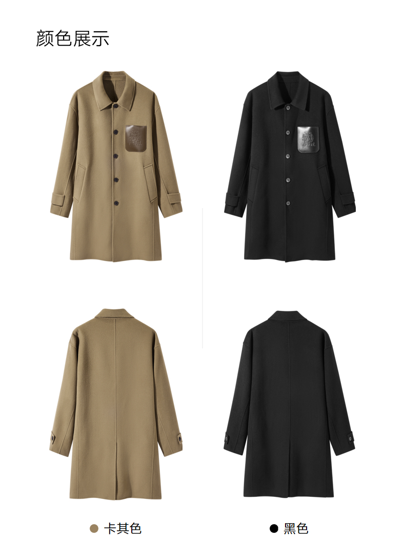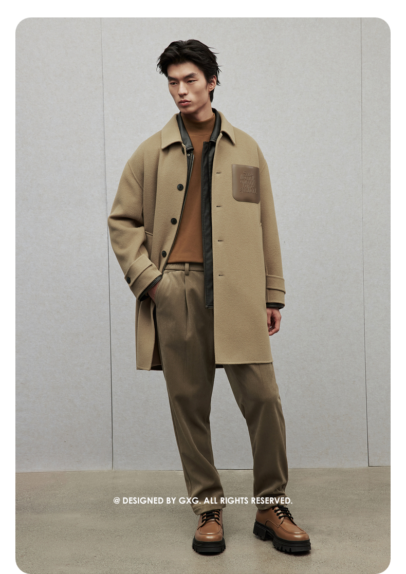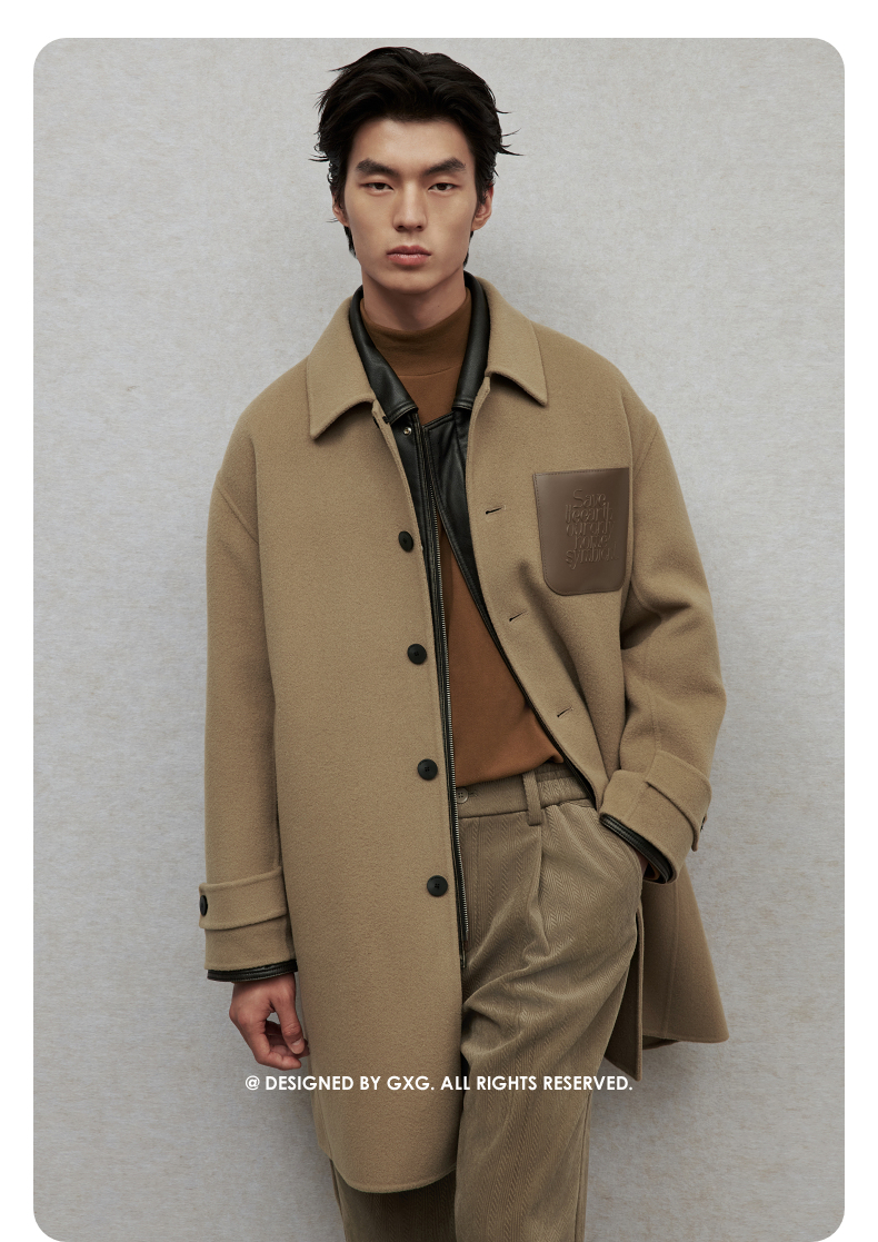 GXG男装 多色pu皮口袋设计时尚简约长款羊毛大衣外套 冬季热卖G24D264003