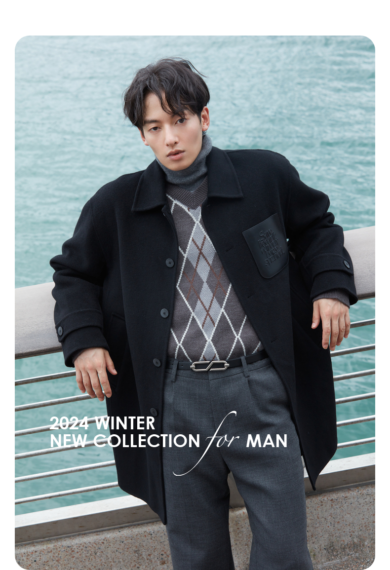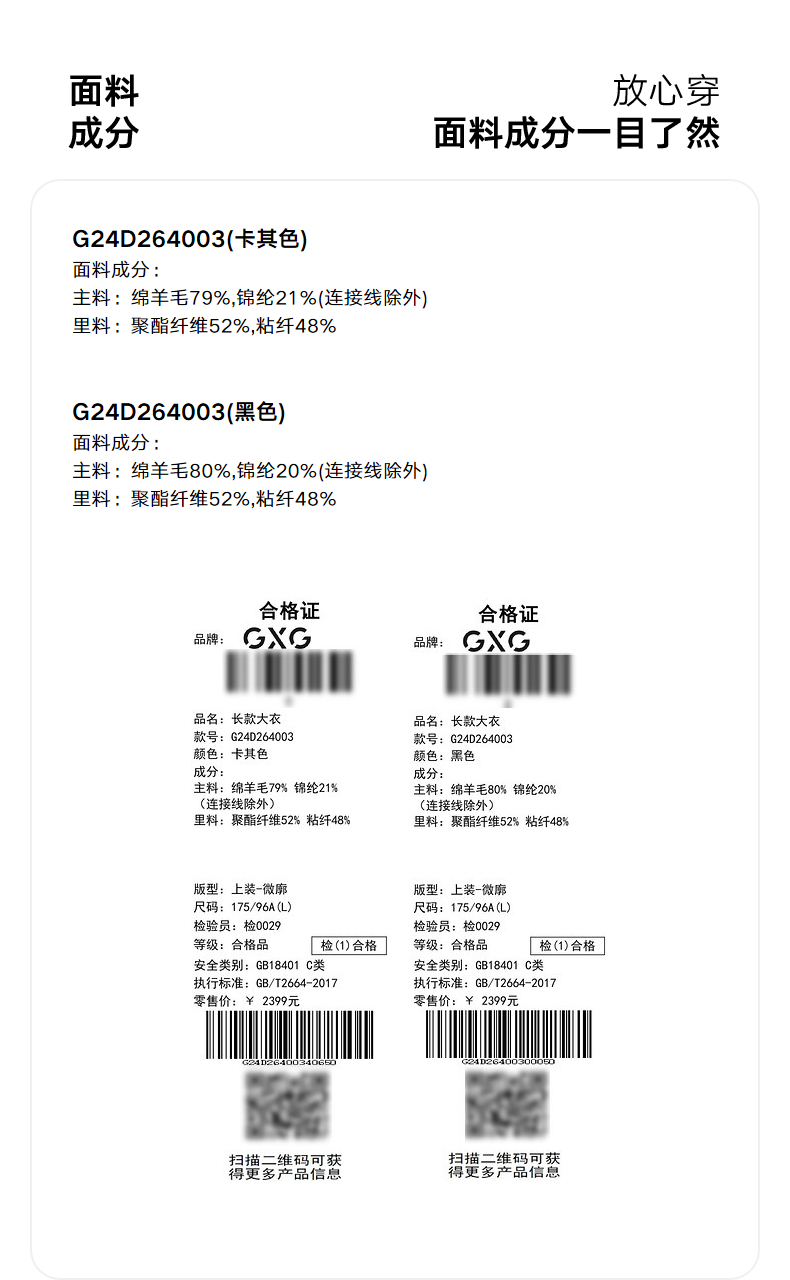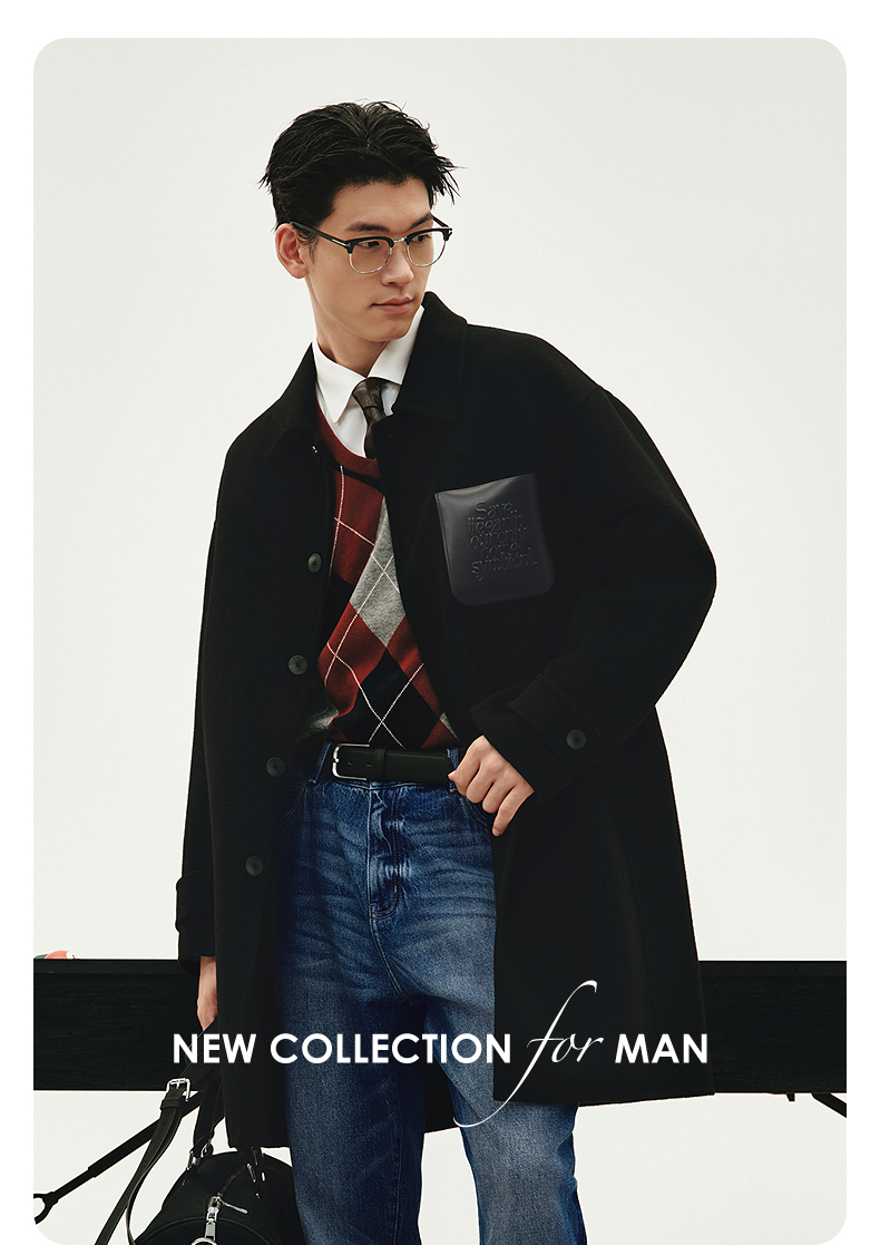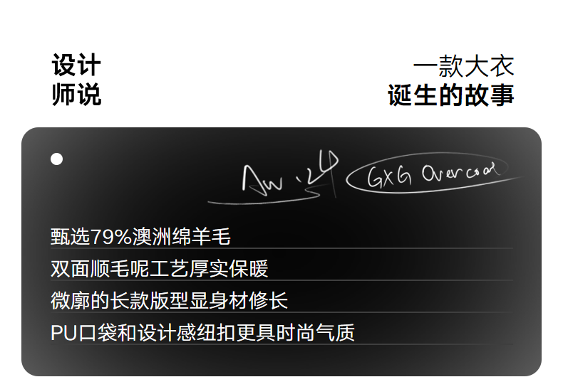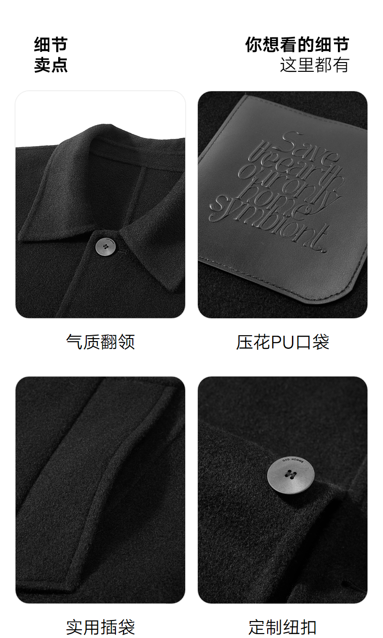 GXG男装 多色pu皮口袋设计时尚简约长款羊毛大衣外套 冬季热卖G24D264003