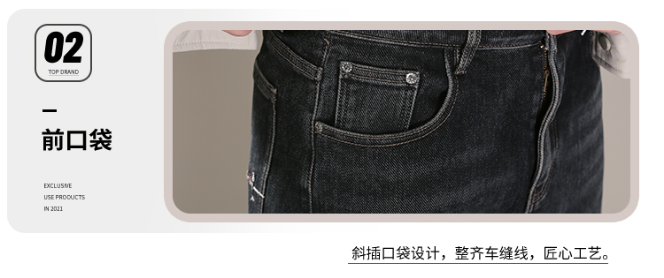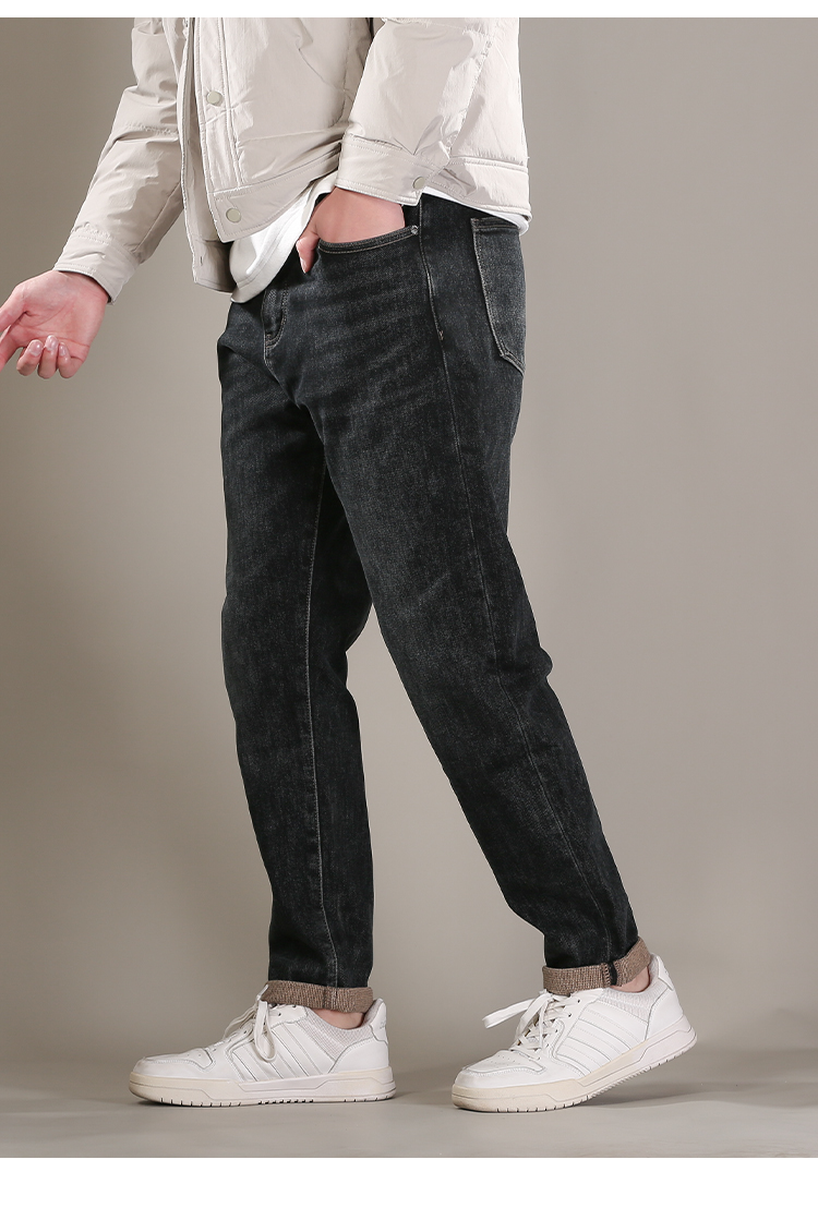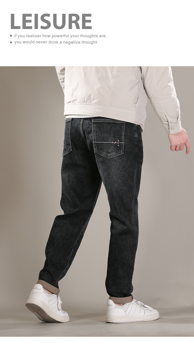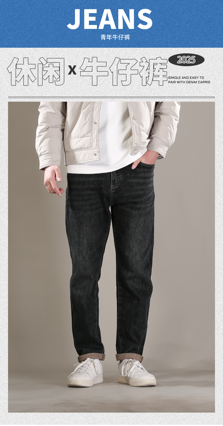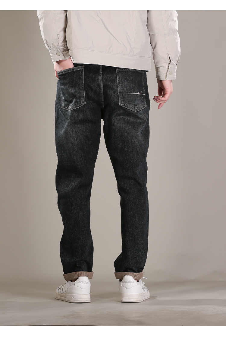 DRONKOO 2025 正常腰左袋右后袋白棕绣线一体绒浅咖底厚牛仔长裤