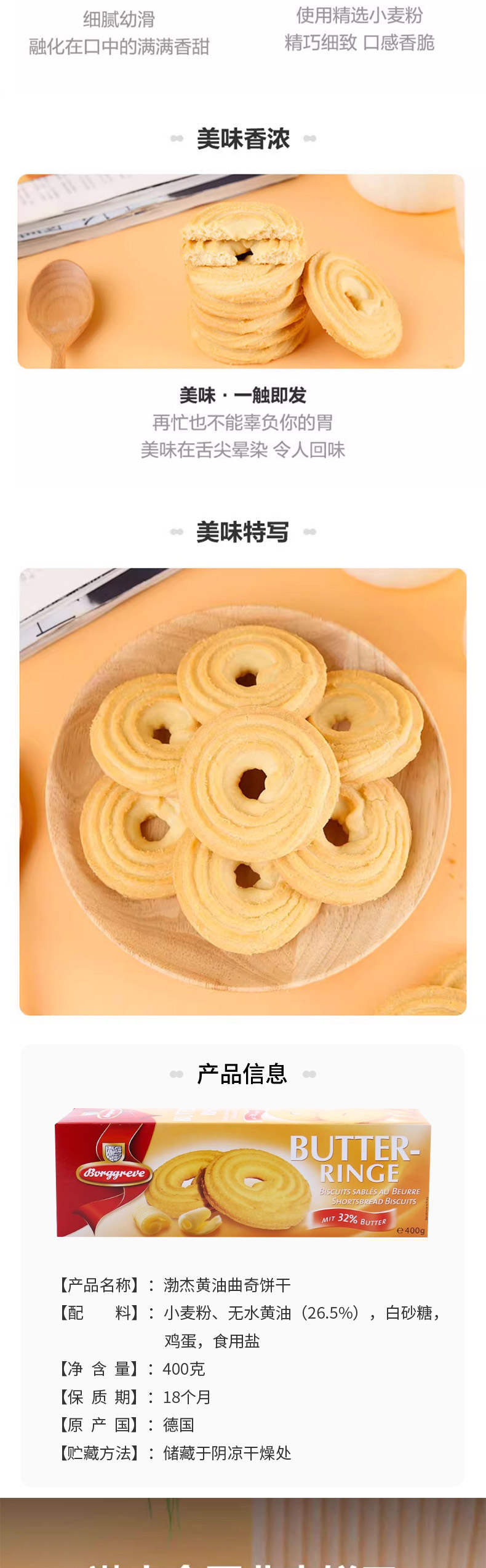 德国进口渤杰黄油丨金圈曲奇饼干400g
