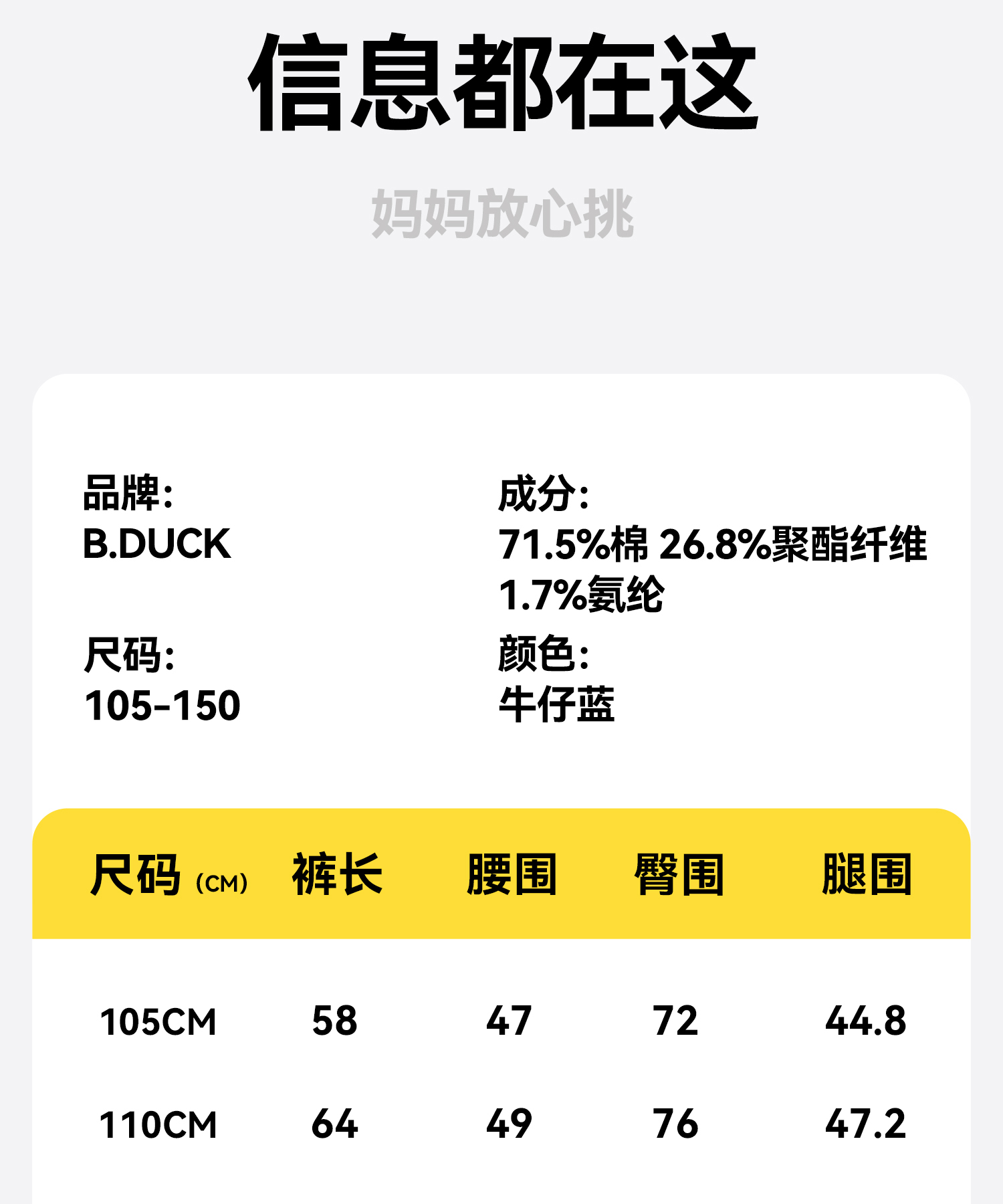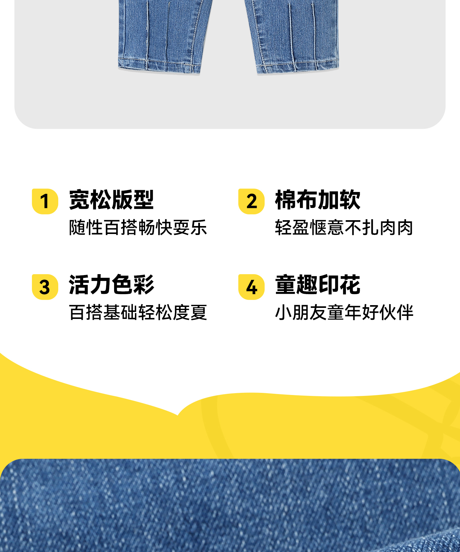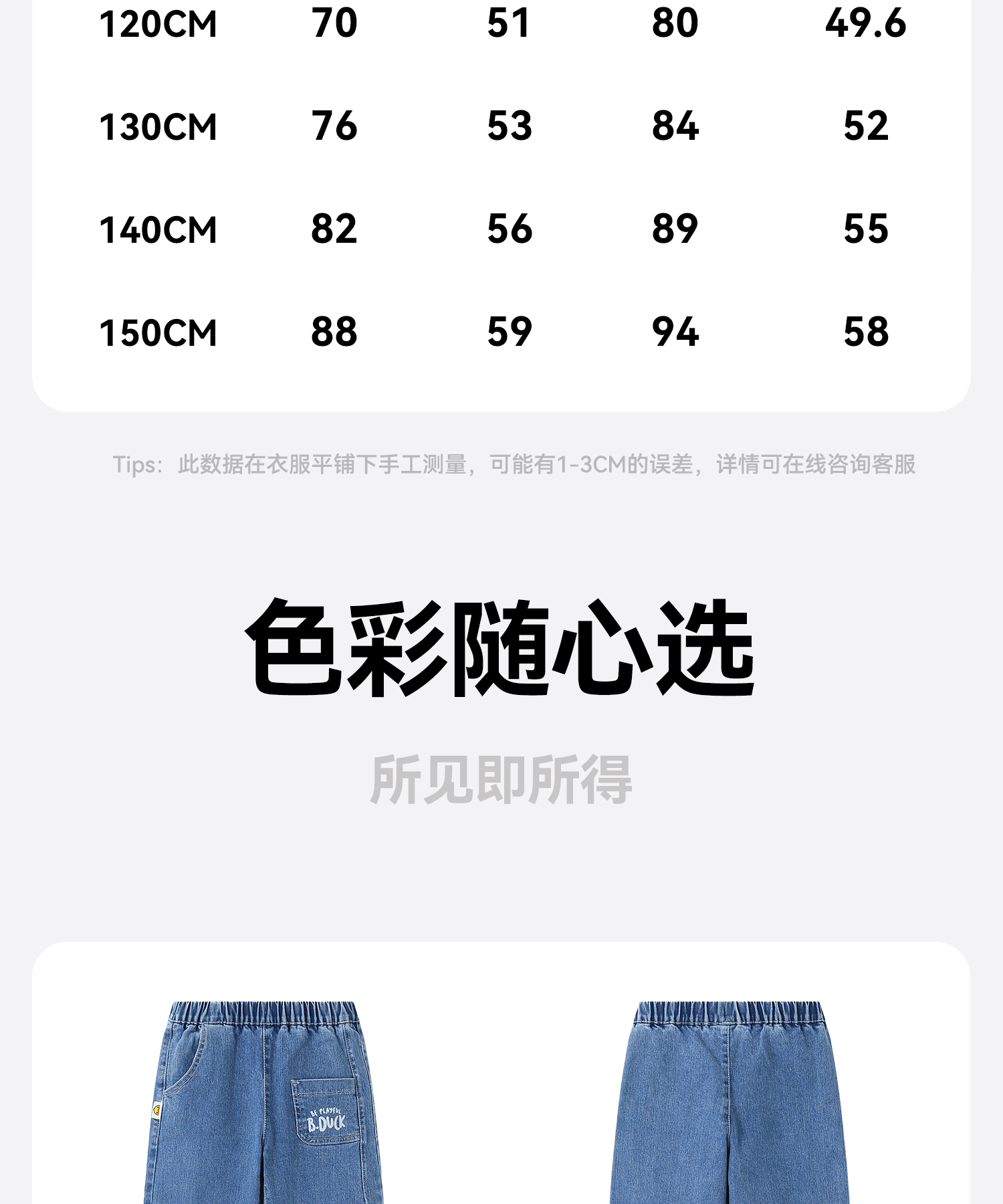 【专柜同款】B.Duck小黄鸭童装男童牛仔裤春秋儿童裤子休闲裤105-150 BDF3556560
