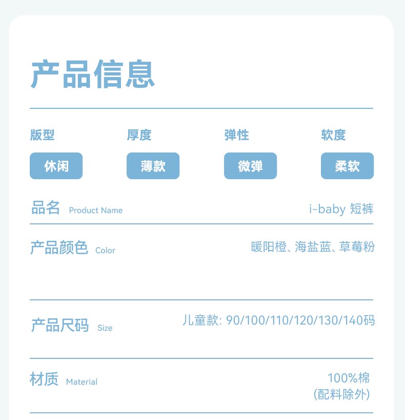 【QHXJ】i-baby儿童短裤亲子速干短裤