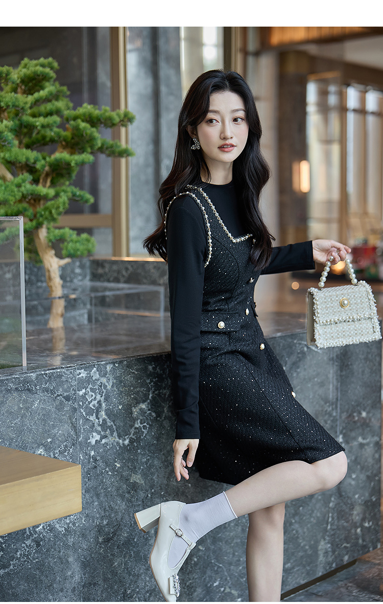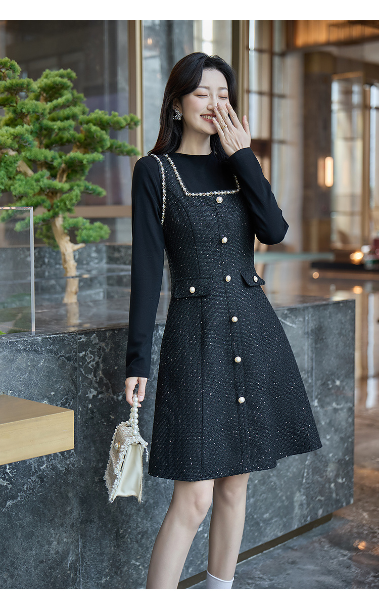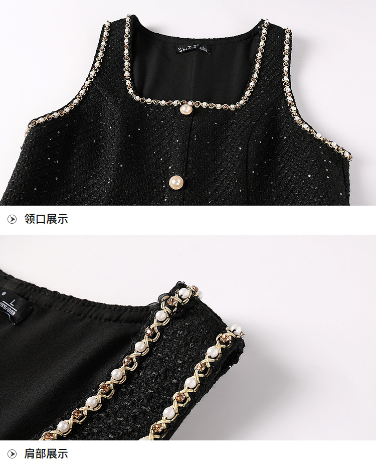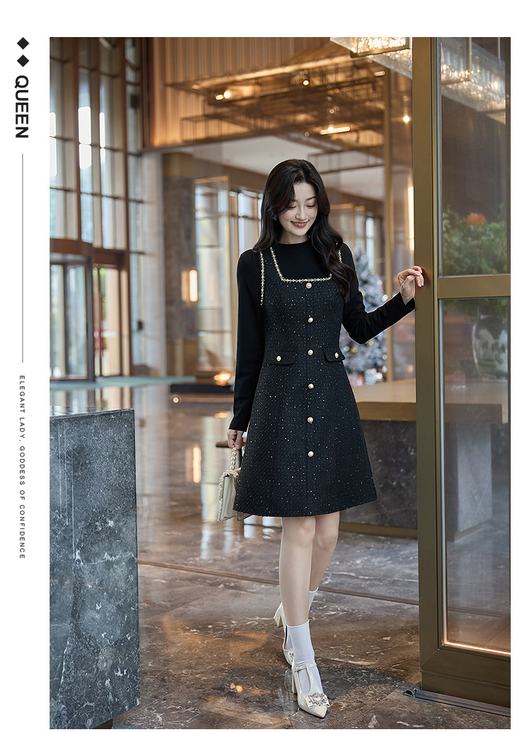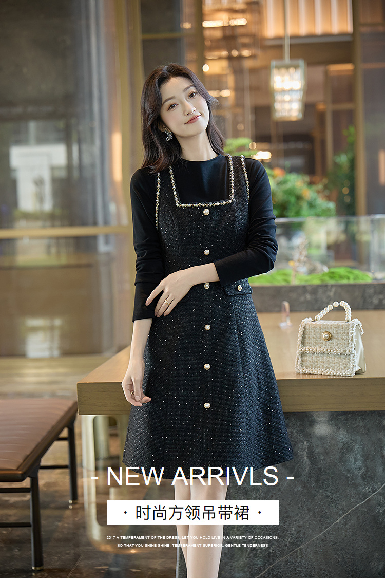 奢姿大码女装2025冬季胖妹妹时尚粗花呢方领吊带裙气质通勤长裙9953870272A
