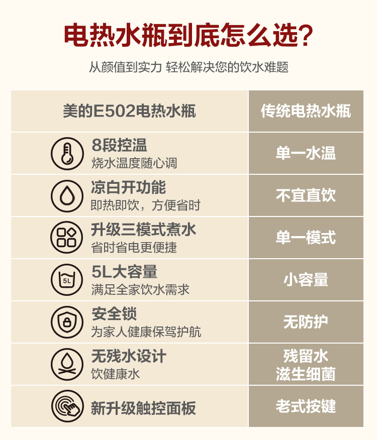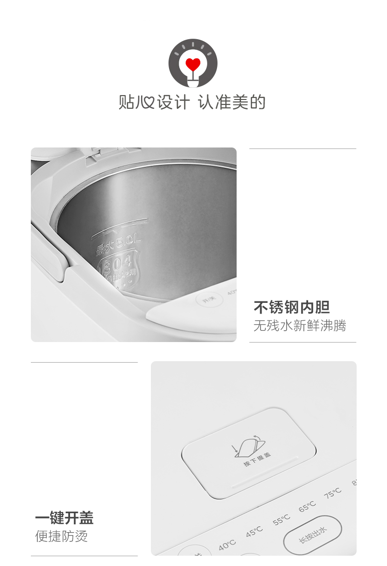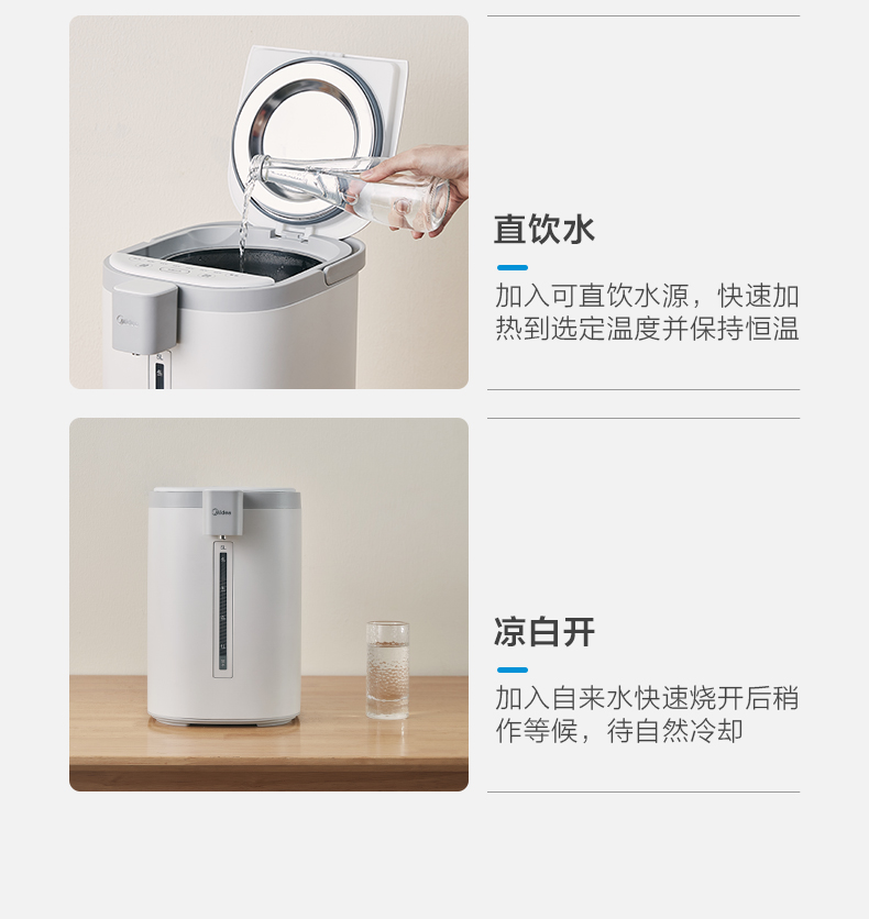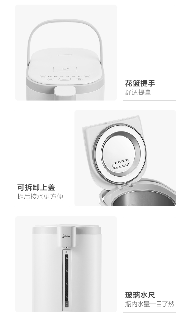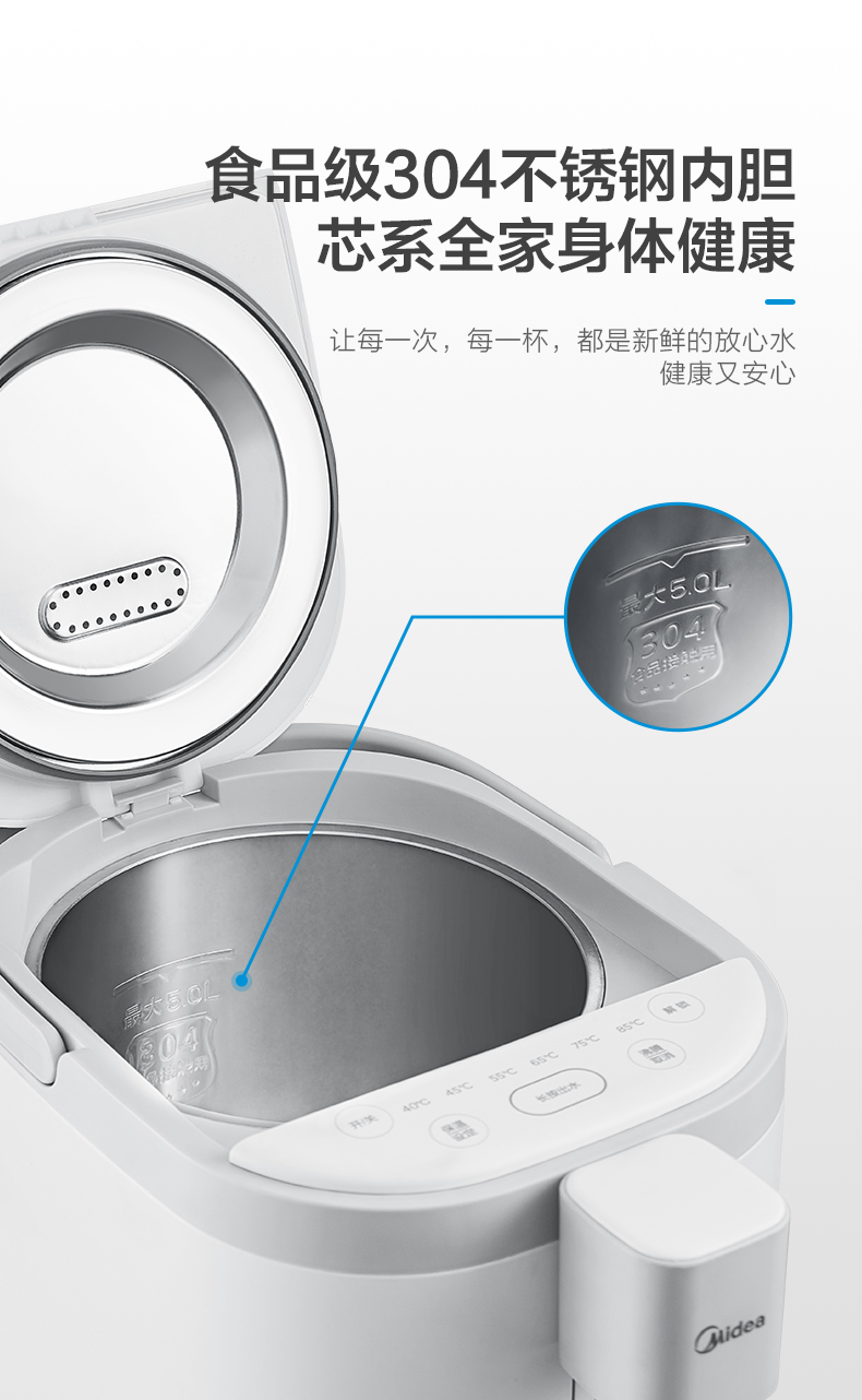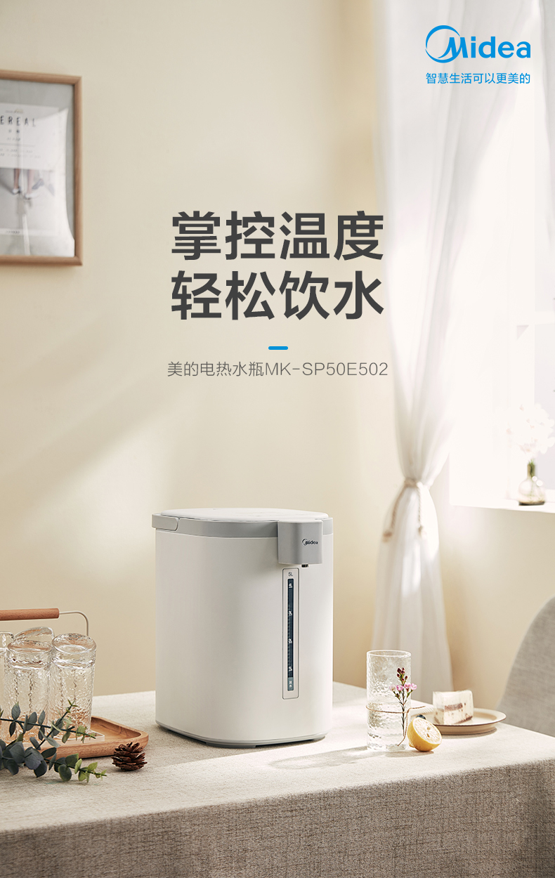 【8段温控】美的电热水瓶 家用大容量 烧水器 全自动 智能保温 即热 电烧水壶E502