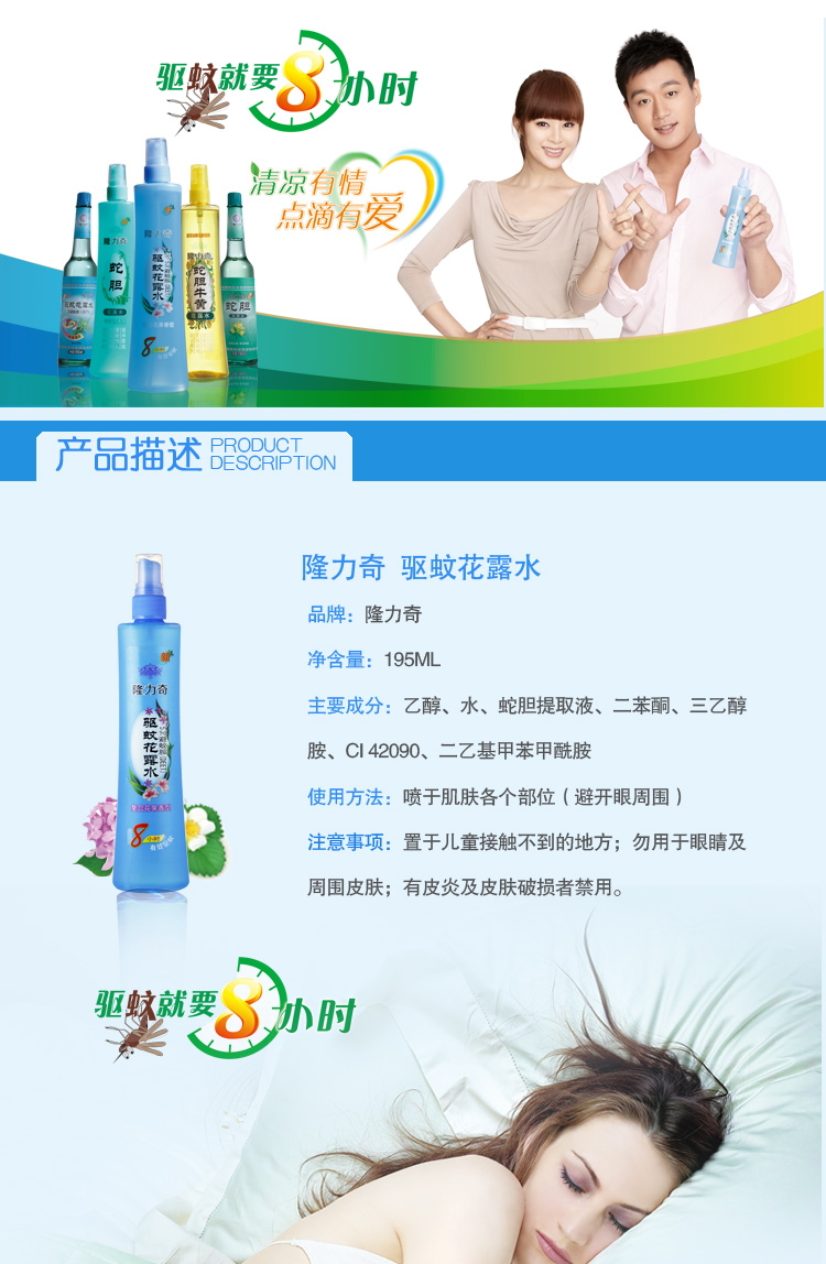 隆力奇驱蚊花露水195ml