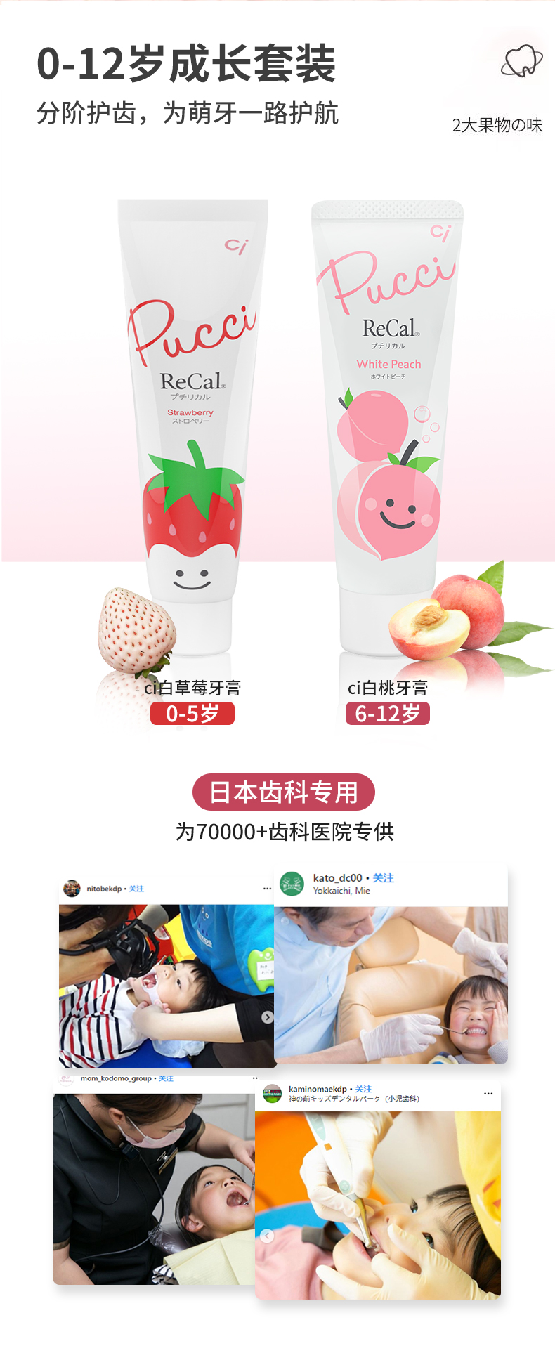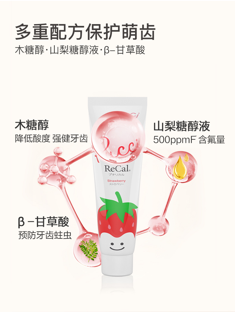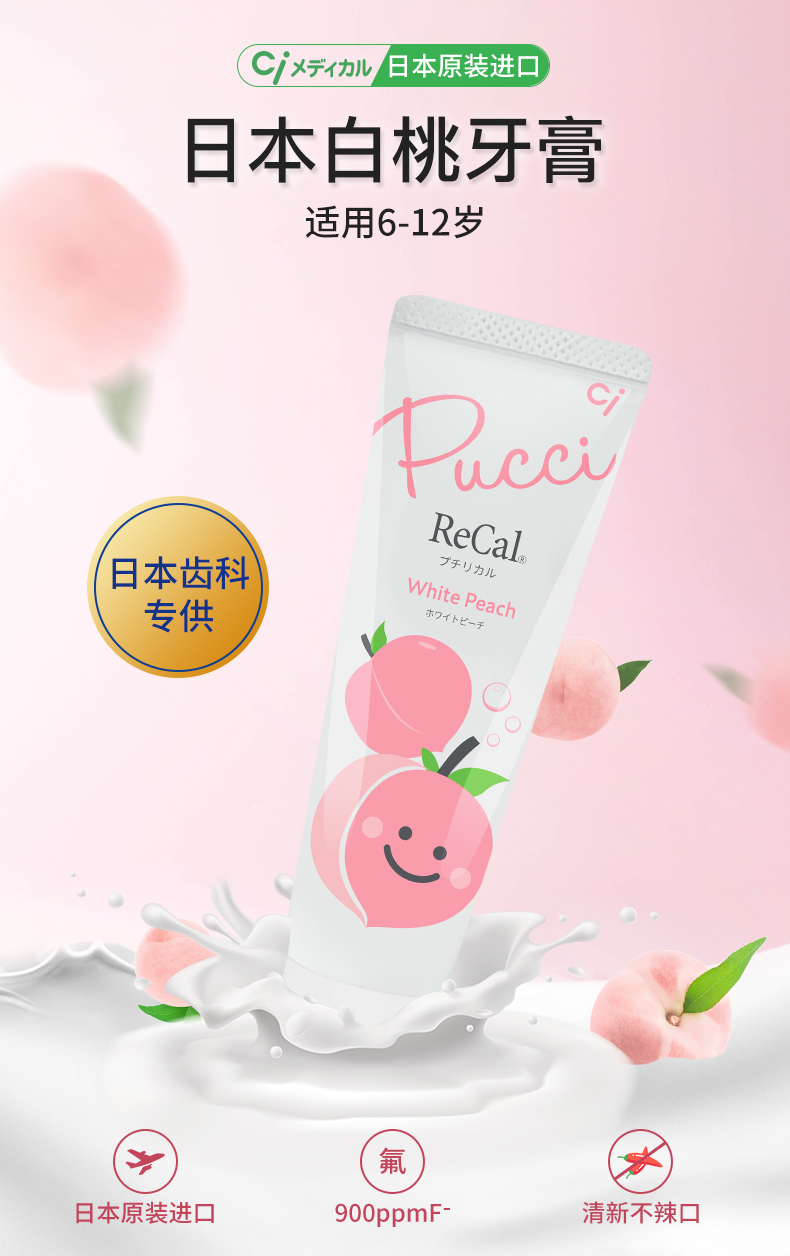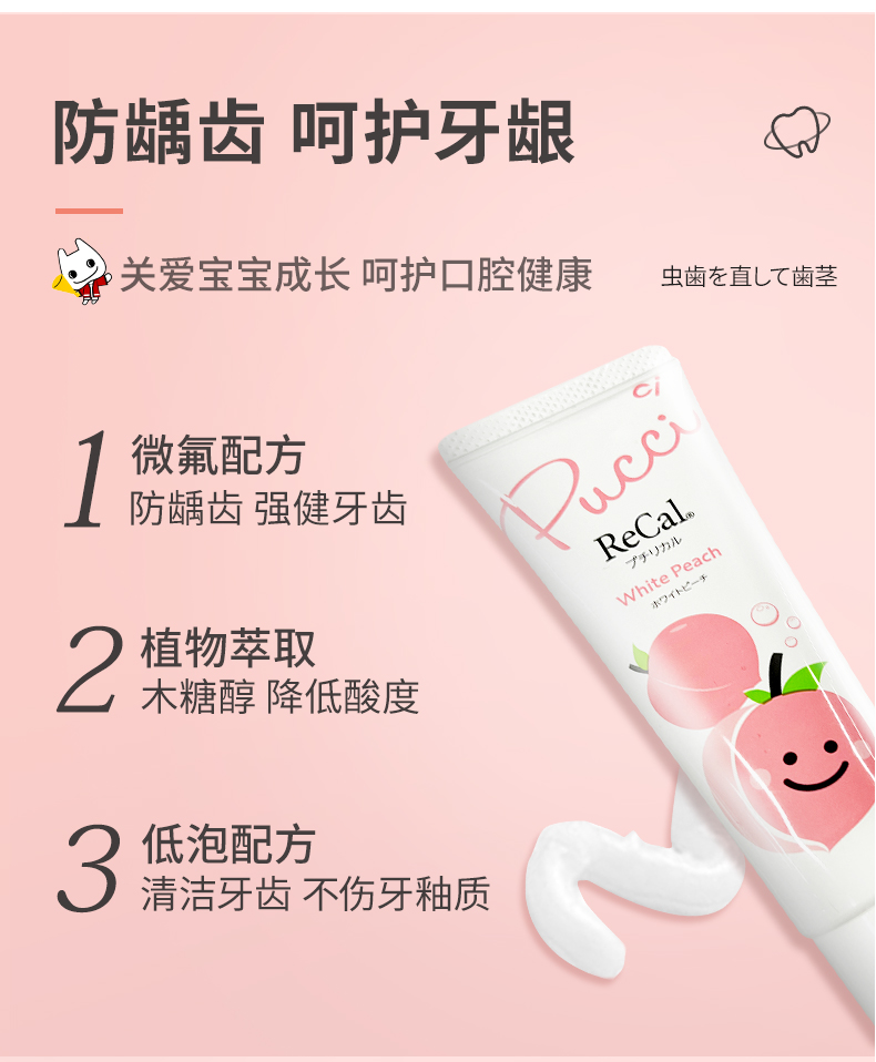 【云优选】日本Ci白草莓白桃儿童牙膏水果口味适合0-12岁阶段含氟牙膏