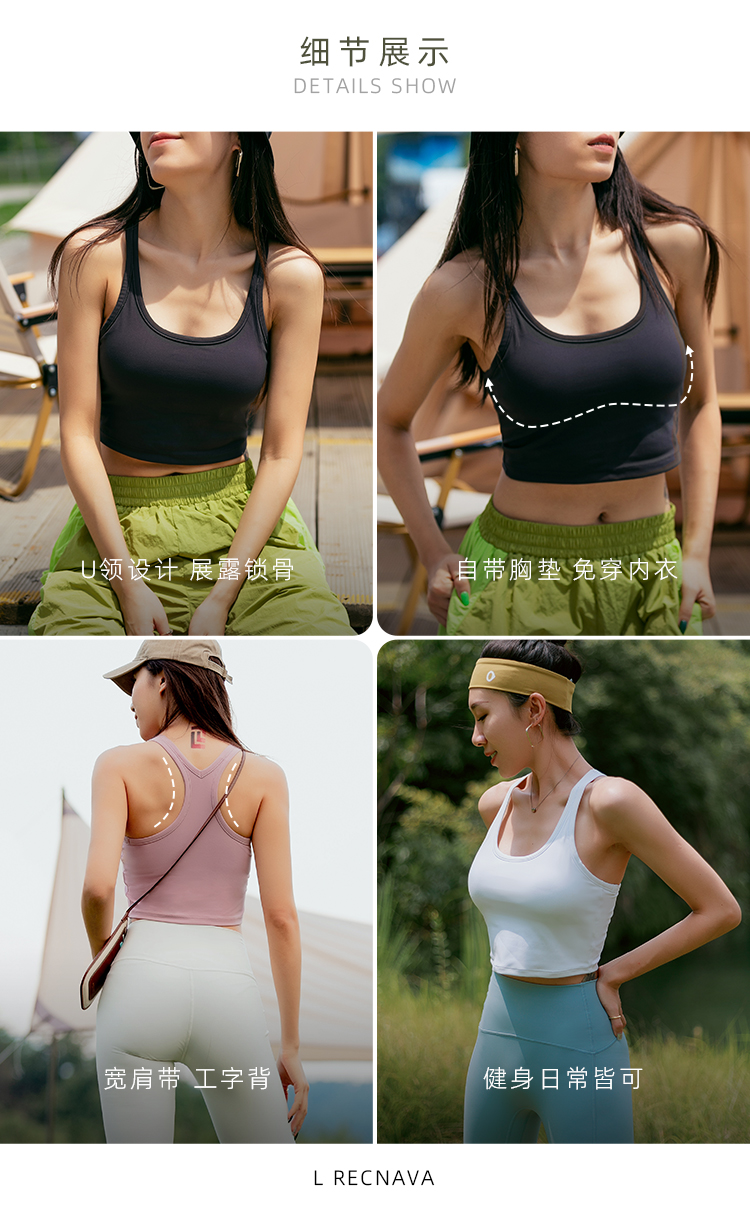 【高弹面料】中高强度一体式胸垫-后背扣可调节运动胸衣