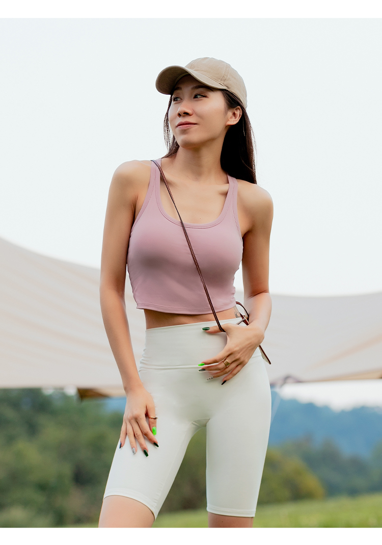 【裸感】蔷薇粉工字美背带胸垫背心 瑜伽健身日常皆可