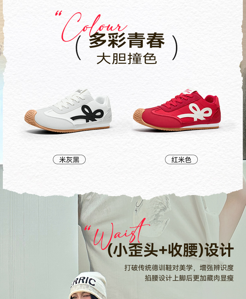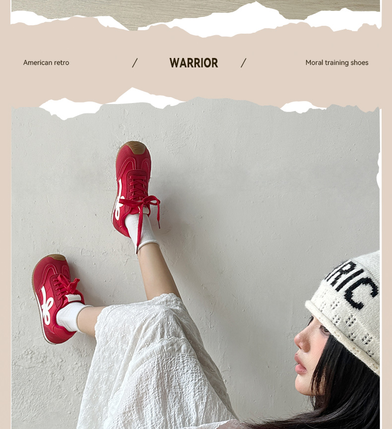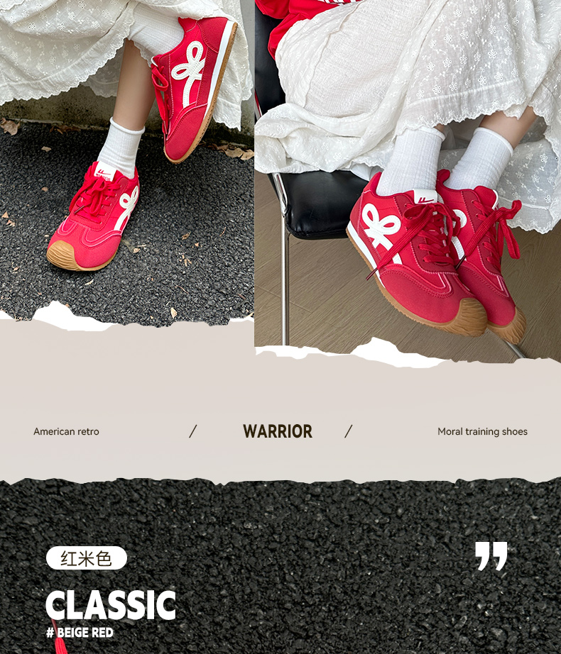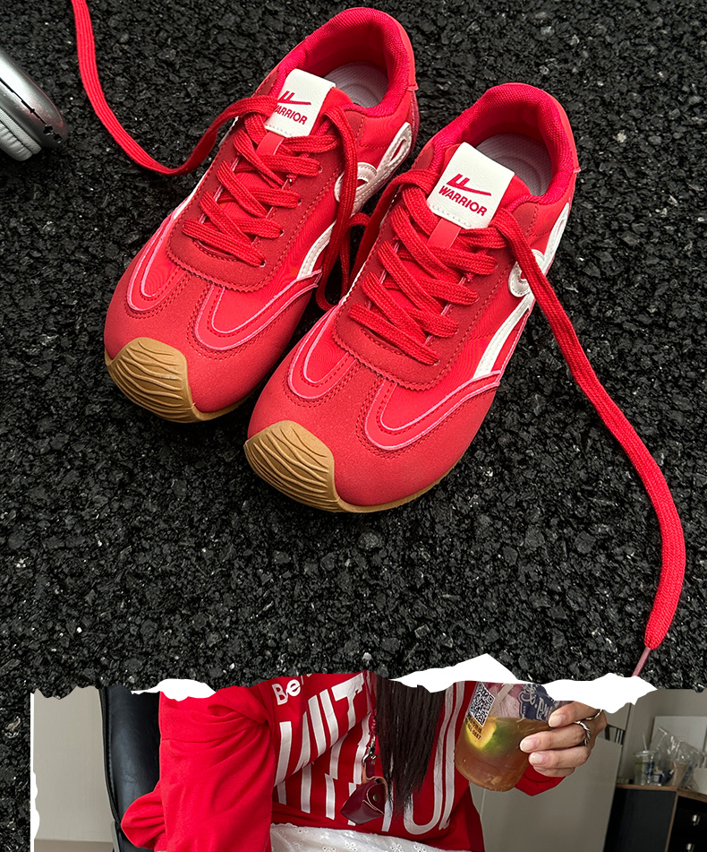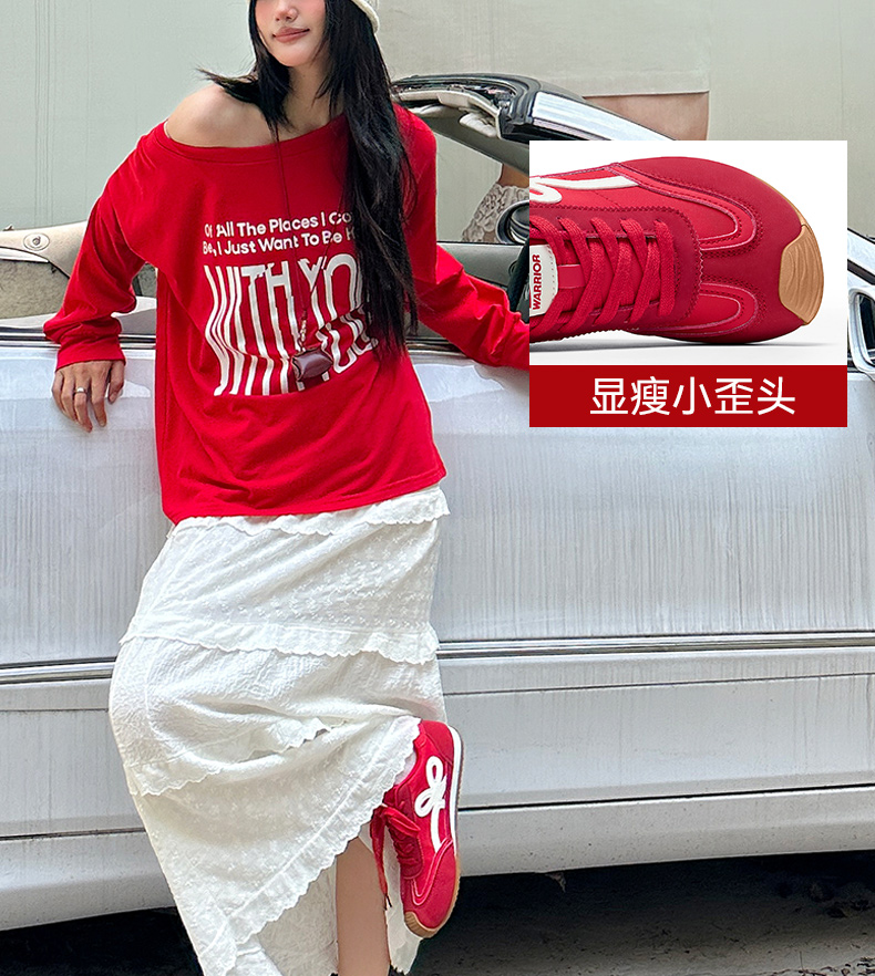 回力红色德训鞋女款2025新款秋冬复古小白鞋板鞋百搭休闲运动鞋子