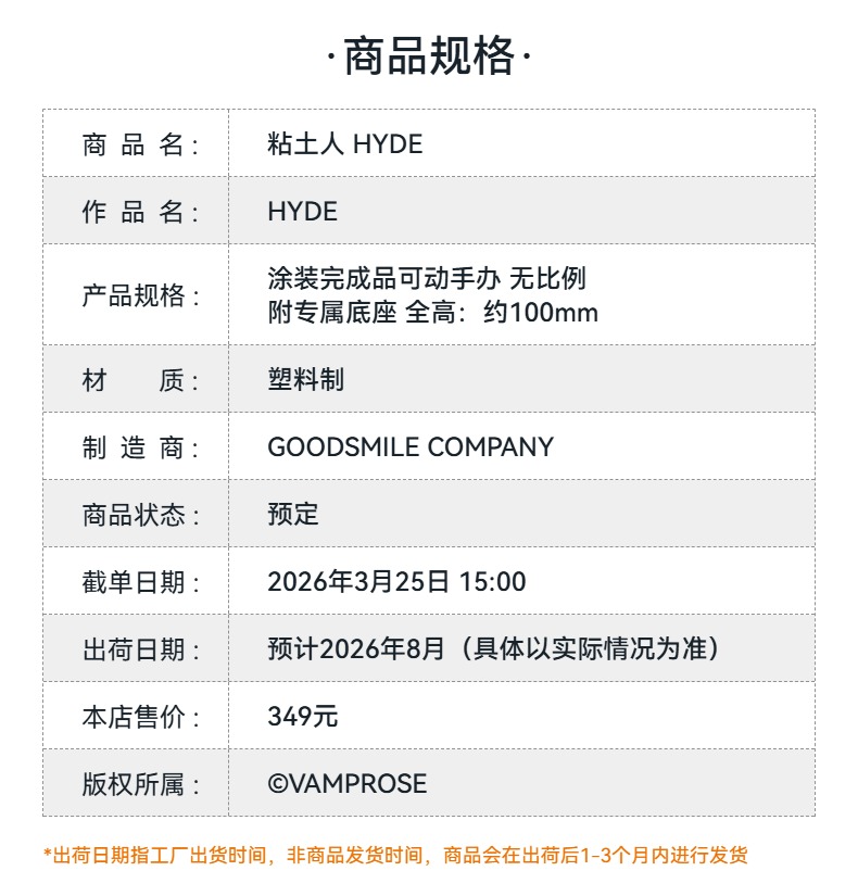 【GSC预售定金】粘土人 HYDE 附官方限定特典 手办模玩