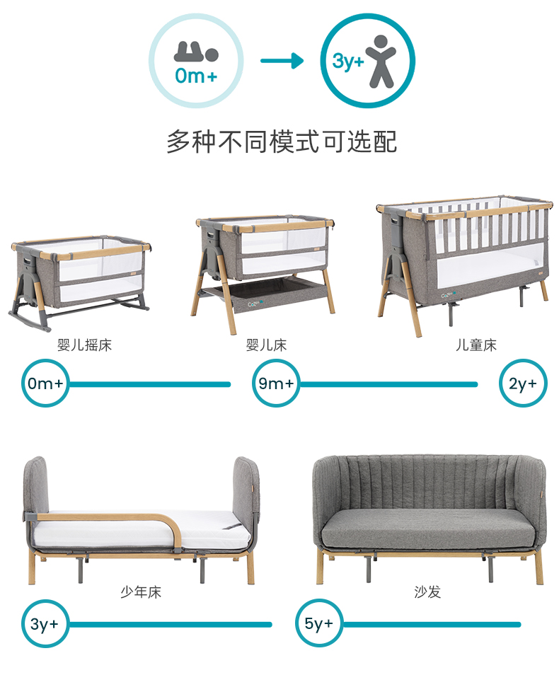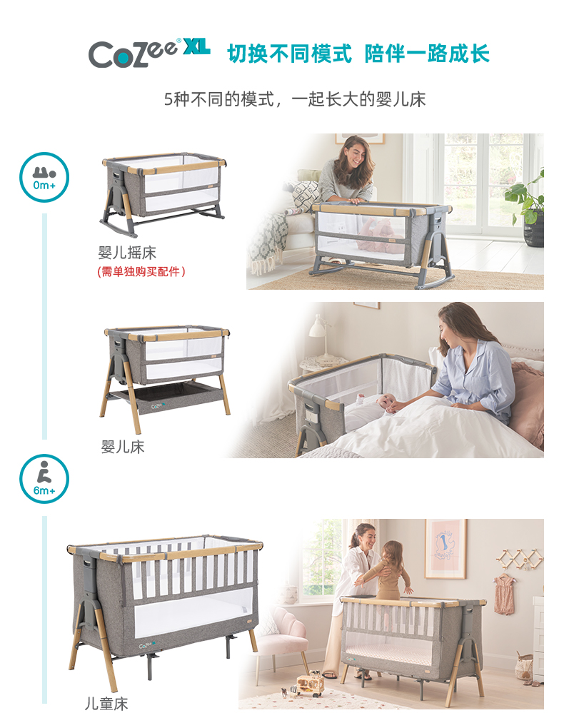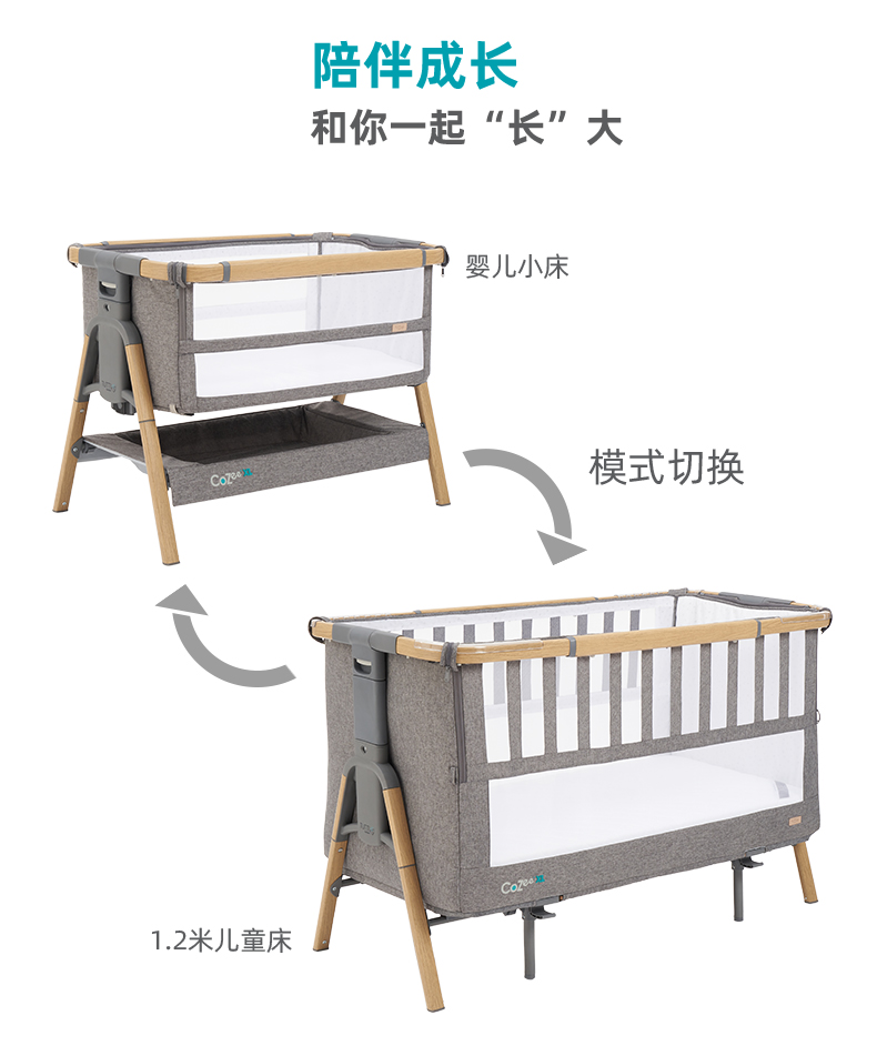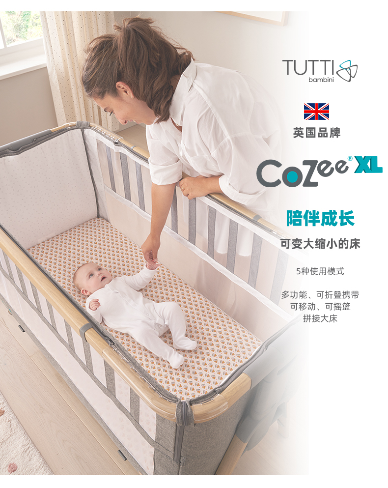 CoZee XL成长床 | 英国 Tutti Bambini 婴儿床胡桃木色/米白色 婴儿床+幼儿床组合 |婴儿床成长型多功能可折叠拼接大床可移动儿童床COZEE XL 0-2y
