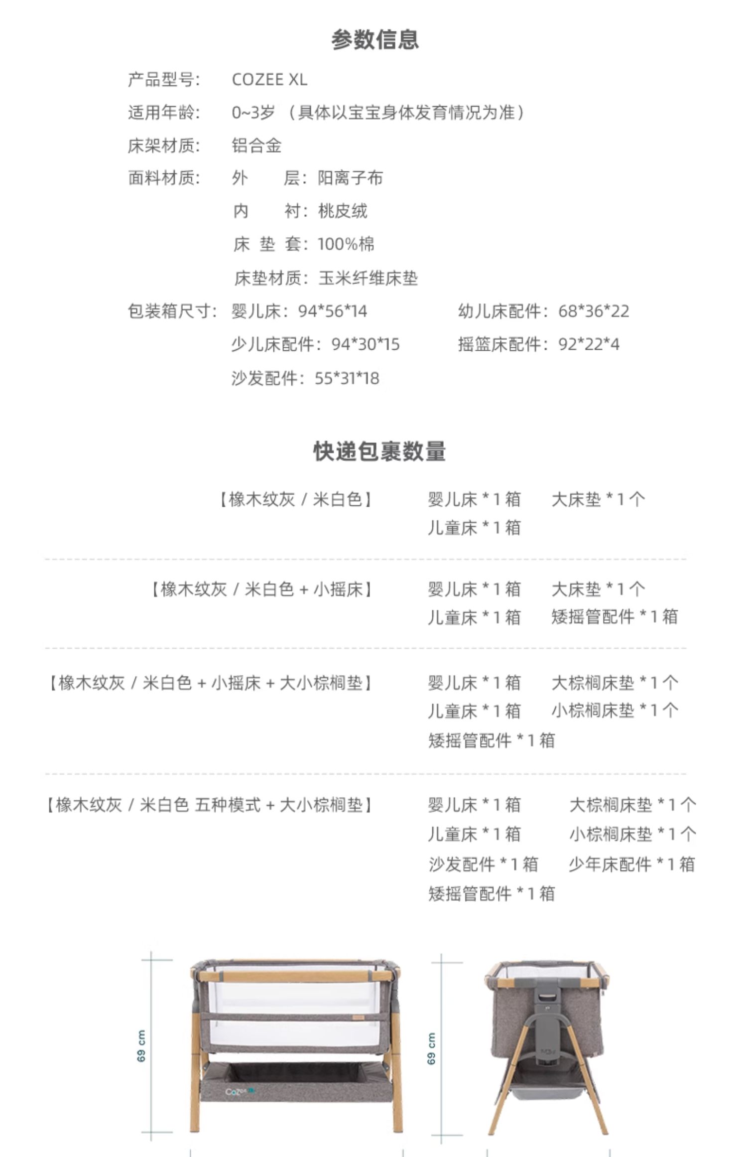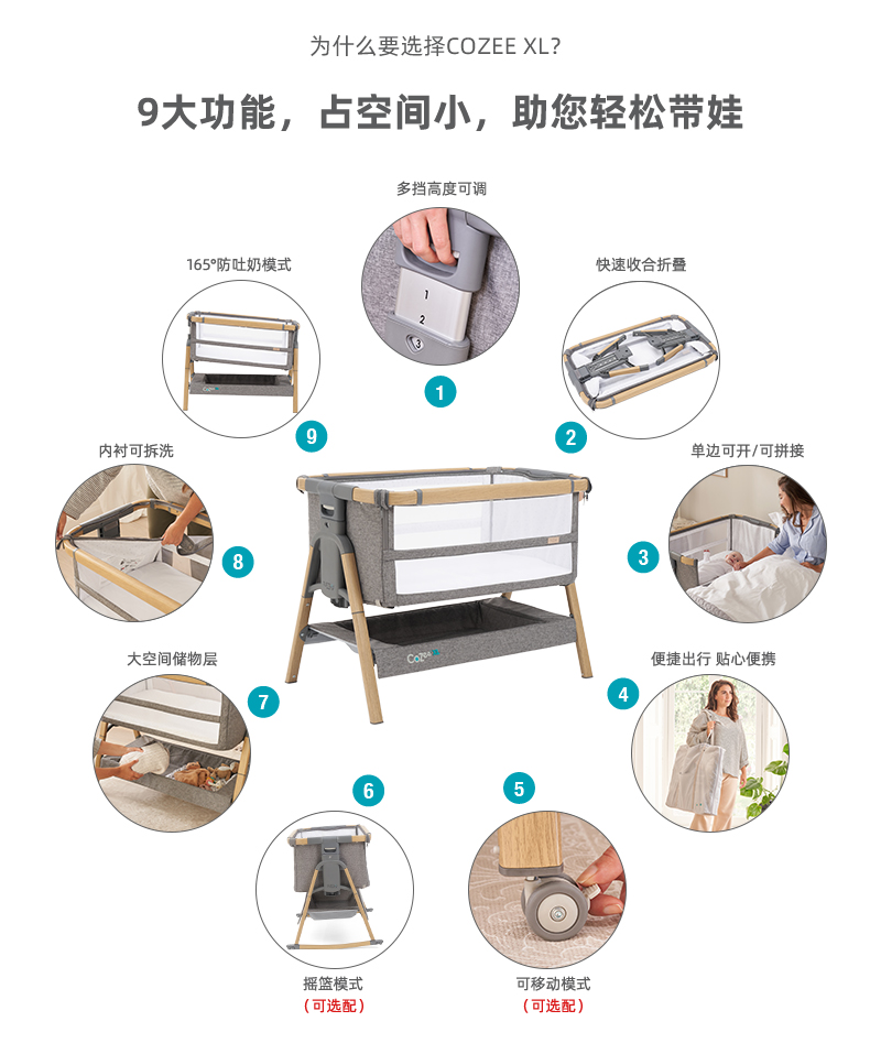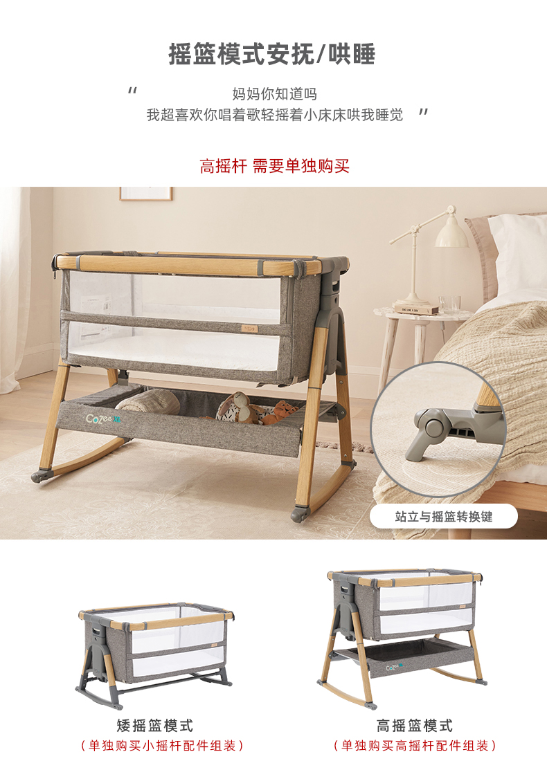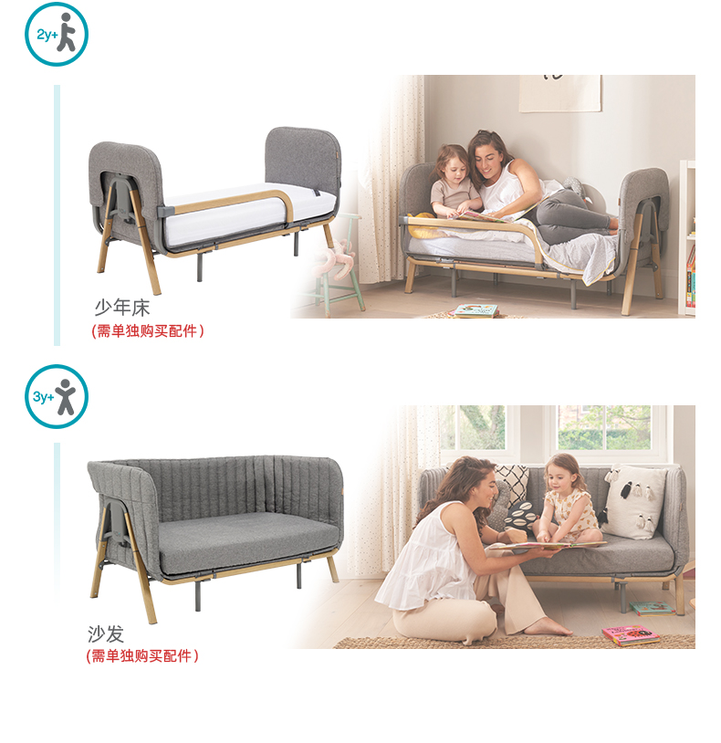 CoZee XL成长床 | 英国 Tutti Bambini 婴儿床胡桃木色/米白色 婴儿床+幼儿床组合 |婴儿床成长型多功能可折叠拼接大床可移动儿童床COZEE XL 0-2y