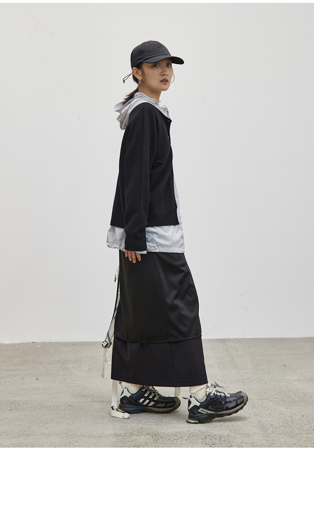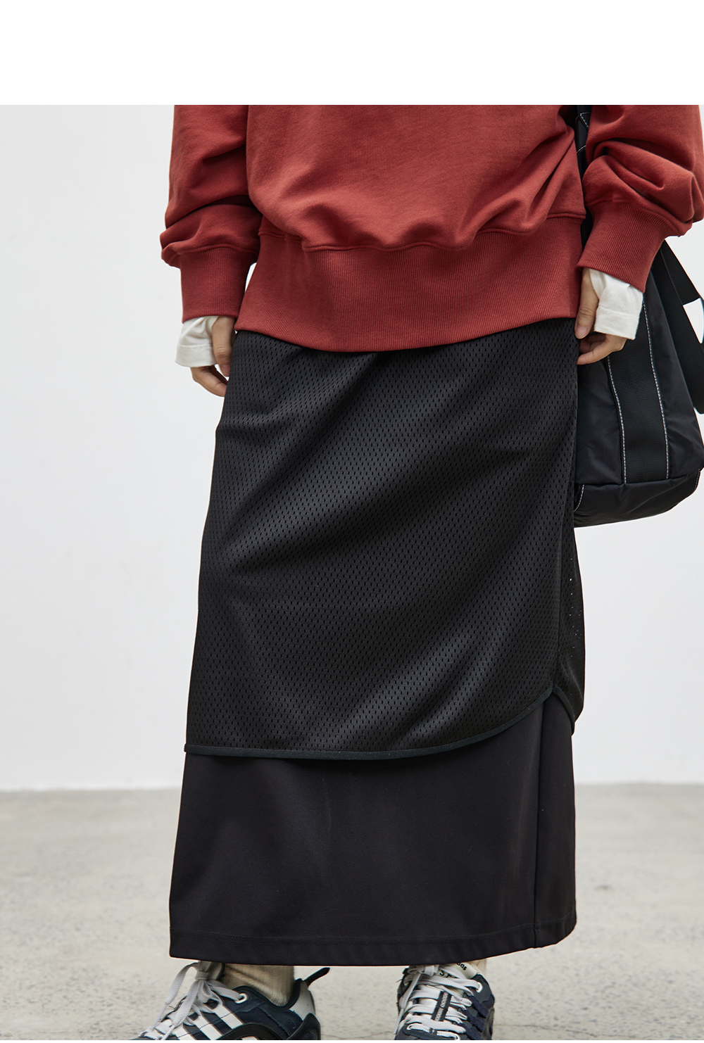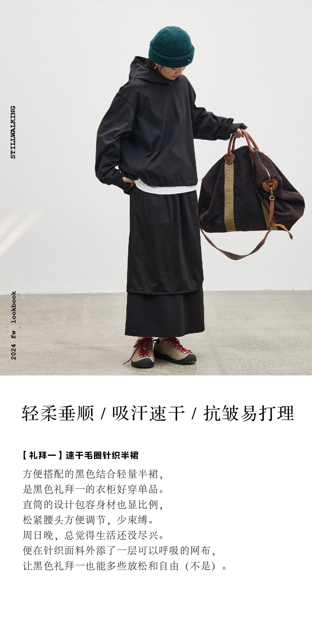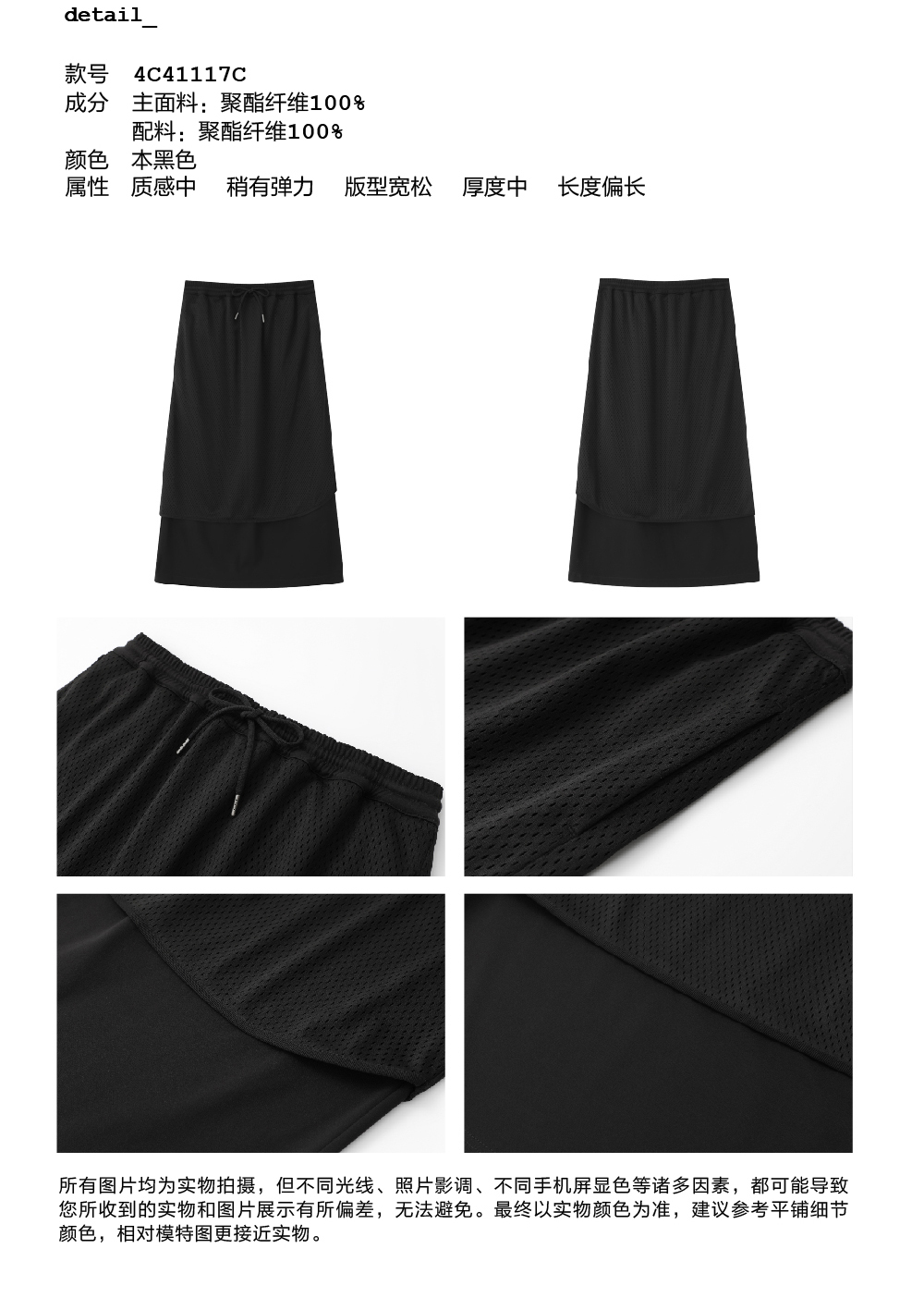 步履不停/4C41117C/速干毛圈针织直筒黑色半裙