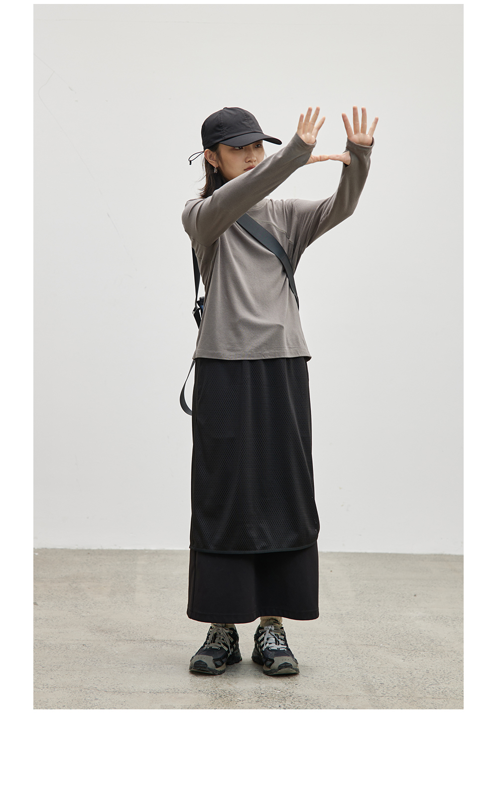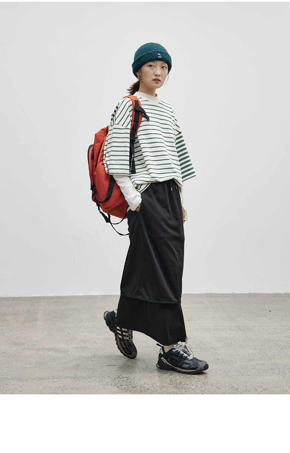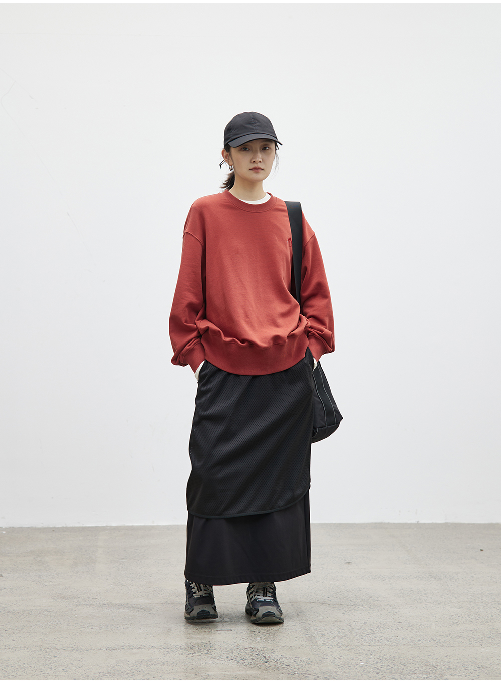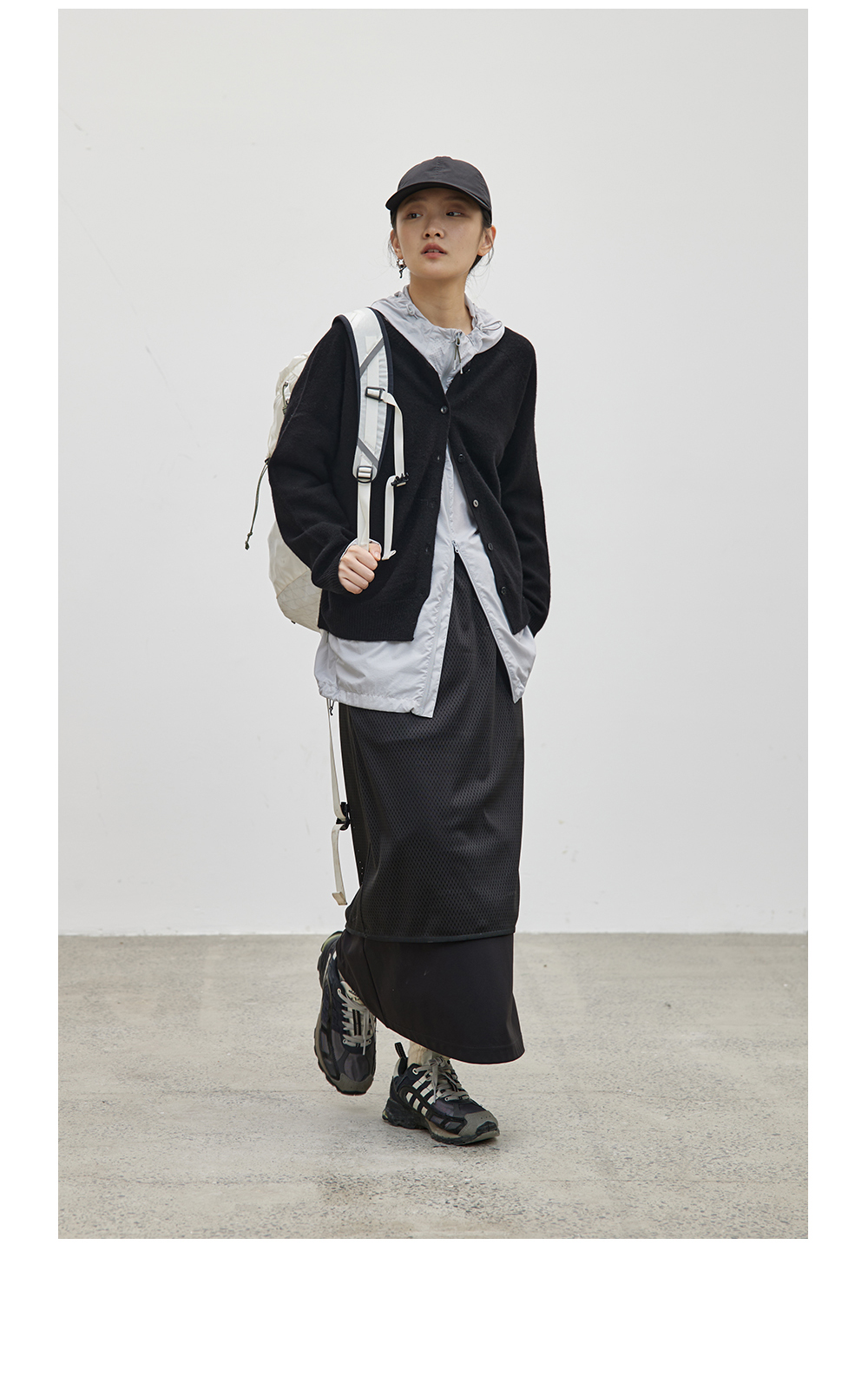 步履不停/4C41117C/速干毛圈针织直筒黑色半裙