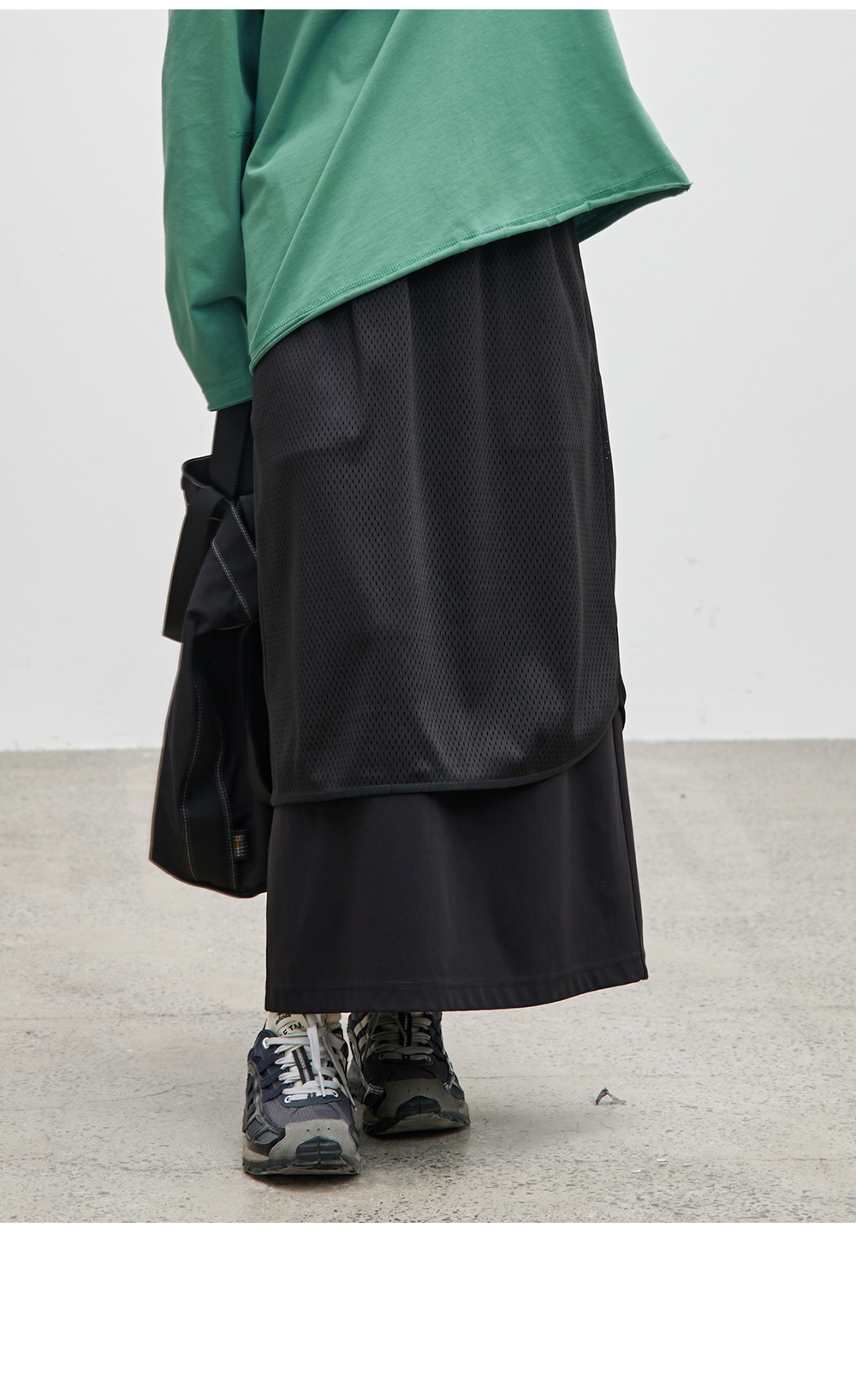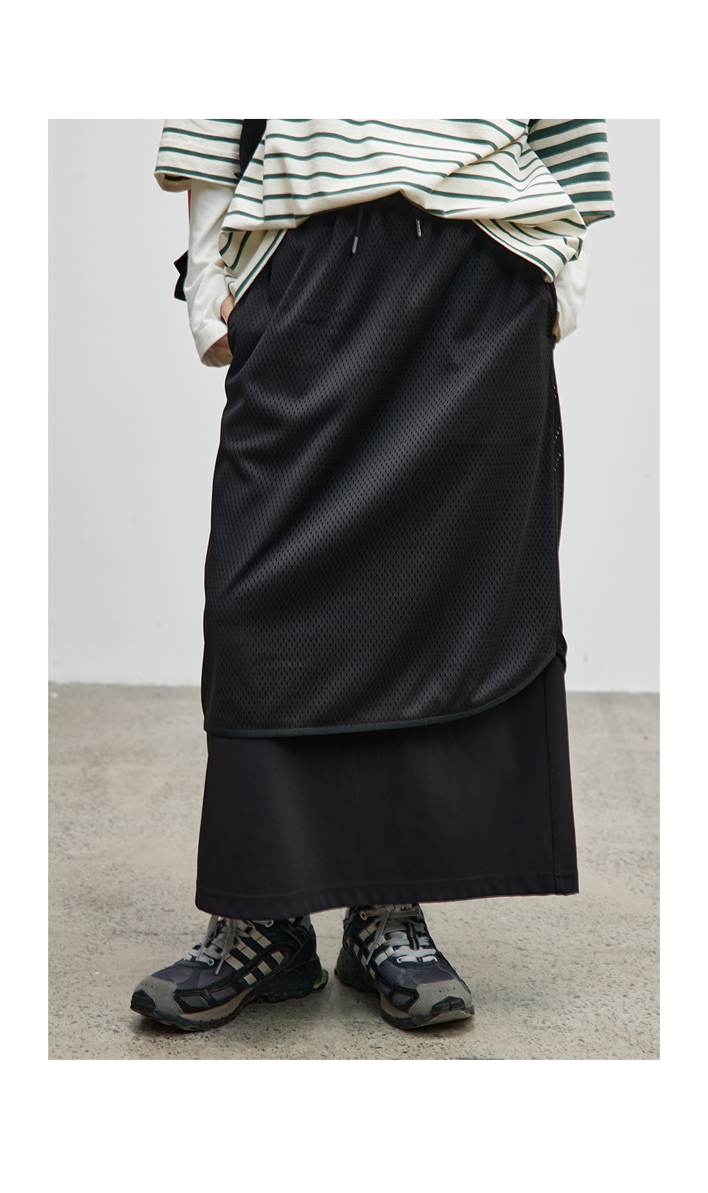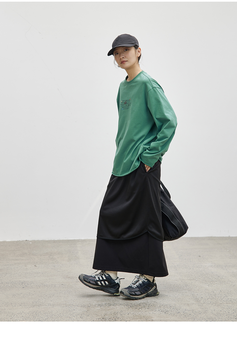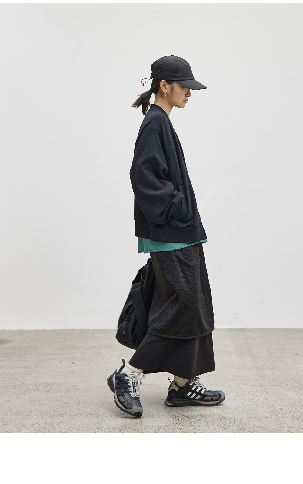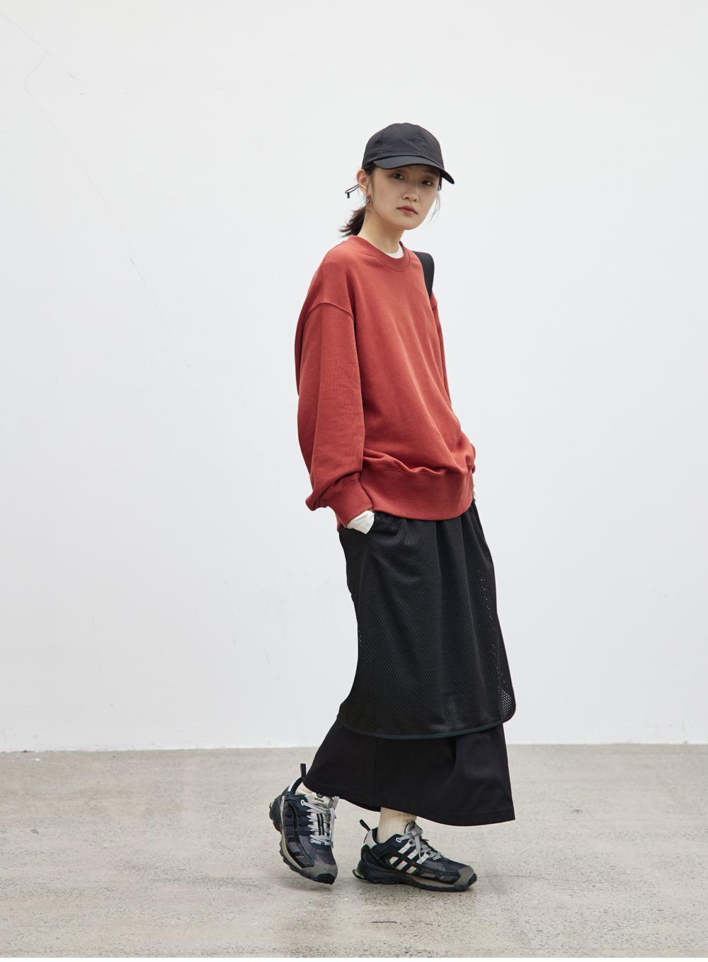 步履不停/4C41117C/速干毛圈针织直筒黑色半裙