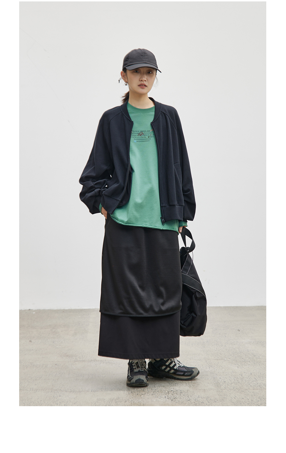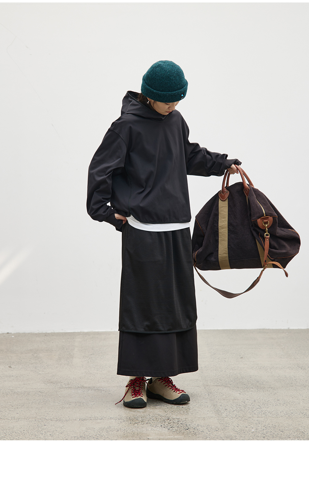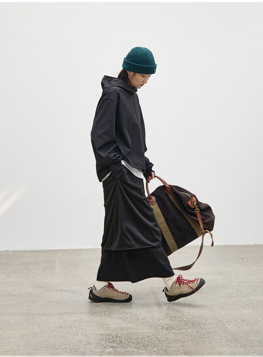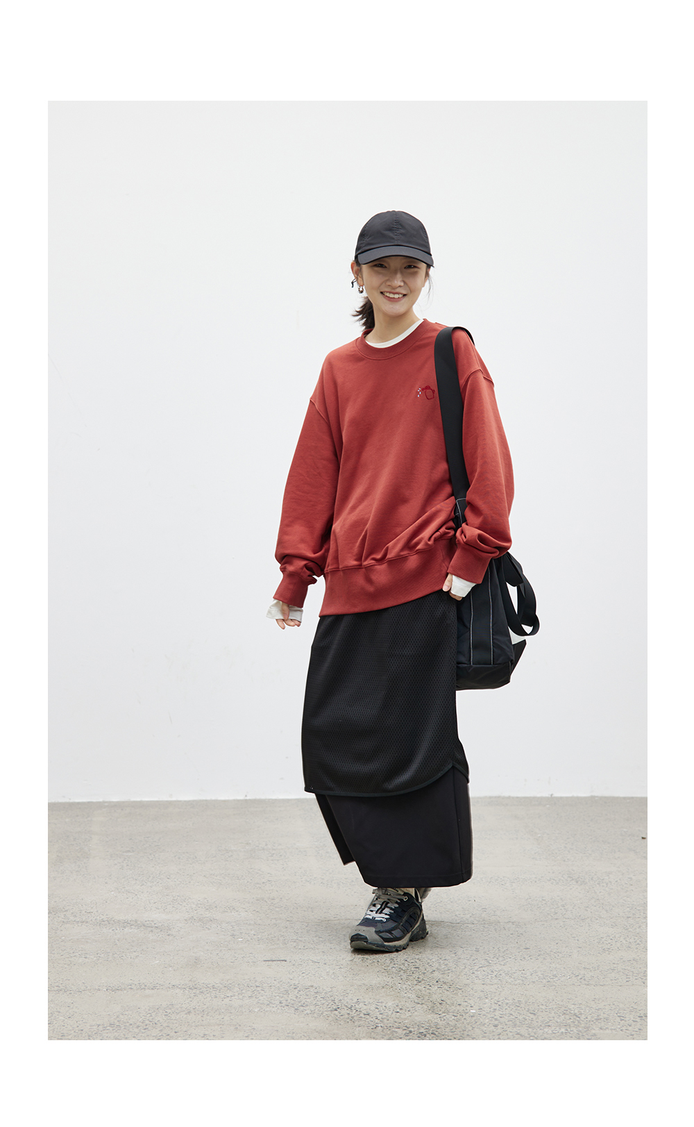 步履不停/4C41117C/速干毛圈针织直筒黑色半裙