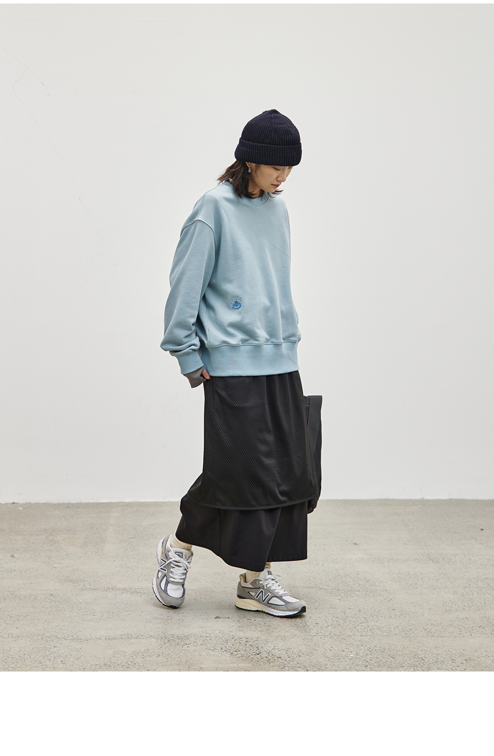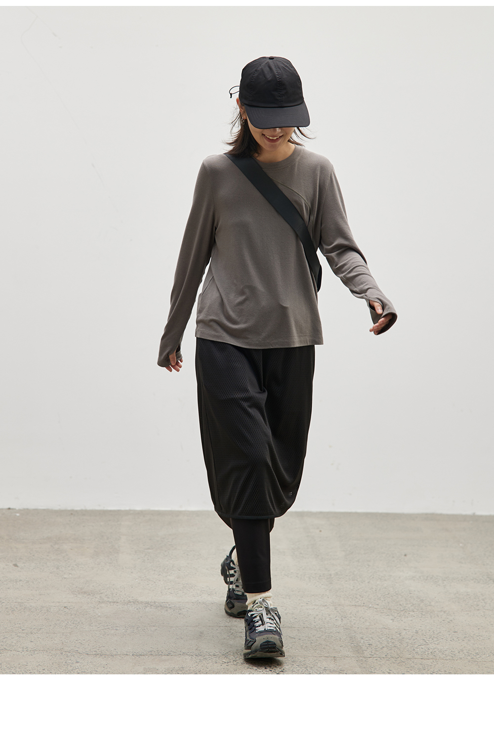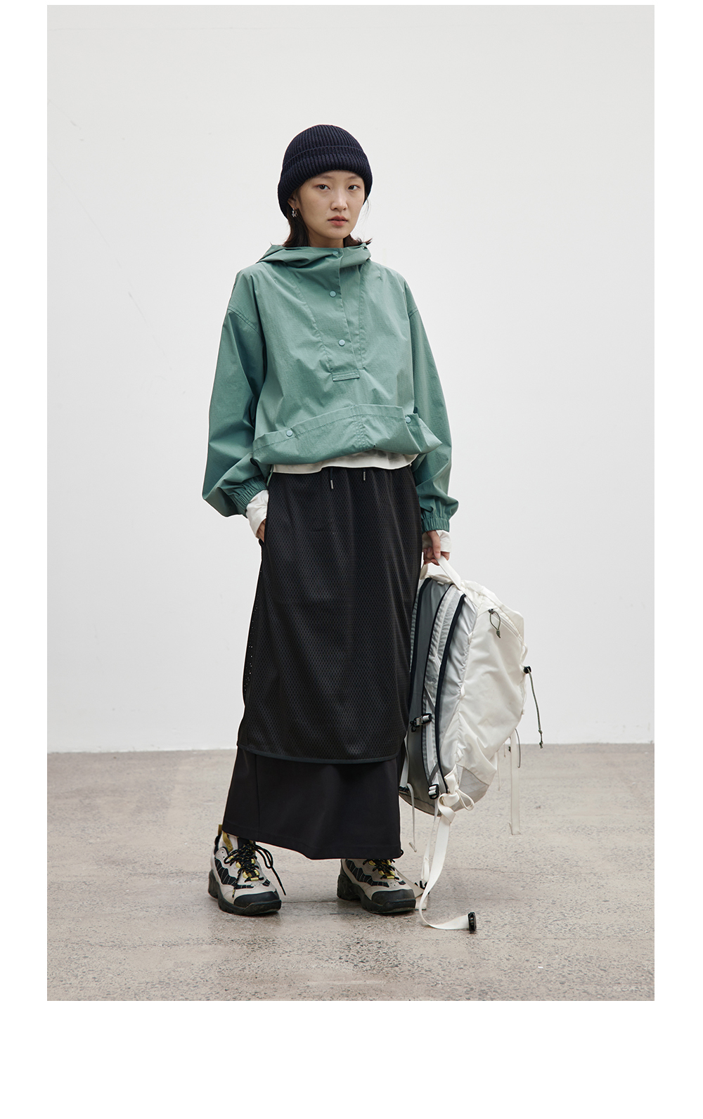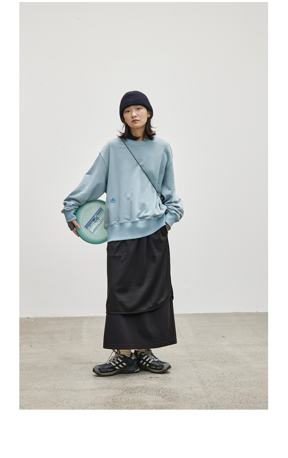 步履不停/4C41117C/速干毛圈针织直筒黑色半裙