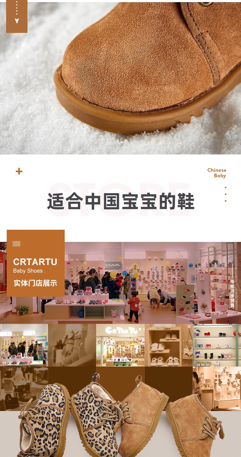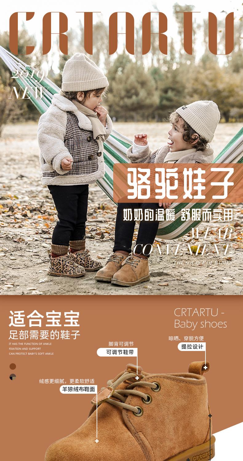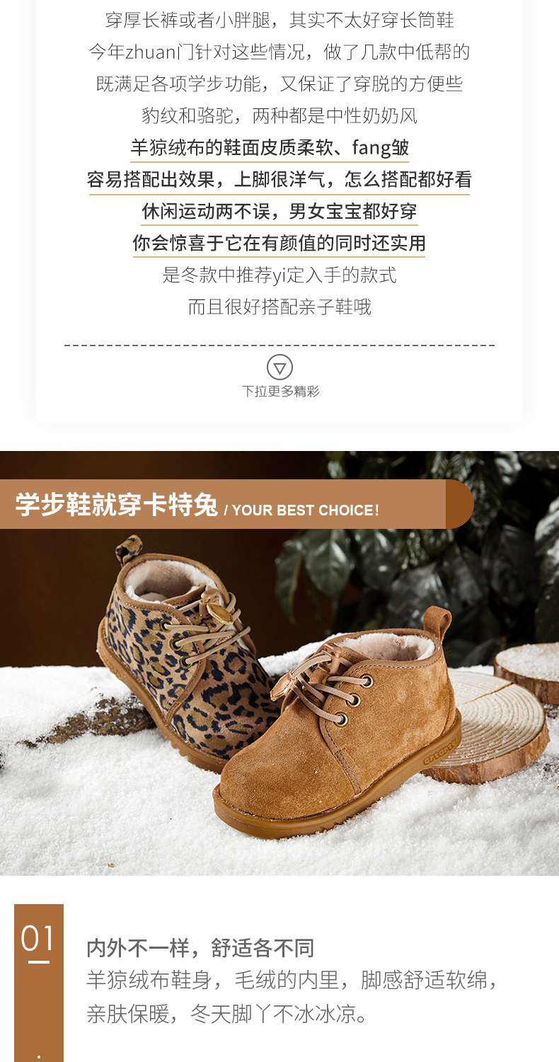 卡特兔秋冬款宝宝骆驼短靴 棕/豹纹 一段/二段