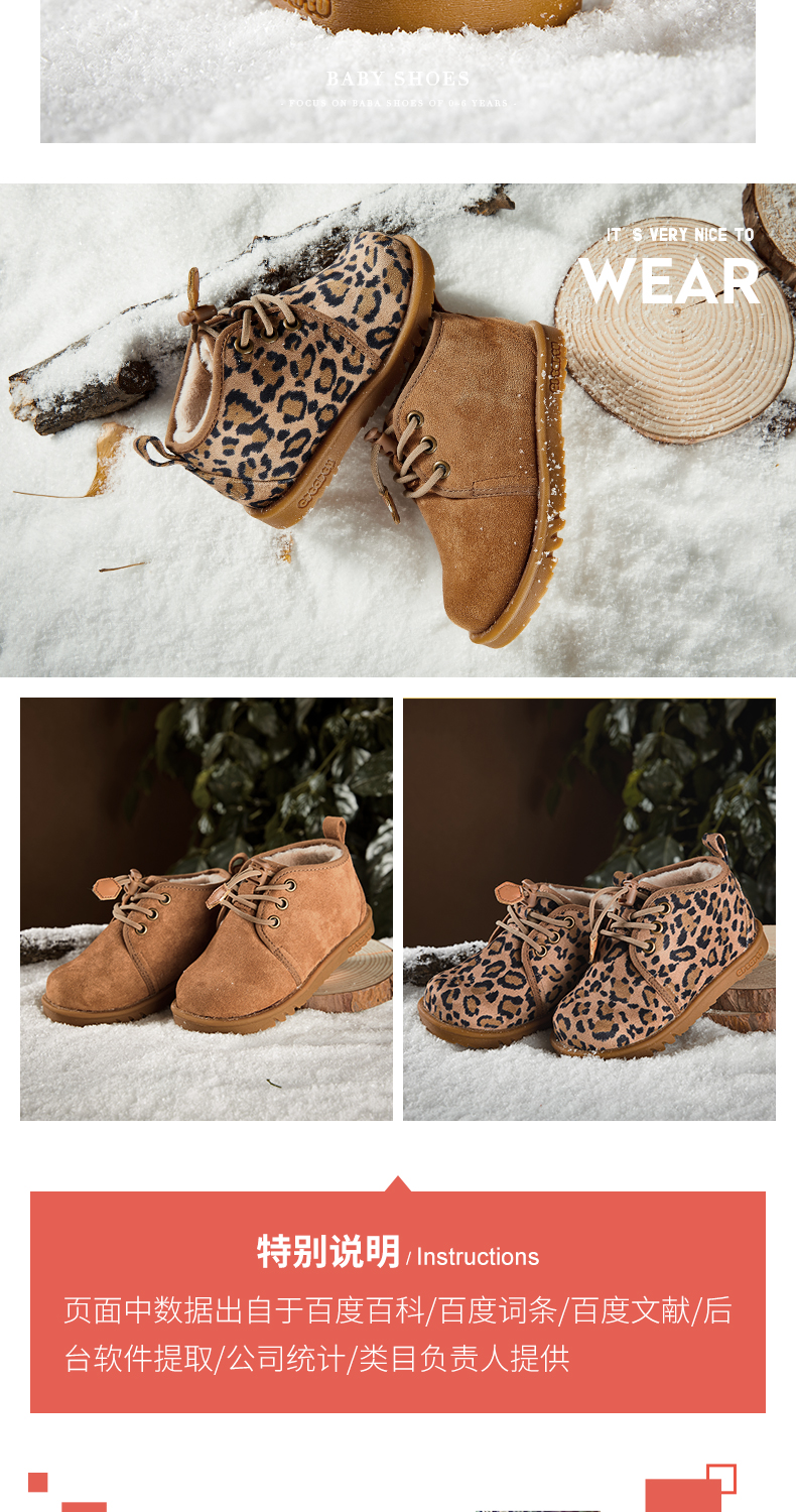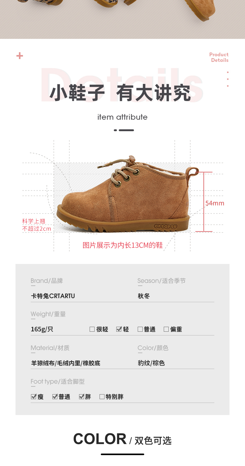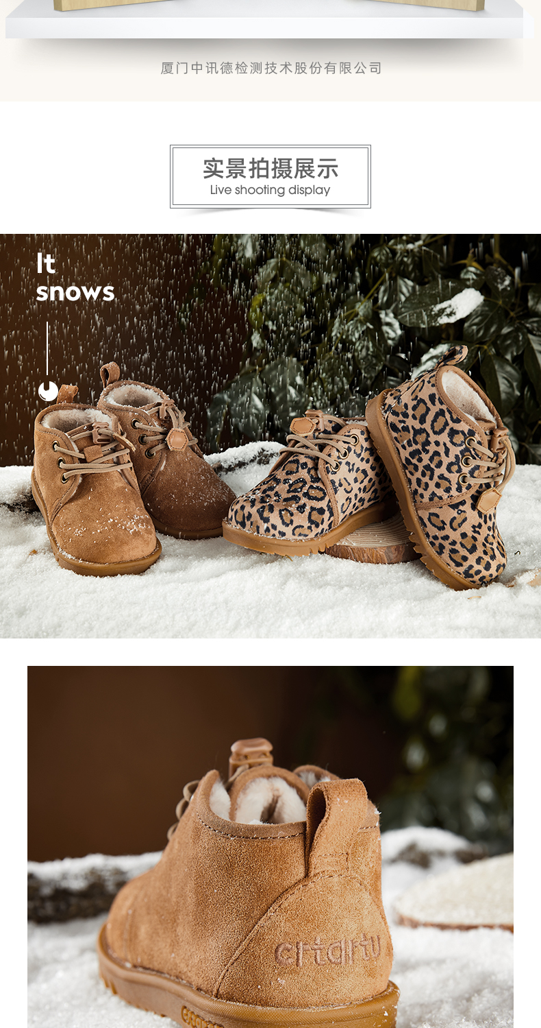 卡特兔秋冬款宝宝骆驼短靴 棕/豹纹 一段/二段