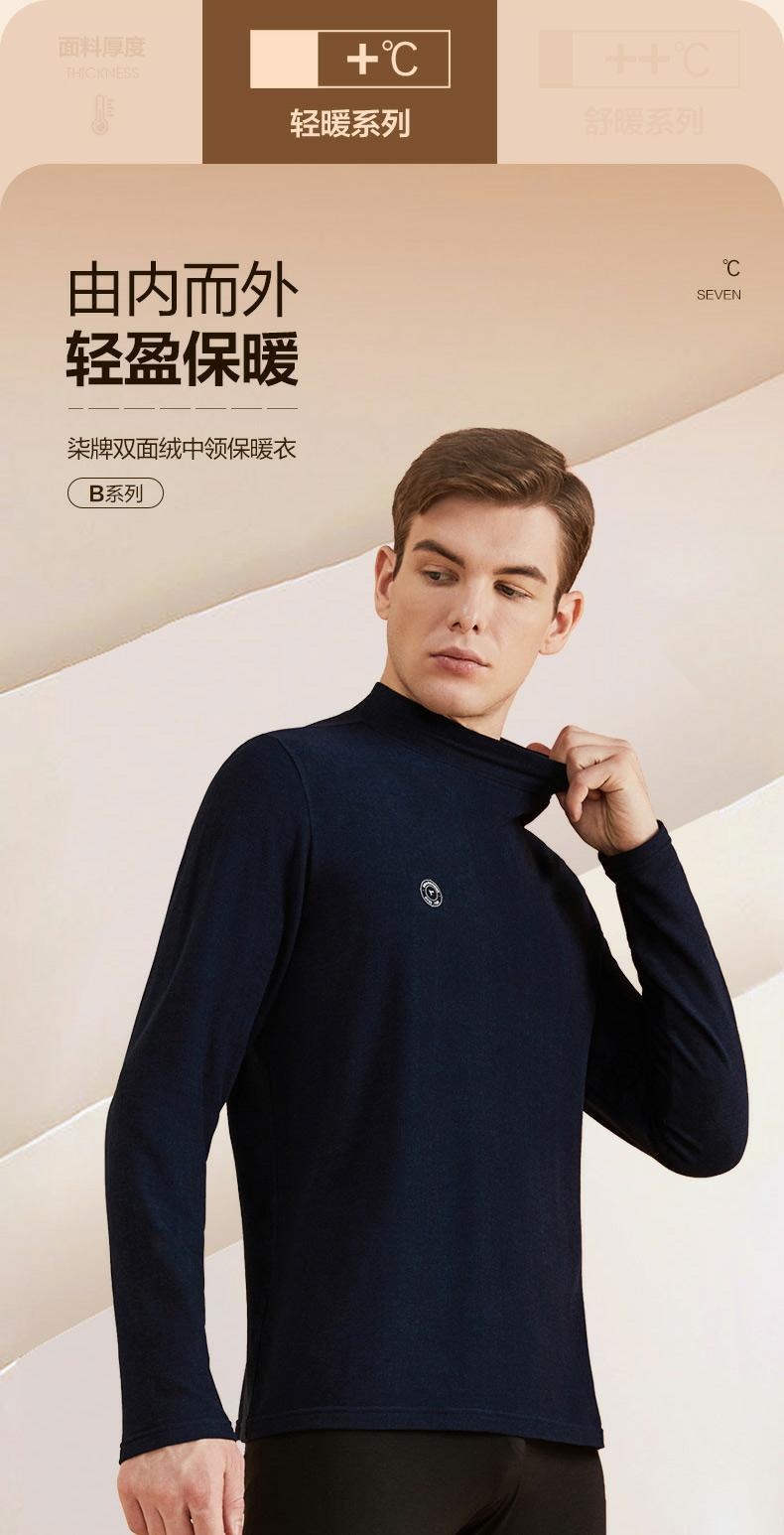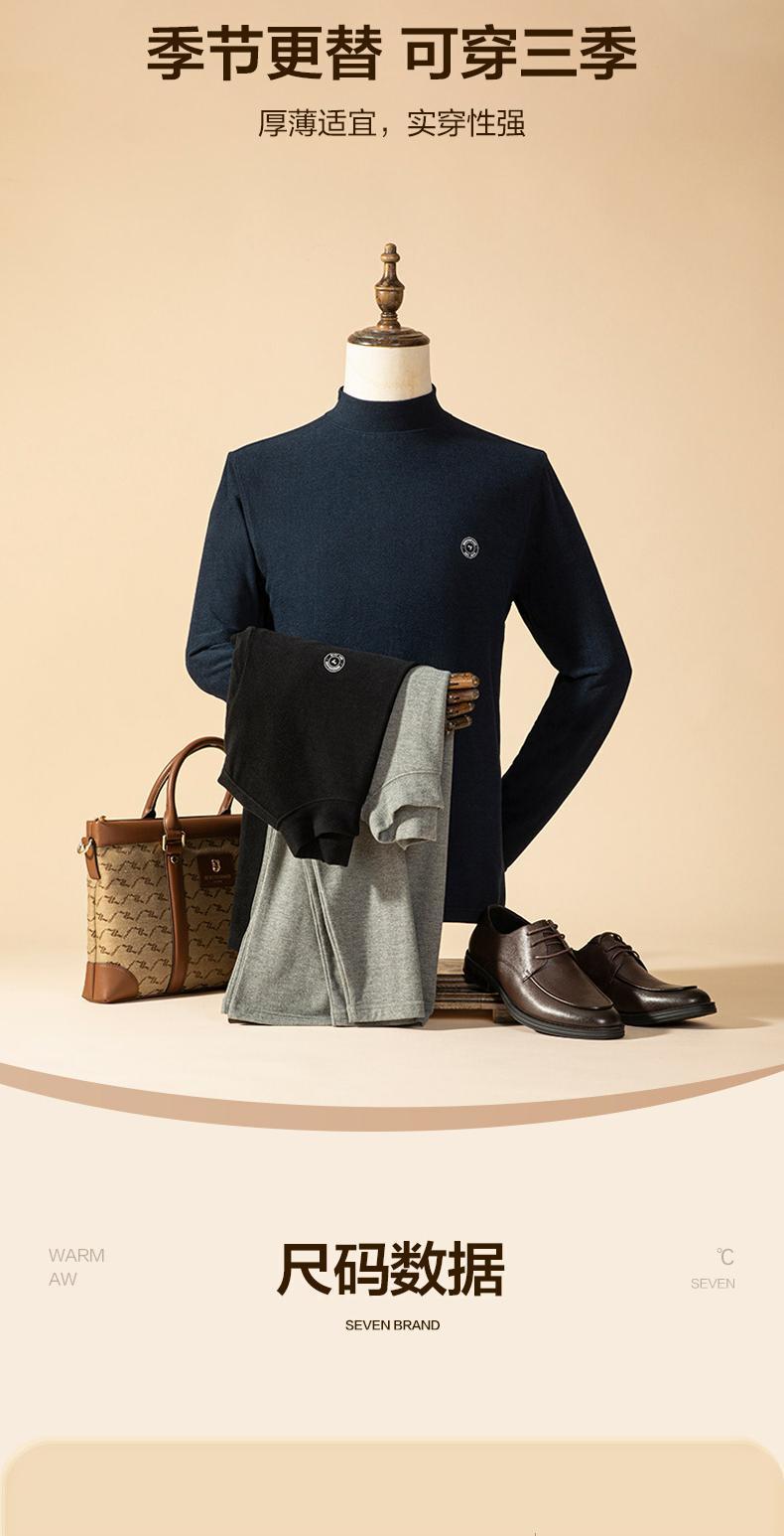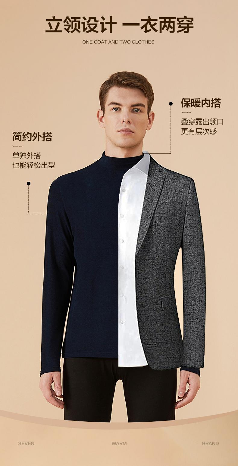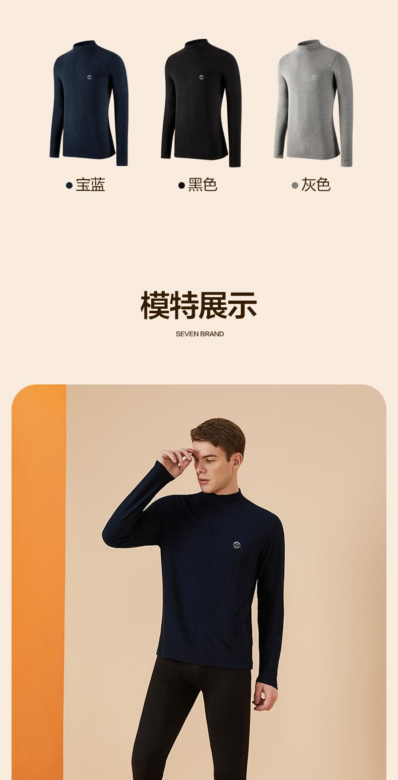 【特价】柒牌男士半高领保暖内衣秋冬季厚款青年男式双面磨毛打底上衣123F70560 123F70560