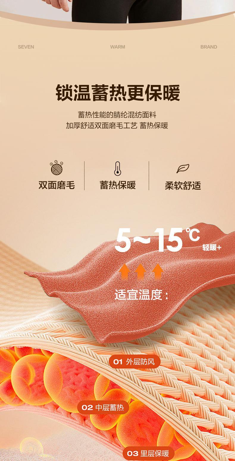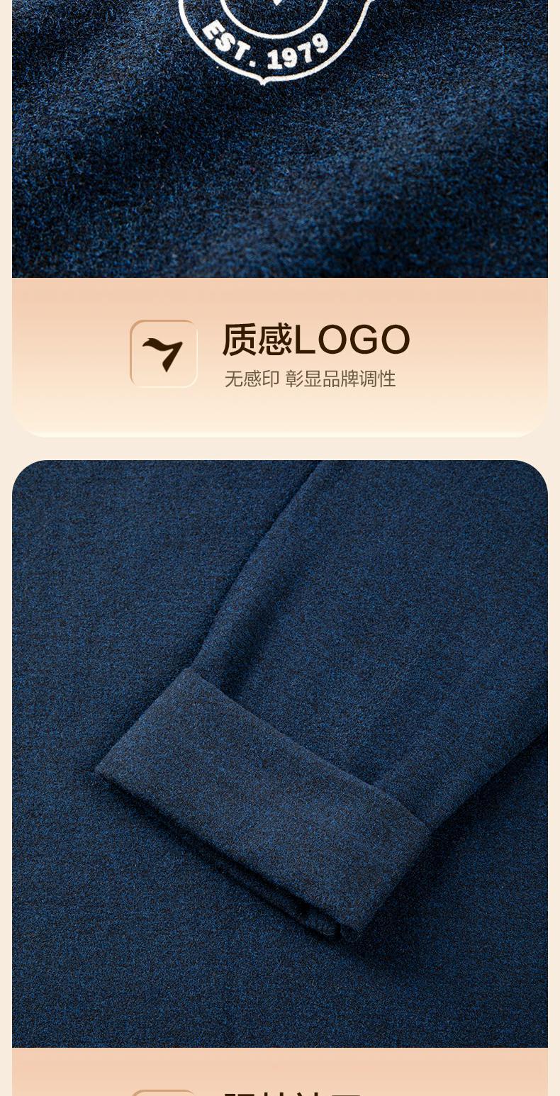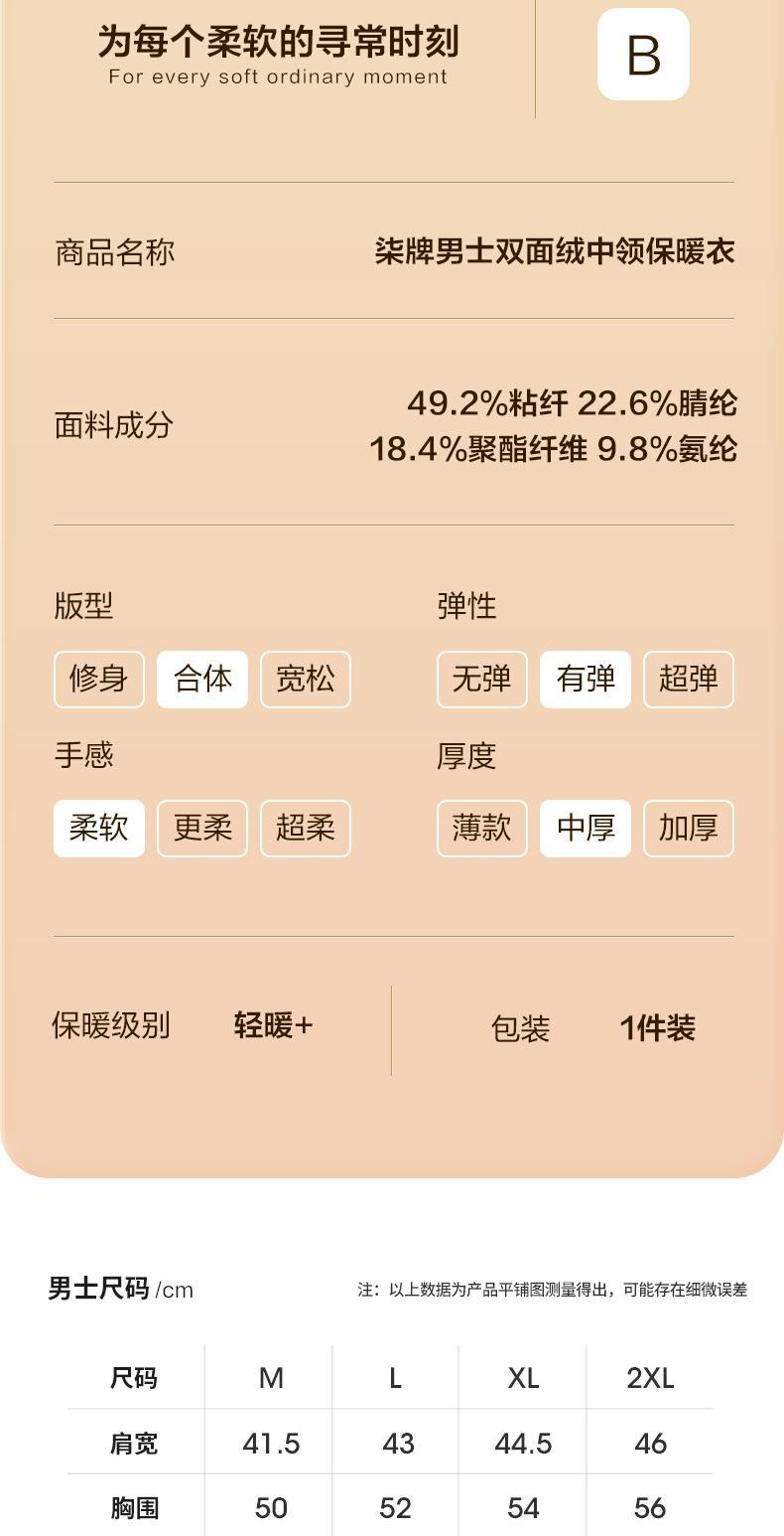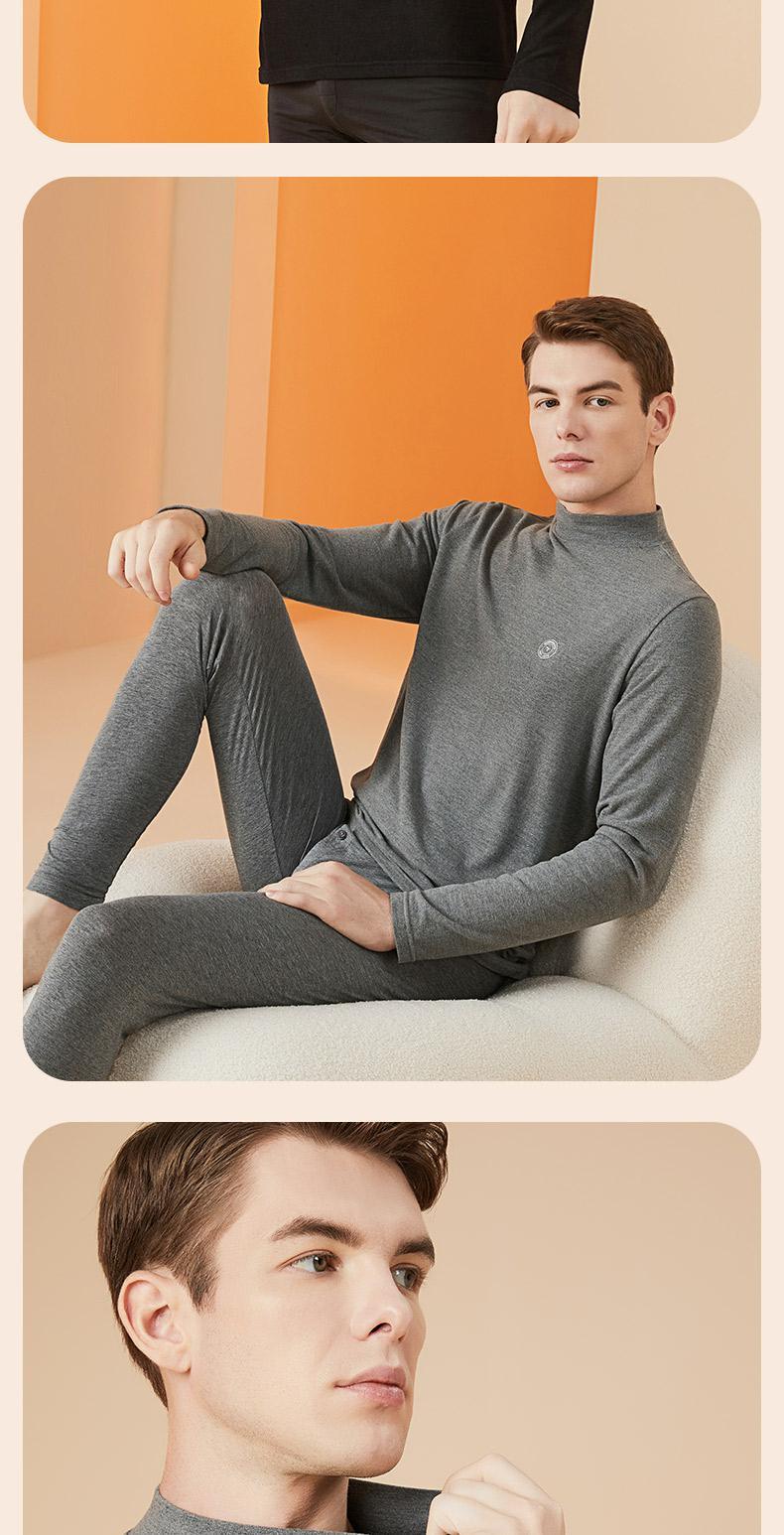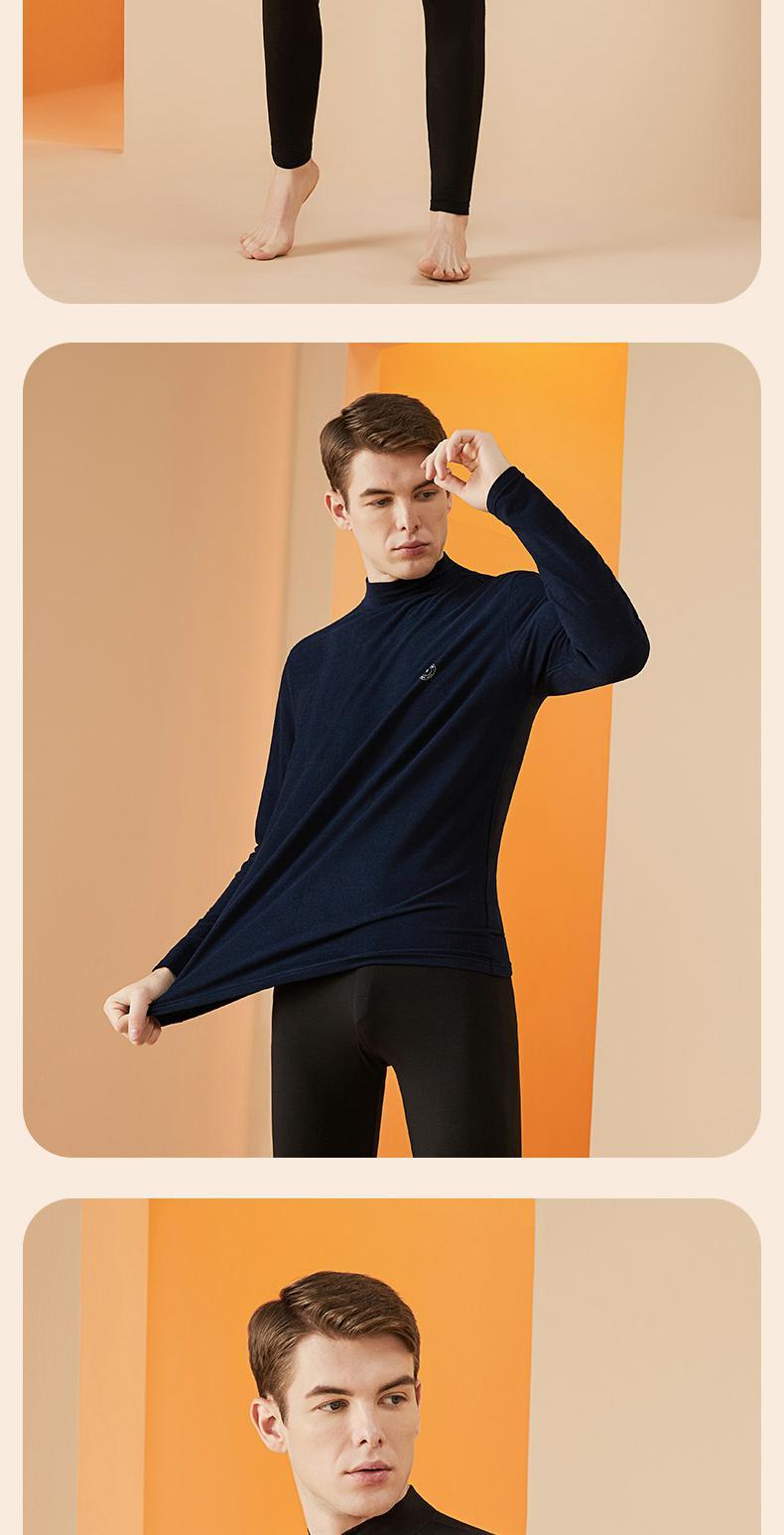 【特价】柒牌男士半高领保暖内衣秋冬季厚款青年男式双面磨毛打底上衣123F70560 123F70560