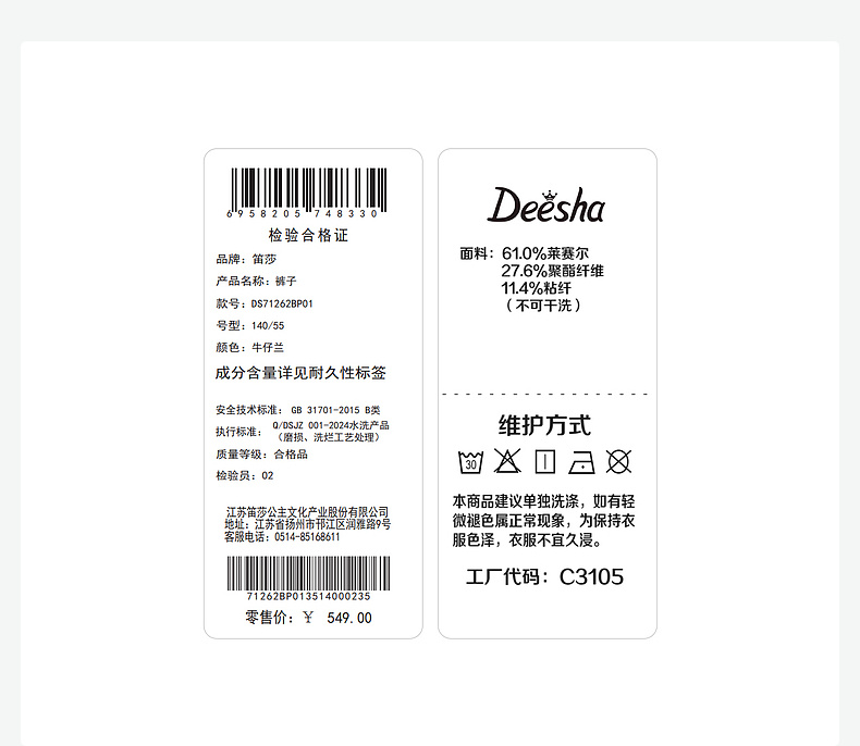 笛莎/Deesha 2026年夏季新款中童裤子牛仔喇叭裤