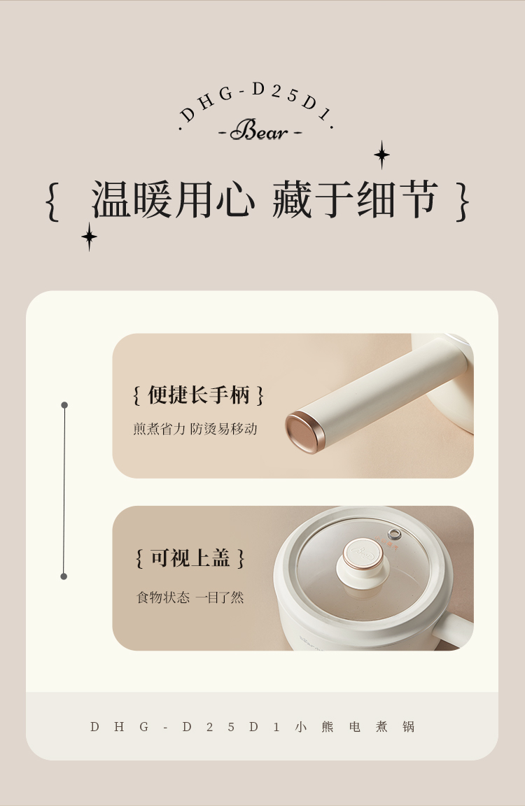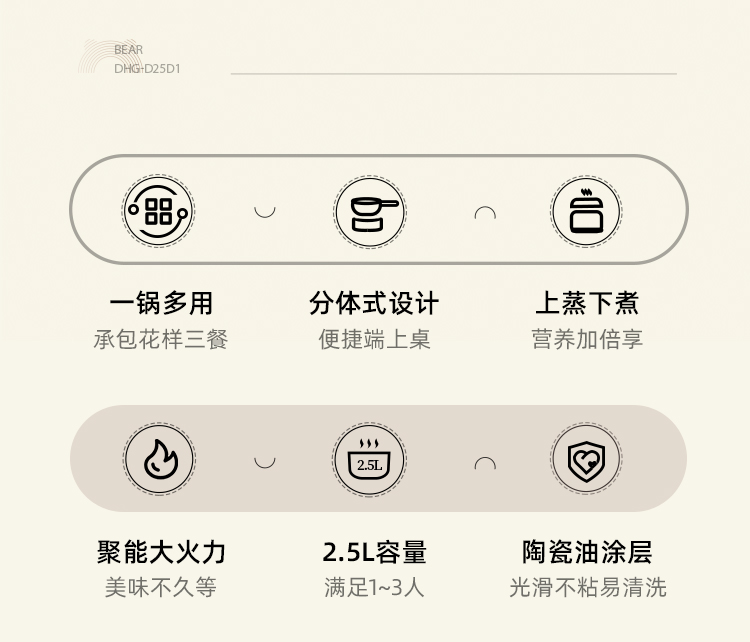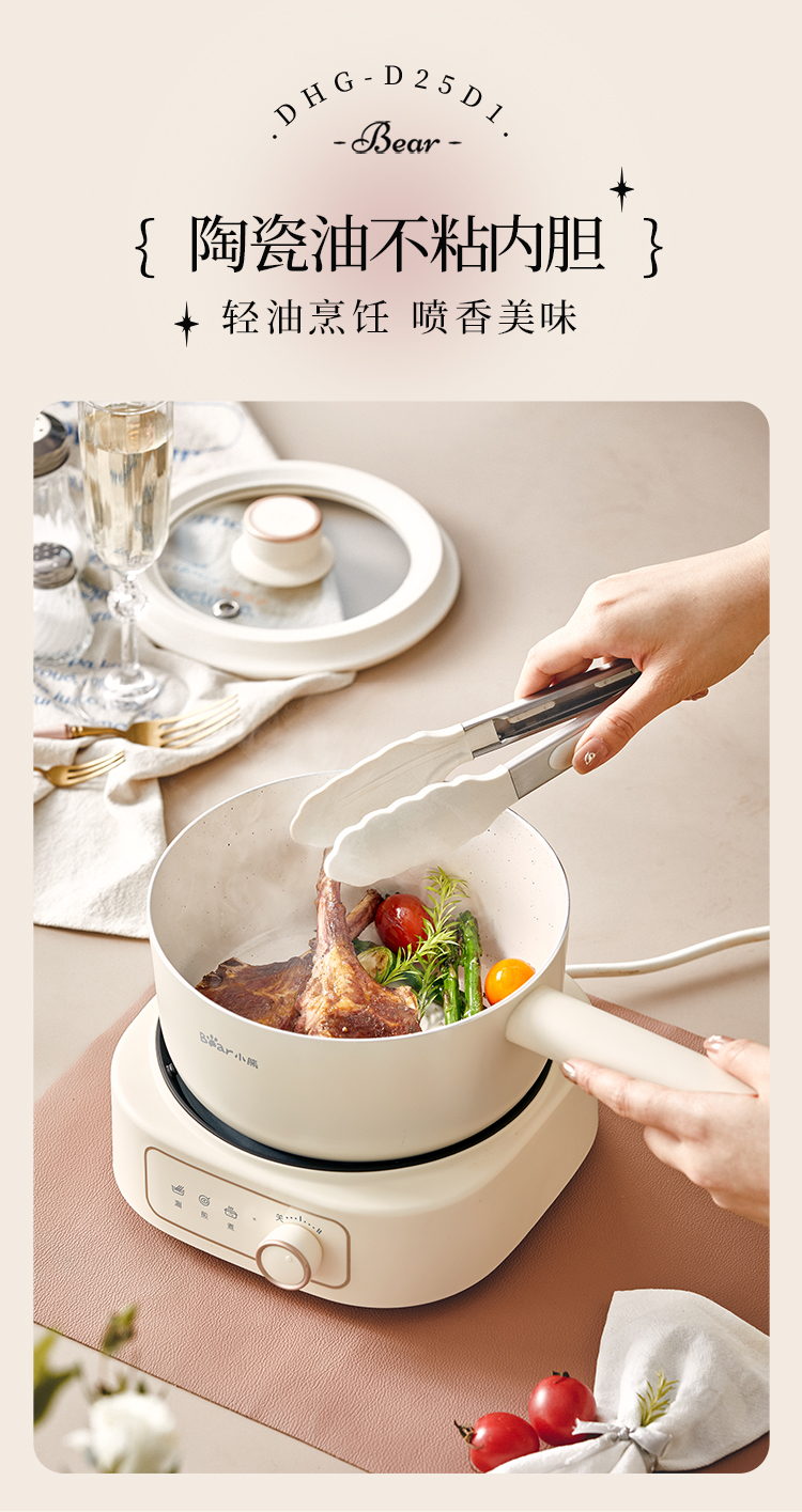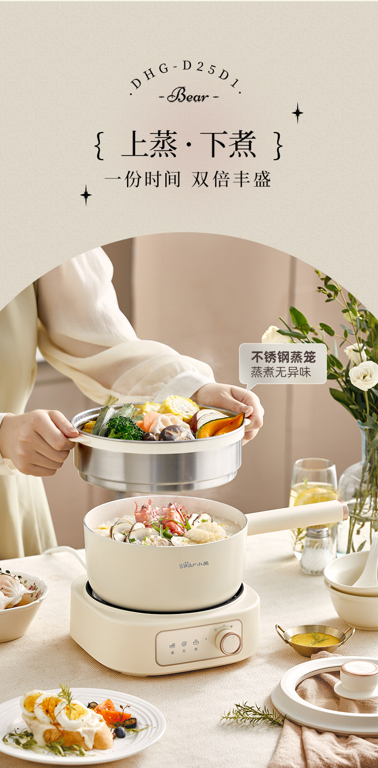 【小程序】小熊电煮锅多功能锅 学生宿舍电火锅蒸煮煎炒锅泡面锅 配蒸笼 430蒸笼 米黄色 DHG-D25D1