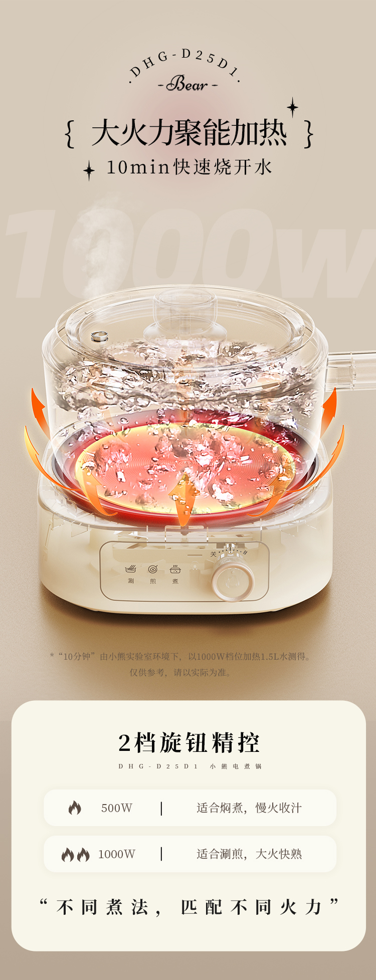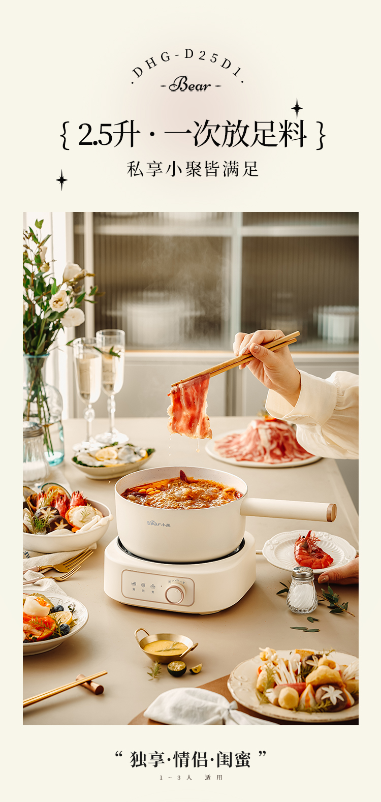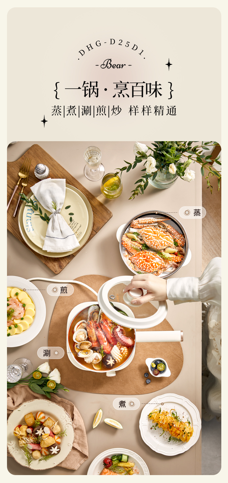 【小程序】小熊电煮锅多功能锅 学生宿舍电火锅蒸煮煎炒锅泡面锅 配蒸笼 430蒸笼 米黄色 DHG-D25D1