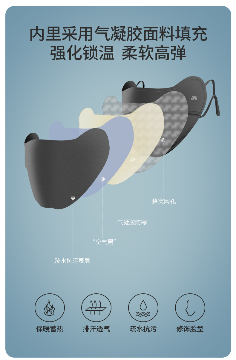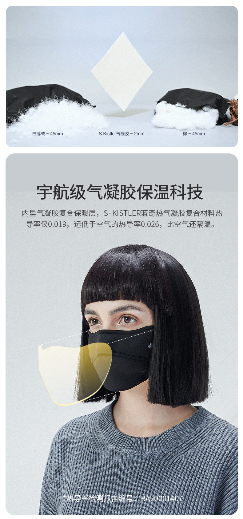 Supield素湃气凝胶防寒口罩加绒加厚冬季立体保暖可水洗防尘面罩