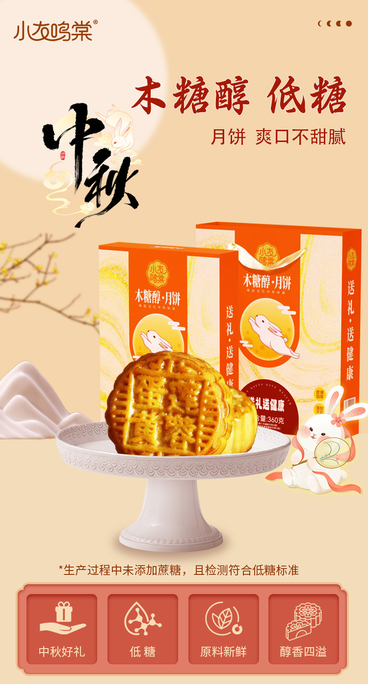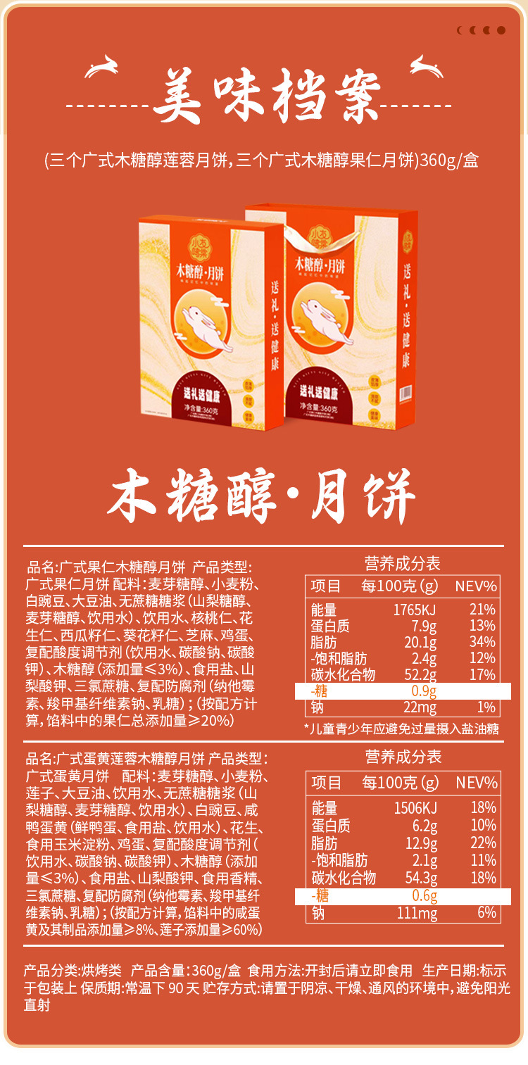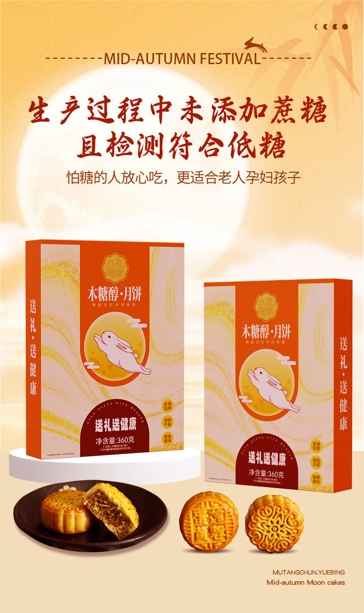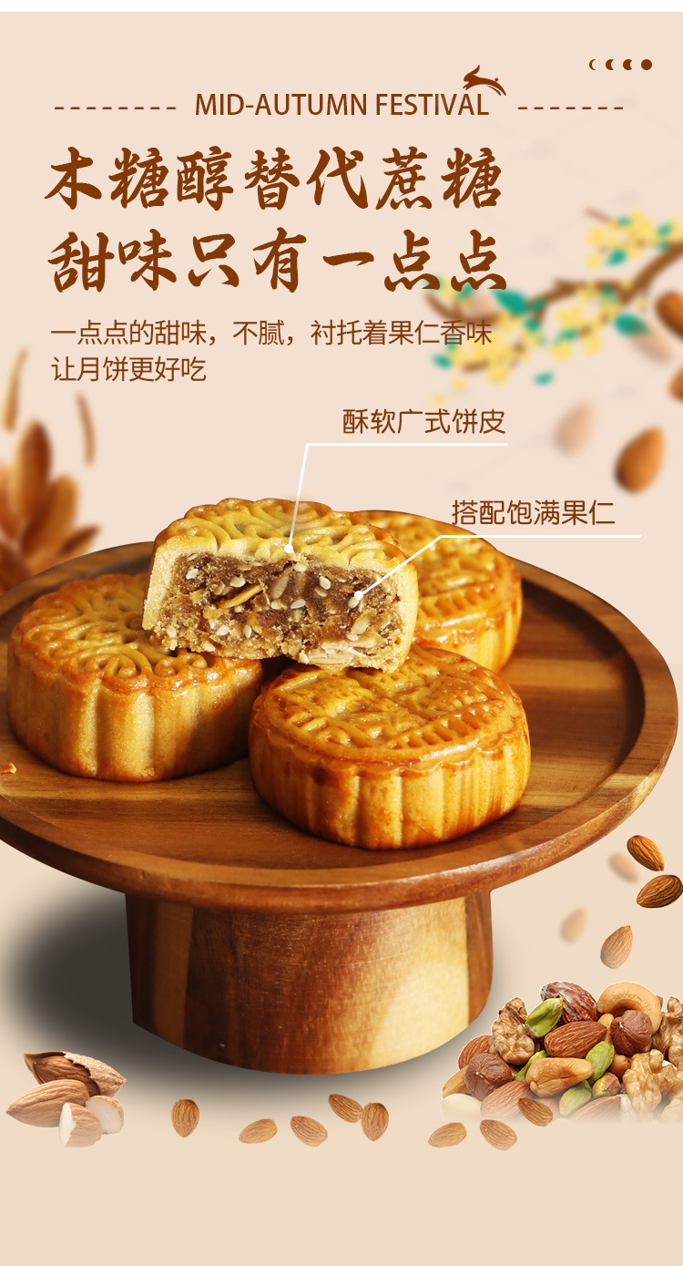 【木糖醇月饼礼盒】送礼中秋广式月饼 手提袋低糖蛋黄莲蓉果仁无添加蔗糖