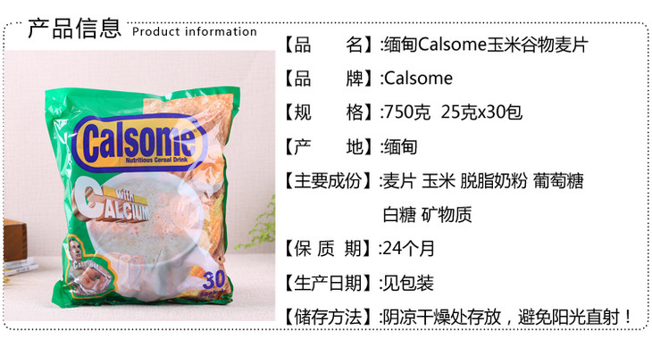 缅甸Calsome玉米绿麦片750g