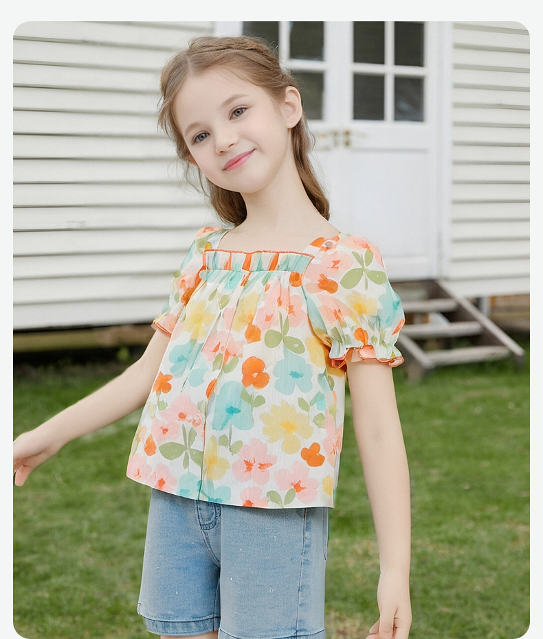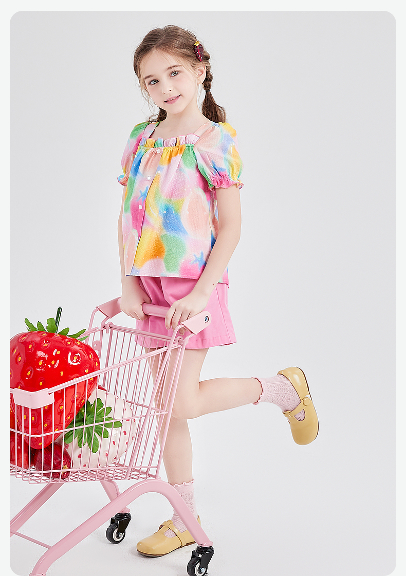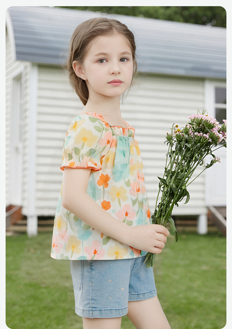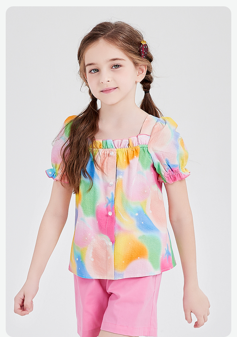 笛莎Deesha 童装女童衬衫2024春季新款短袖衬衫