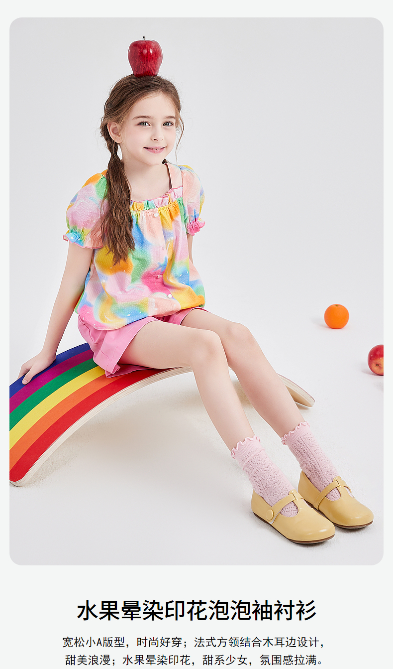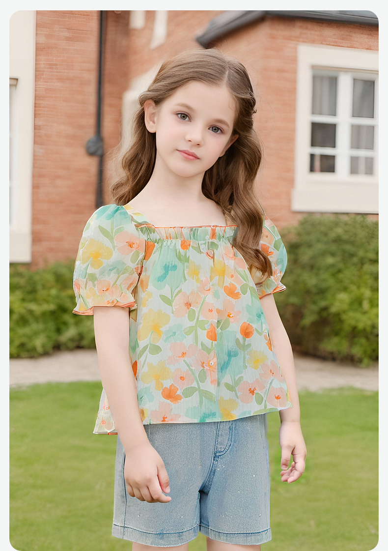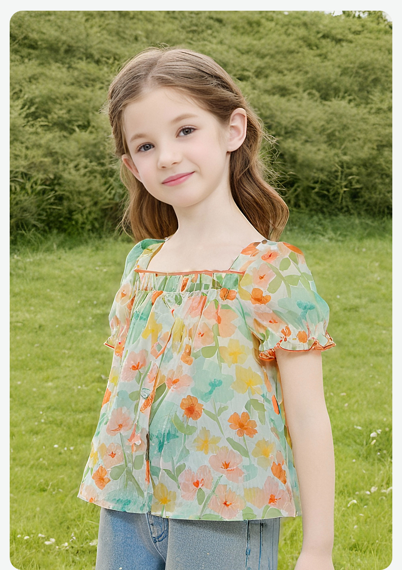 笛莎Deesha 童装女童衬衫2024春季新款短袖衬衫
