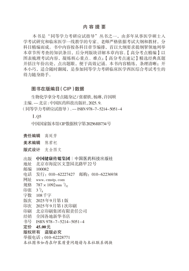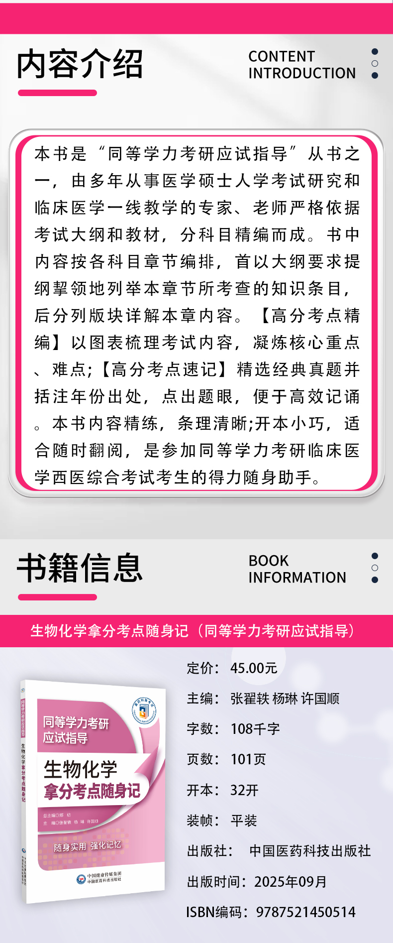 生物化学拿分考点随身记 同等学力考研考试应试指导 张翟轶 杨琳 许国顺 高频考点速记在职申硕西综考研辅导书 中国医药科技出版社