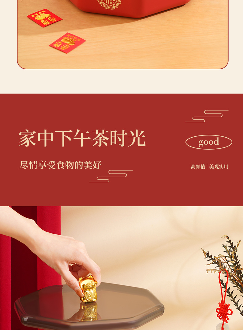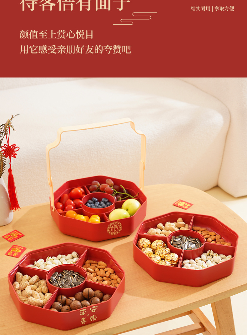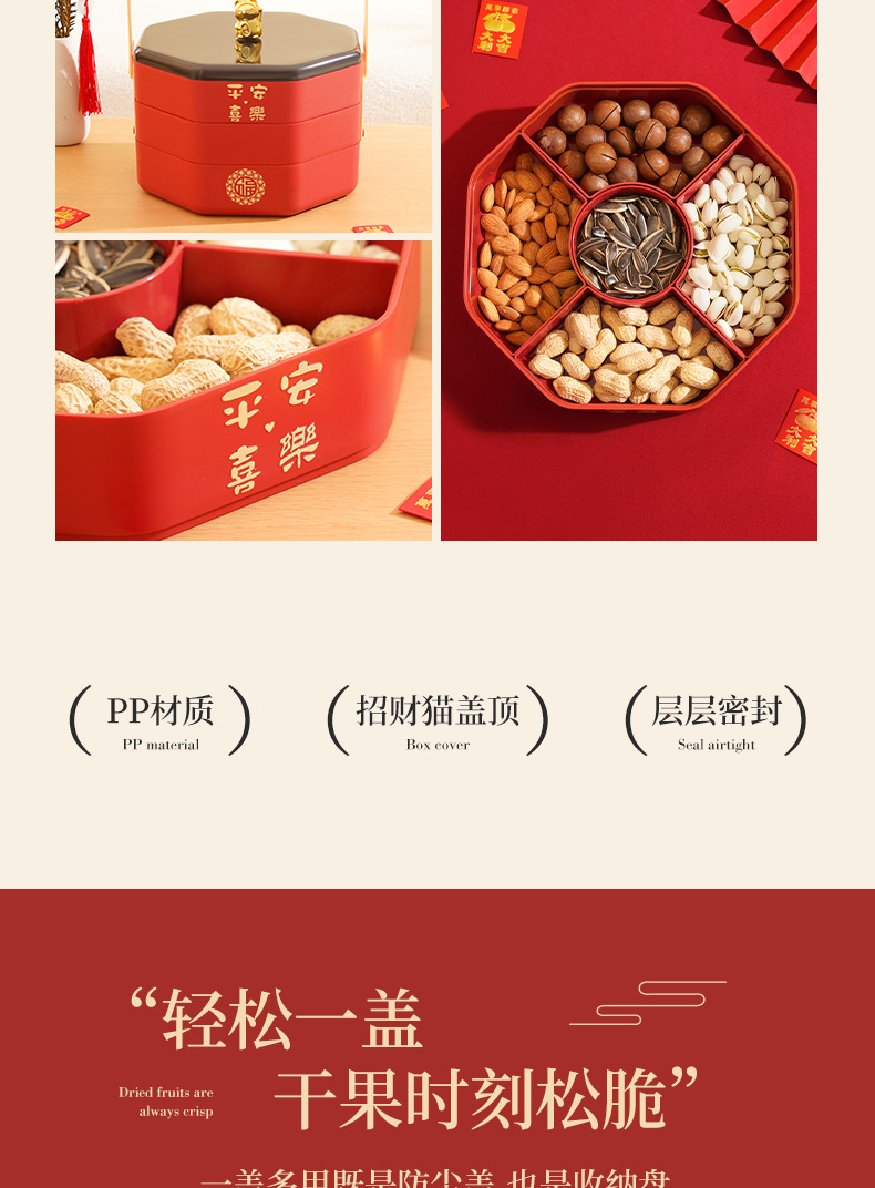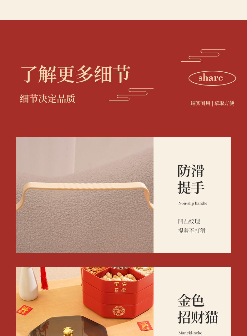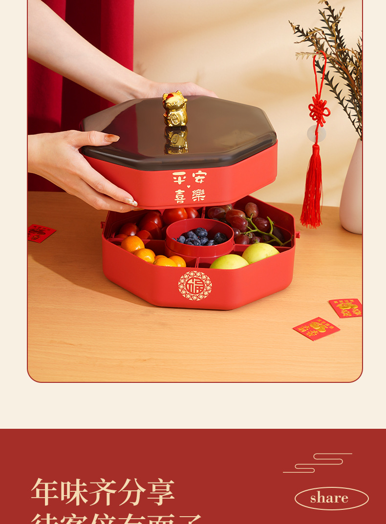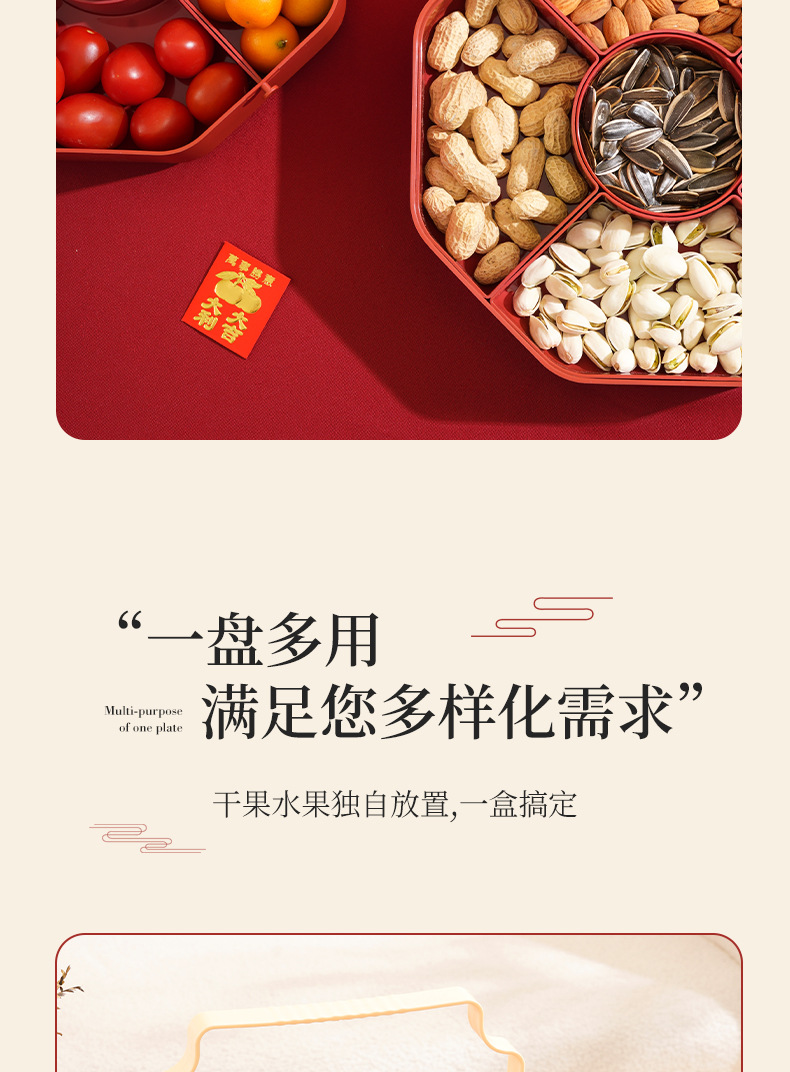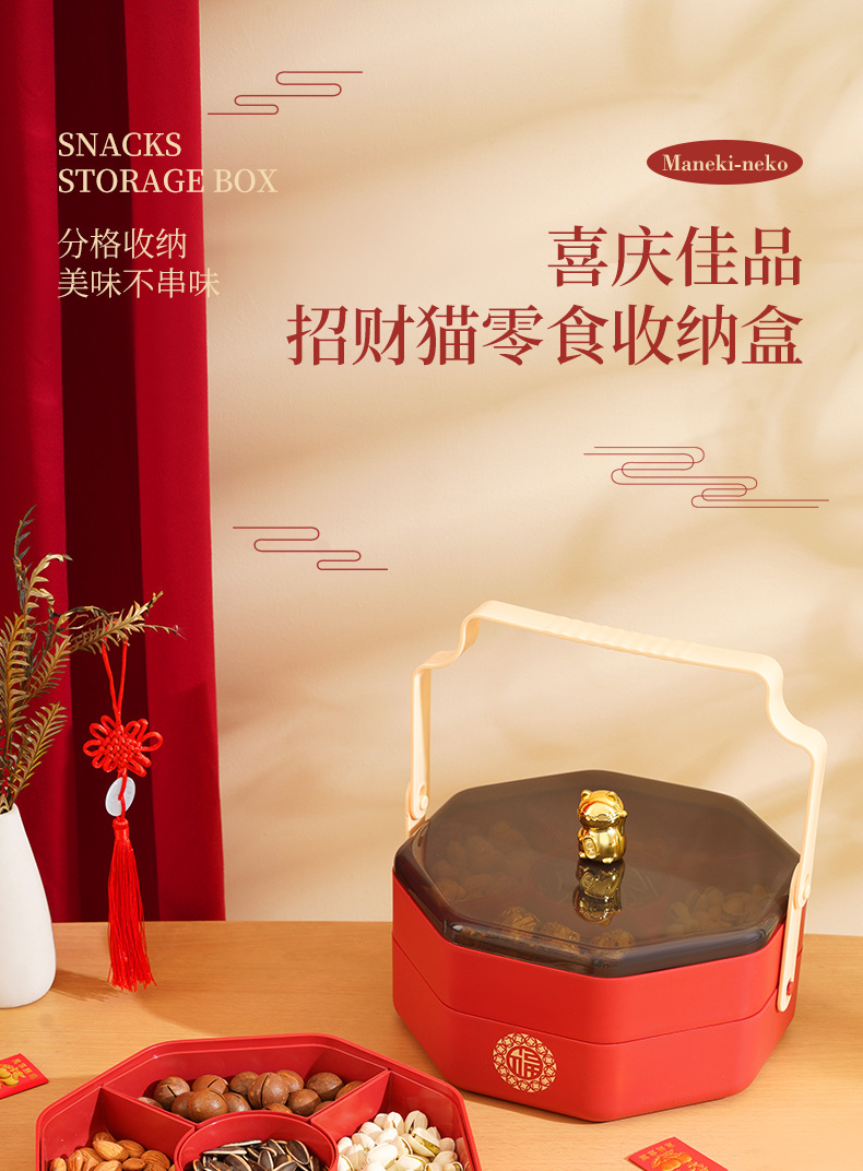 【喜庆佳品!招财猫零食收纳盒】新年糖果盘家用客厅茶几水果盘干果坚果盘乔迁之喜新款新中式,一盘多用,满足您多样化需求。ry