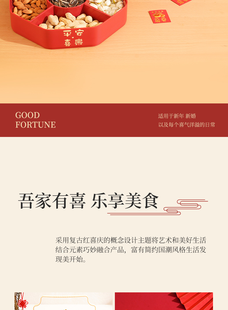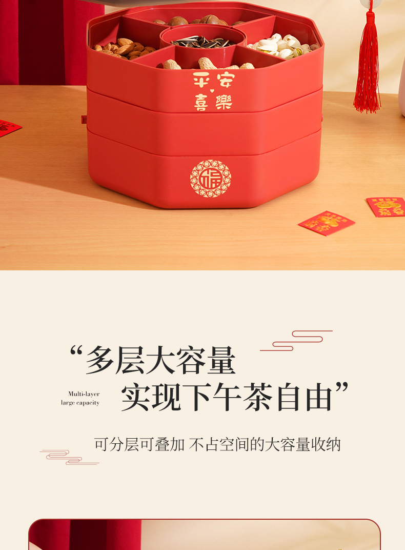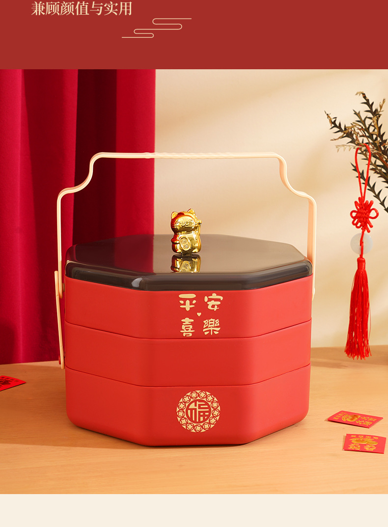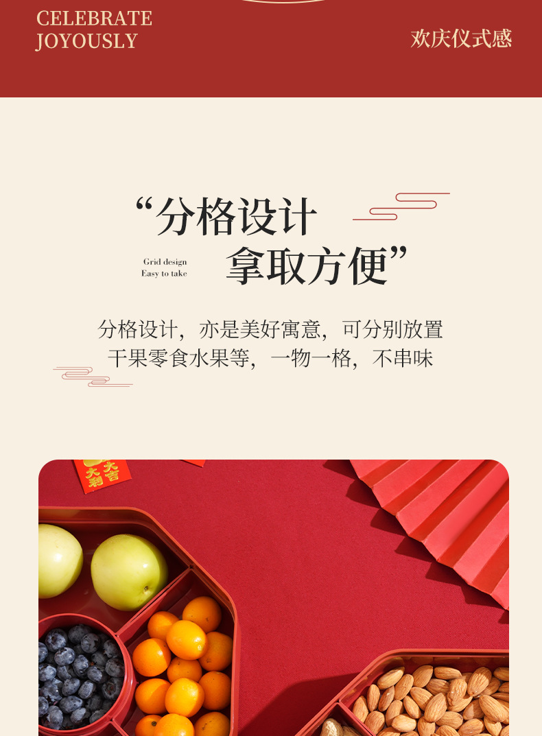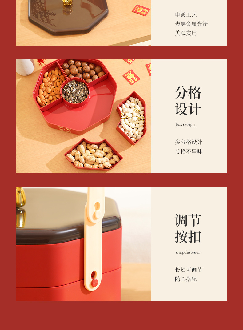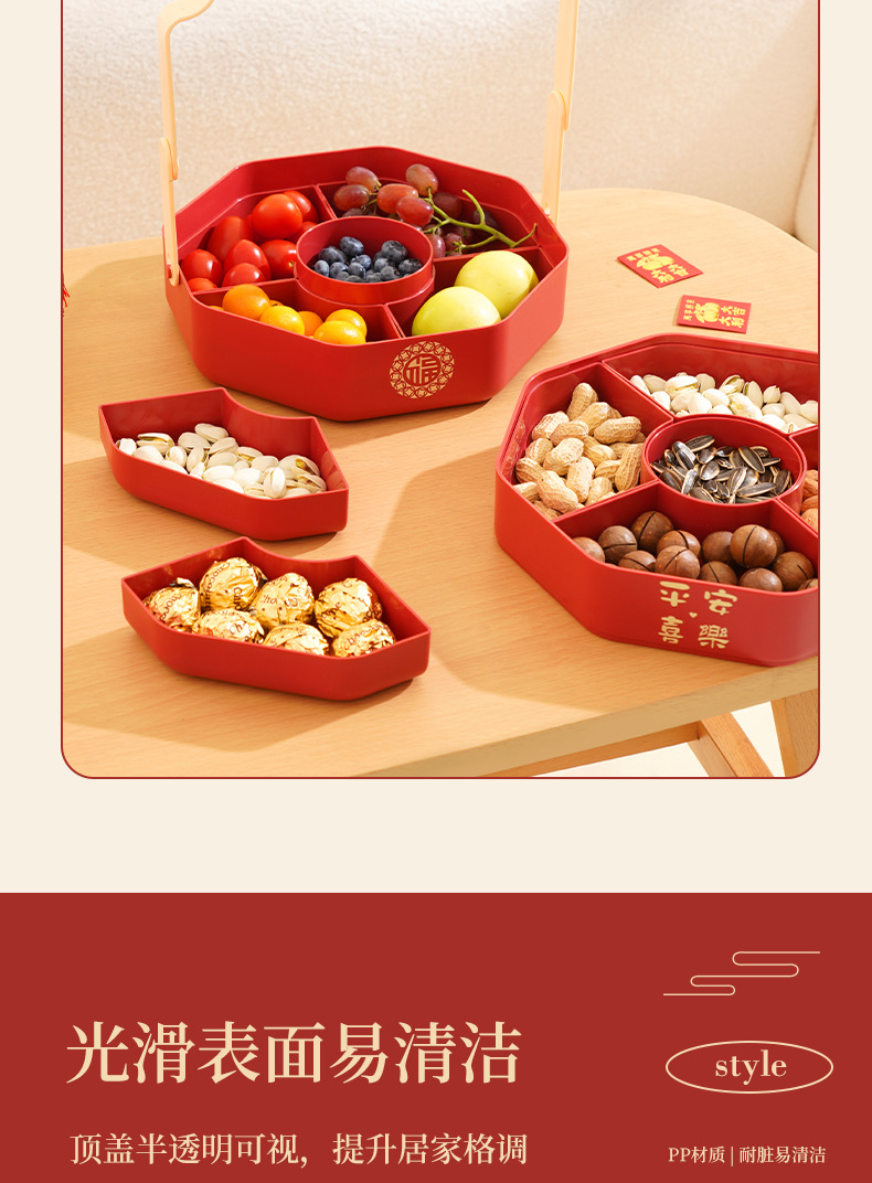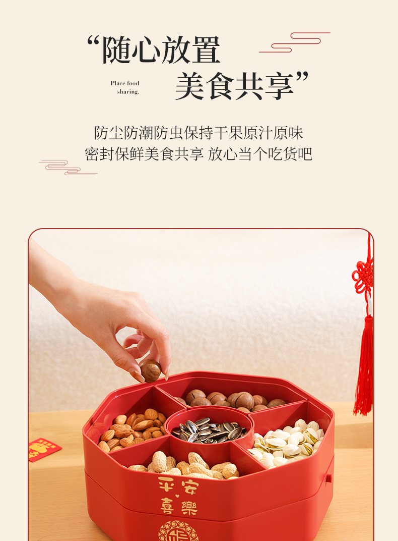 【喜庆佳品!招财猫零食收纳盒】新年糖果盘家用客厅茶几水果盘干果坚果盘乔迁之喜新款新中式,一盘多用,满足您多样化需求。ry