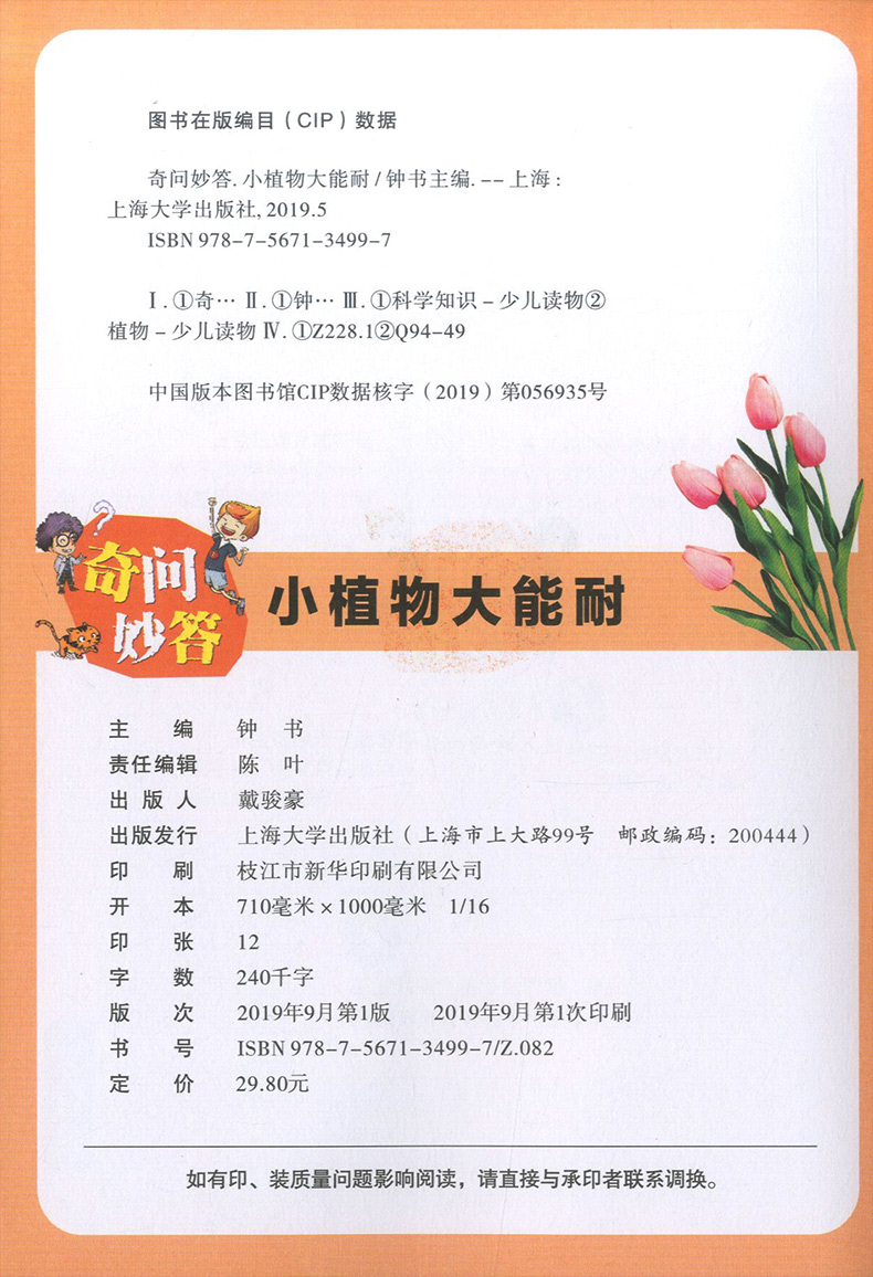 全新儿童百科奇问妙答 小植物大能耐 脑洞大开的问题 意想不到的答案 问答竞赛妙趣横生 儿童读物植物科学知识大全 上海大学出版社