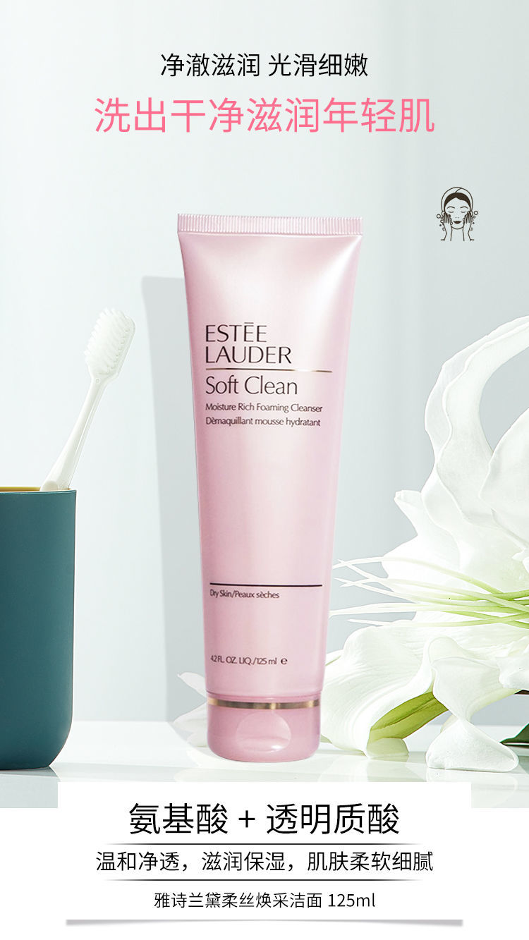 【预售 急单慎拍】雅诗兰黛洗面奶柔丝焕彩泡沫洁面 粉色氨基酸温和洁面乳保湿125ML