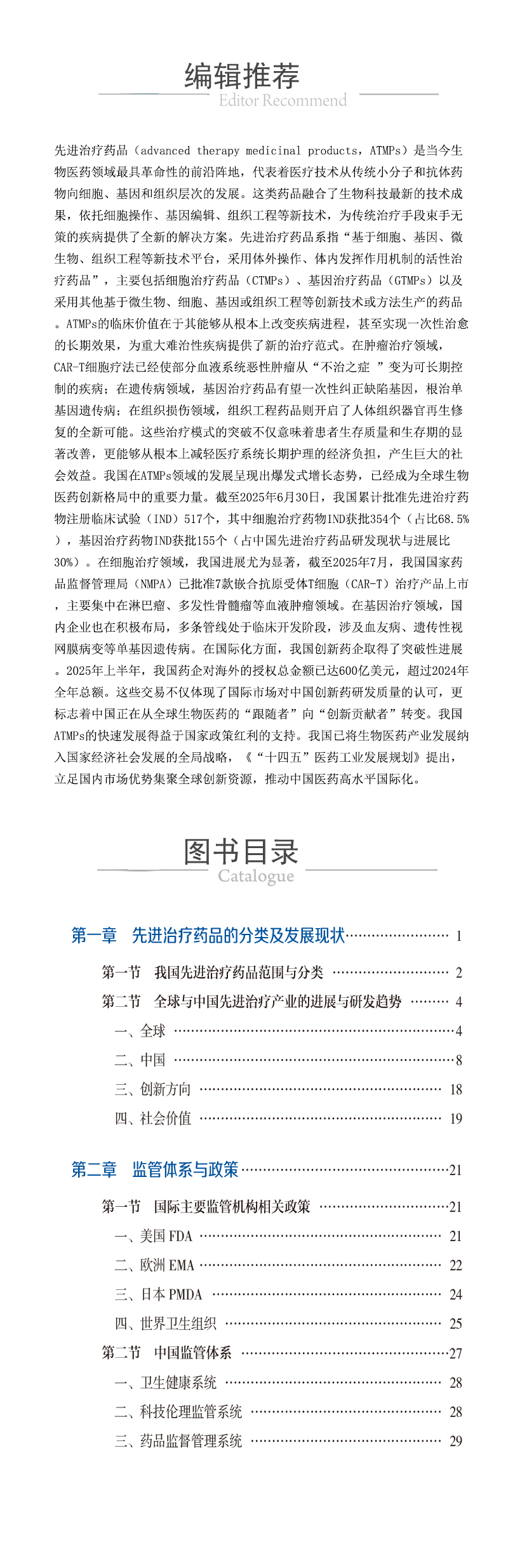 中国先进治疗药品研发现状与进展 王涛 主编 先进治疗药品的分类及发展现状 监管体系与政策 9787521455434中国医药科技出版社